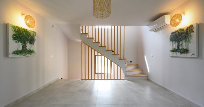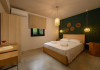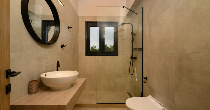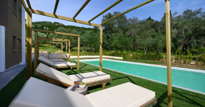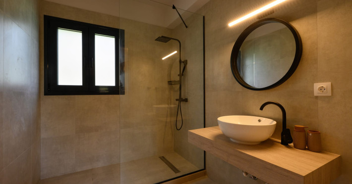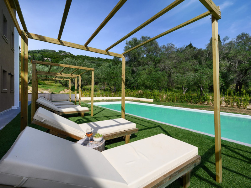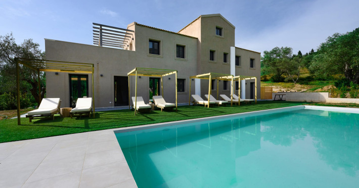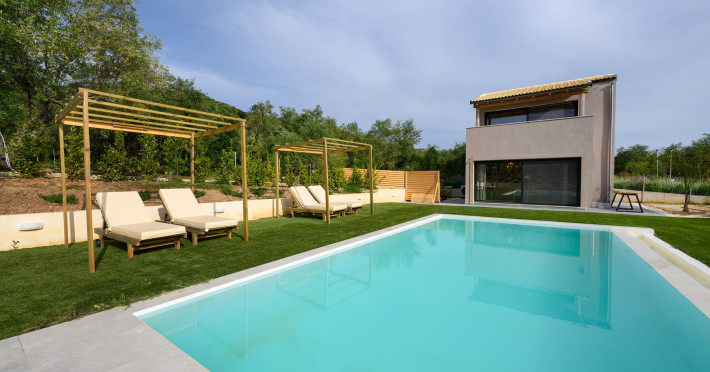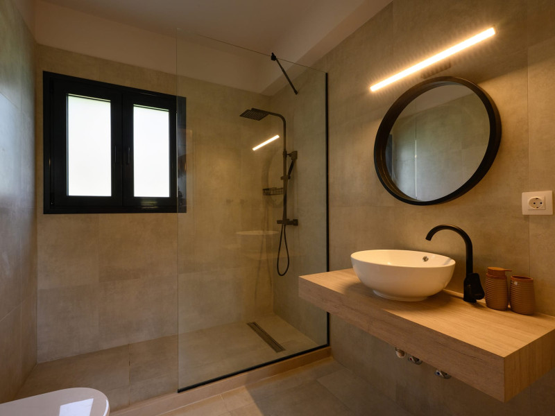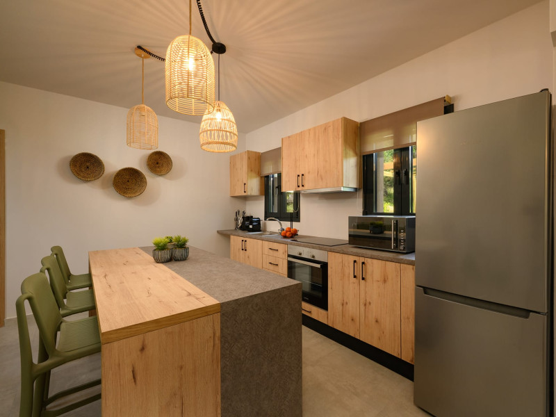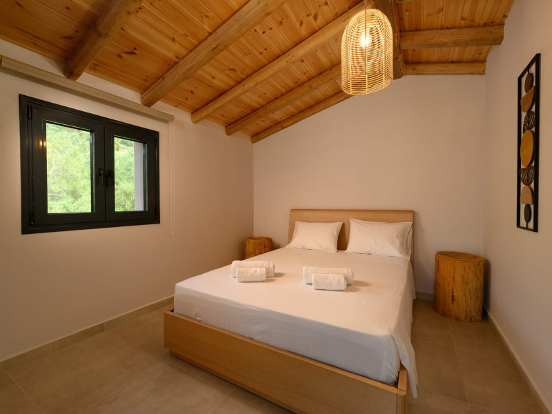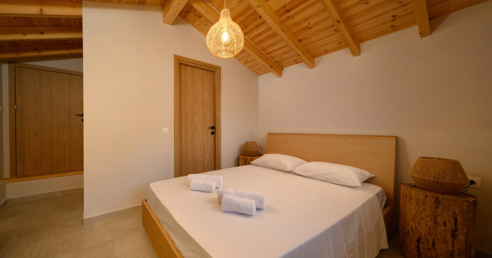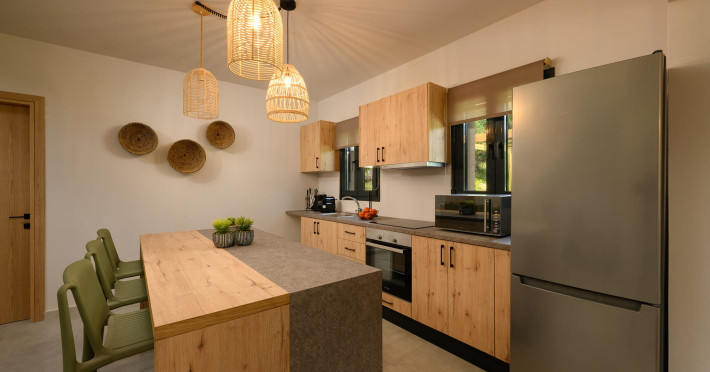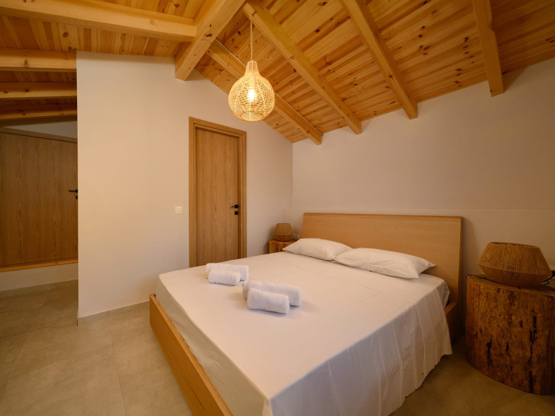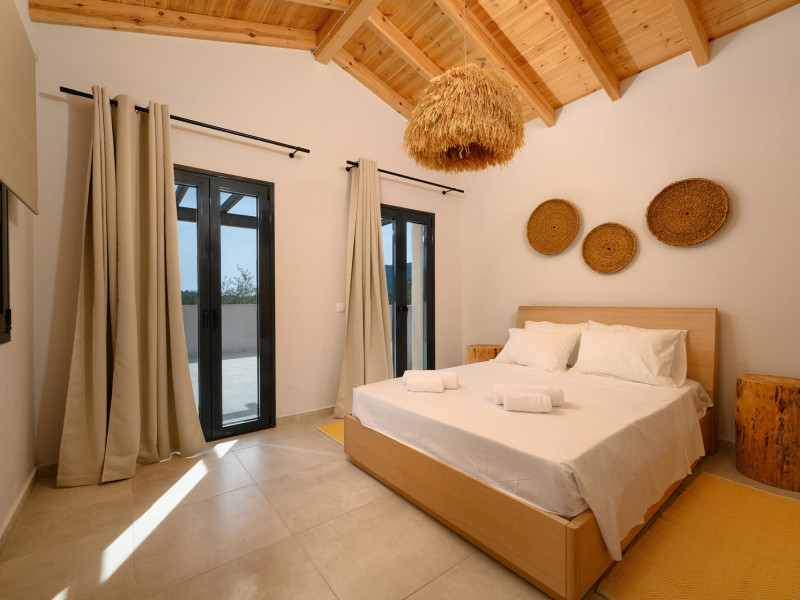 At AEOLINA, sustainability is not just a design choice — it is our responsibility as villa owners. By choosing solid wood furnishings crafted by local artisans, we reduce waste and ensure durability, while natural textures bring harmony with the olive-grove setting. Thoughtful lighting design enhances both comfort and energy efficiency, curated in collaboration with international artist Spiros Gelekas, whose vision blends beauty with mindful living. In every detail, we seek to balance elegance with respect for nature, so that each stay leaves a lighter footprint.