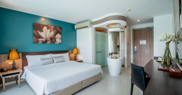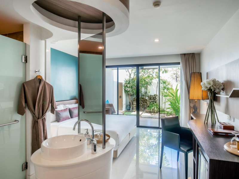 Each guestroom features a private furnished balcony, air conditioning, a flat-screen television with cable programming, and a refrigerator. Private bathrooms include showers with rainfall showerheads and hair dryers. Phuket International Airport (HKT) is 28.4 km (17.6 mi) away. Other amenities include a garden, terrace, hot tub, bar, shared kitchen, safety deposit boxes, concierge service, taxi service, airport transportation, and daily housekeeping. Tour/ticket assistance is available. The Pago Design Hotel is a hotel. Located in PHUKET, area.