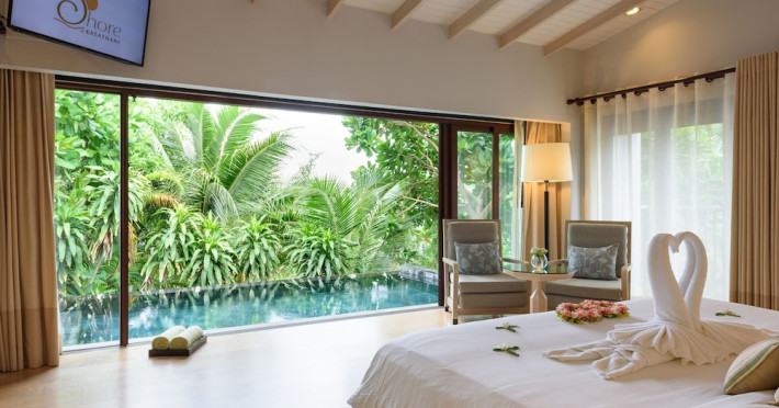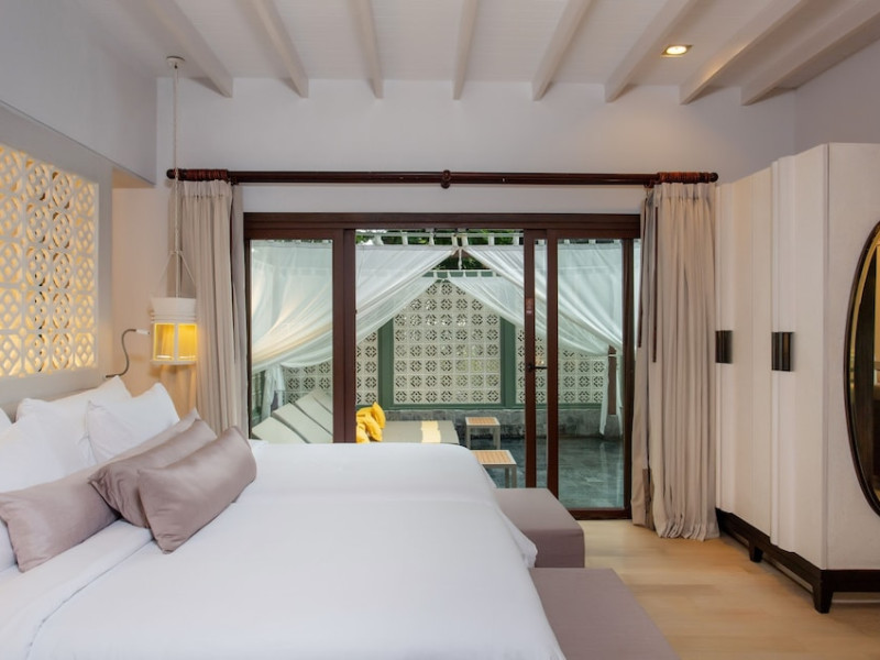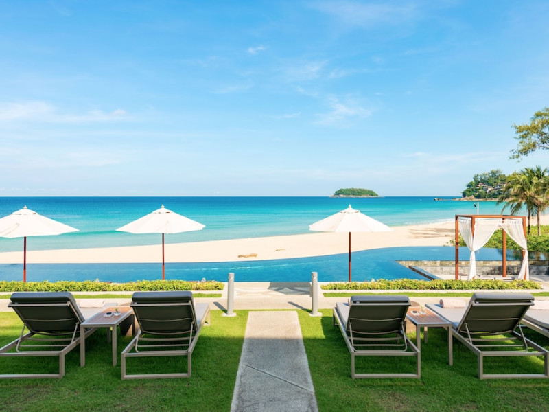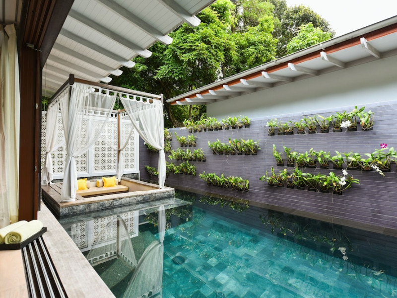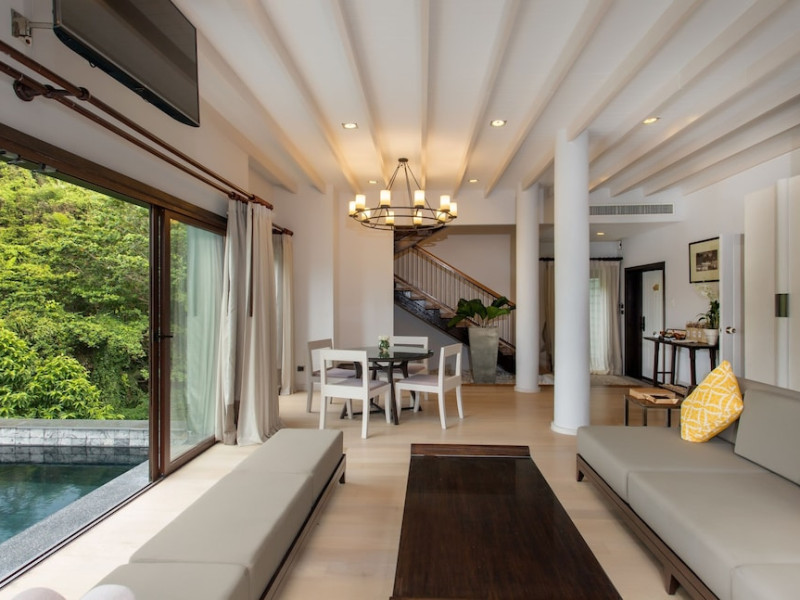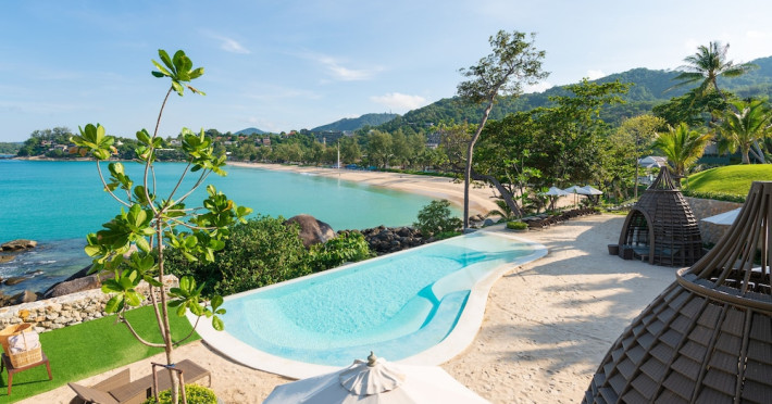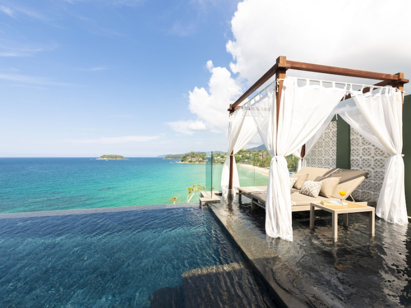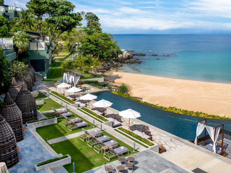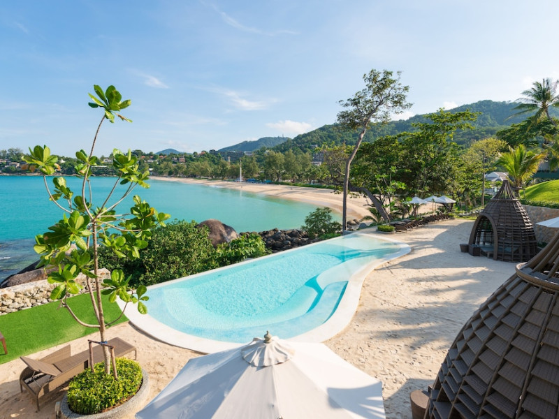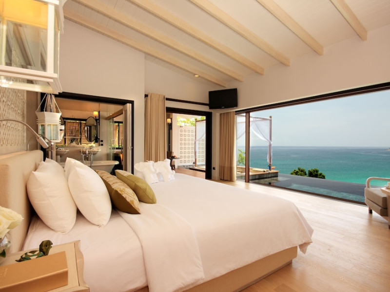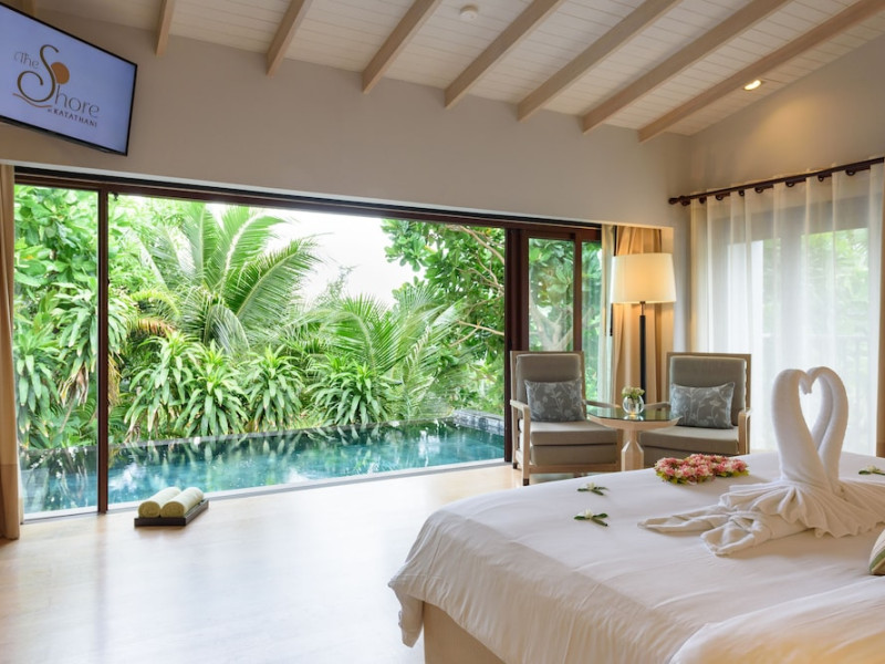 The Shore at Katathani is a luxurious, adult-only beachfront resort located on Kata Noi Beach, offering villas with private pools and sea views. The air-conditioned villas feature stylish design and open to a private sundeck. Complimentary WiFi is available. Guests can enjoy the on-site spa, fitness center, and a main infinity pool. Dining options include The Harbor restaurant, a bar/lounge, and a poolside bar. A complimentary breakfast is served daily. The resort offers concierge service, express check-in/check-out, and laundry services. Activities include yoga and aqua aerobics. An airport shuttle is available for an additional fee. The resort is a 50-minute drive from Phuket International Airport. The Shore At Katathani - Adults Only is a Beach Resort, Honeymoon, Leisure, Resort, Tourist, Villa Resort hotel. The nightlife/restaurants are easily accessible by taxi or bus from the hotel.