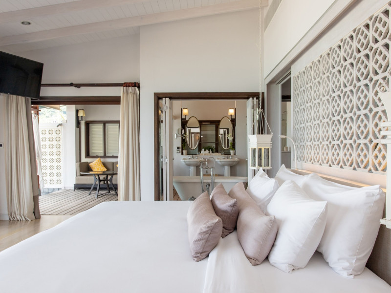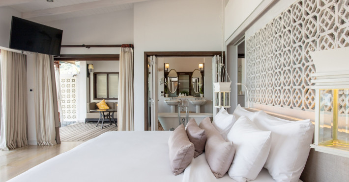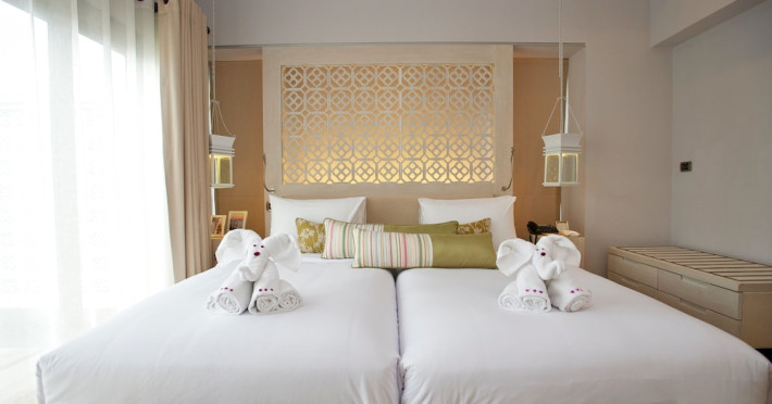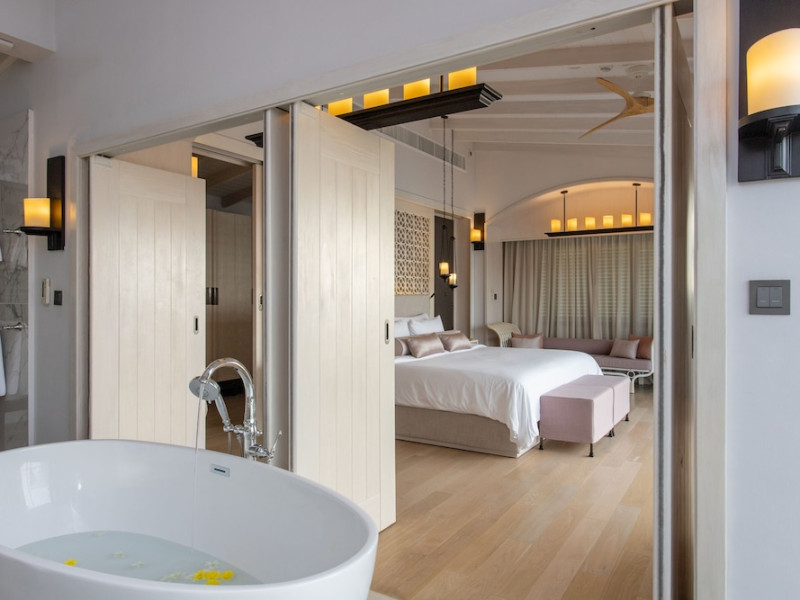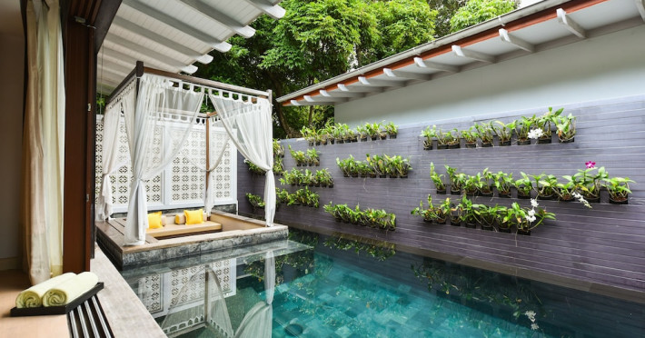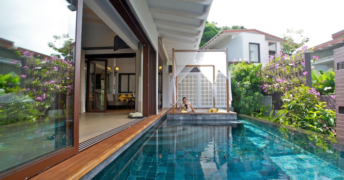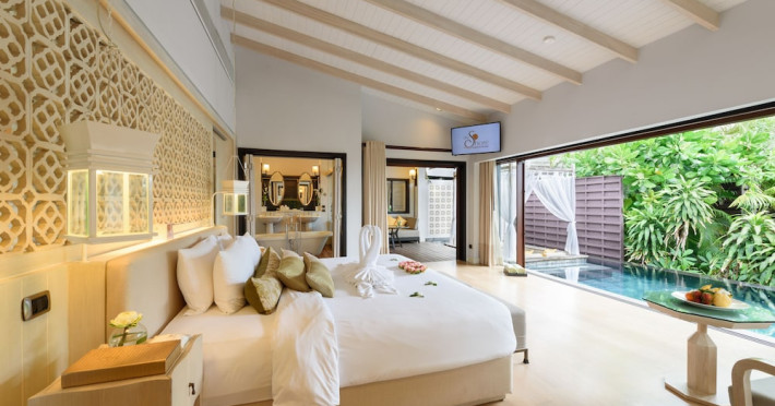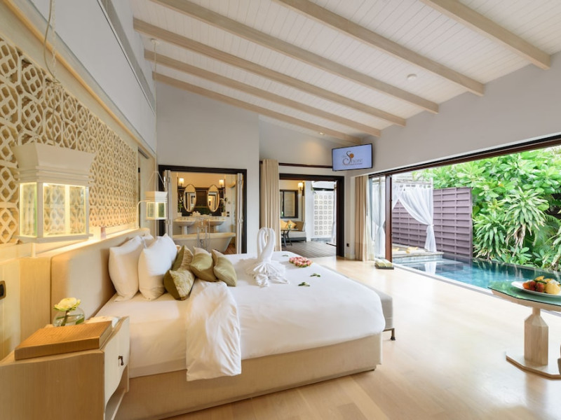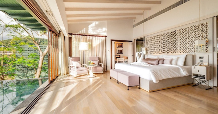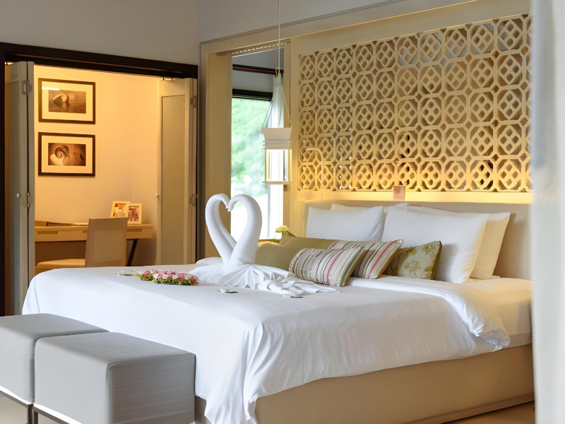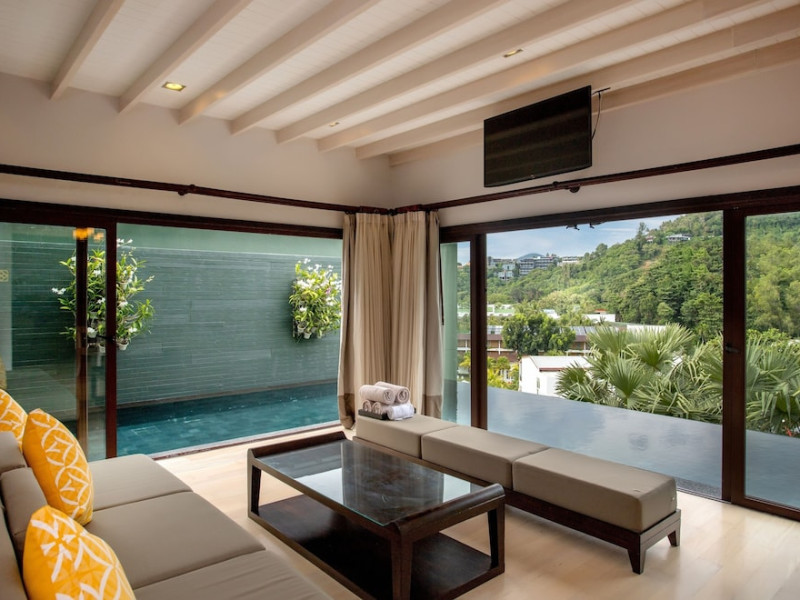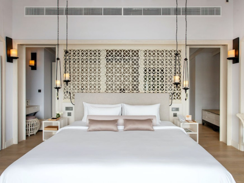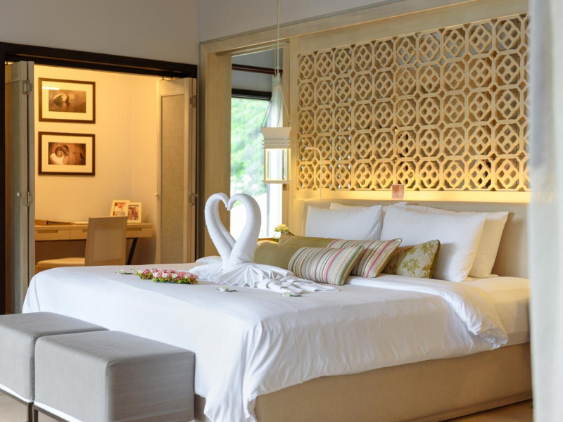 The Shore at Katathani is a luxurious, adult-only beachfront resort located on Kata Noi Beach, offering villas with private pools and sea views. The air-conditioned villas feature stylish design and open to a private sundeck. Complimentary WiFi is available. Guests can enjoy the on-site spa, fitness center, and a main infinity pool. Dining options include The Harbor restaurant, a bar/lounge, and a poolside bar. A complimentary breakfast is served daily. The resort offers concierge service, express check-in/check-out, and laundry services. Activities include yoga and aqua aerobics. An airport shuttle is available for an additional fee. The resort is a 50-minute drive from Phuket International Airport. The Shore At Katathani - Adults Only is a Beach Resort, Honeymoon, Leisure, Resort, Tourist, Villa Resort hotel. The nightlife/restaurants are easily accessible by taxi or bus from the hotel.