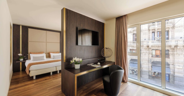Take in the views from a rooftop terrace and make use of amenities such as complimentary wireless internet access and concierge services.lt;stronggt;Property Locationlt;/stronggt;lt;pgt;A stay at The Square Milano Duomo - Preferred Hotels amp; Resorts places you in the heart of Milan, a 6-minute drive from Santa Maria delle Grazie. This hotel is 0.2 mi (0.4 km) from Piazza del Duomo and 0.2 mi (0.4 km) from Cathedral of Milan.lt;brgt; Distances are displayed to the nearest 0.1 mile and kilometer. lt;br /gt; lt;pgt;Piazza Missori - 0.1 km / 0.1 mi lt;br /gt; Torre Velasca - 0.2 km / 0.1 mi lt;br /gt; Via Torino - 0.4 km / 0.2 mi lt;br /gt; Piazza del Duomo - 0.4 km / 0.2 mi lt;br /gt; Cathedral of Milan - 0.4 km / 0.2 mi lt;br /gt; Museo del Novecento - 0.4 km / 0.2 mi lt;br /gt; Biblioteca Ambrosiana - 0.5 km / 0.3 mi lt;br /gt; Galleria Vittorio Emanuele II - 0.6 km / 0.4 mi lt;br /gt; Piazza Cordusio - 0.7 km / 0.4 mi lt;br /gt; La Rinascente - 0.7 km / 0.4 mi lt;br /gt; Teatro alla Scala - 0.8 km / 0.5 mi lt;br /gt; Piazza della Scala - 0.8 km / 0.5 mi lt;br /gt; University of Milan - 0.8 km / 0.5 mi lt;br /gt; Milan City Hall - 0.9 km / 0.6 mi lt;br /gt; Statue of Leonardo Da Vinci - 0.9 km / 0.6 mi lt;br /gt; lt;/pgt;lt;pgt;The nearest airports are:lt;br /gt;Linate Airport (LIN) - 7.2 km / 4.5 milt;br /gt; Milan Malpensa Airport (MXP) - 65.3 km / 40.6 milt;br /gt; Bergamo Orio al Serio Airport (BGY) - 53.7 km / 33.4 milt;br /gt; lt;/pgt;lt;pgt;The preferred airport for The Square Milano Duomo - Preferred Hotels amp; Resorts is Linate Airport (LIN). lt;/pgt;lt;brgt; lt;stronggt;Roomslt;/stronggt;lt;pgt;Make yourself at home in one of the 126 air-conditioned rooms featuring minibars and espresso makers. Your bed comes with down comforters and premium bedding. Complimentary wireless internet access keeps you connected, and digital programming is available for your entertainment. Private bathrooms with showers feature rainfall showerheads and slippers.lt;pgt; lt;stronggt;Dininglt;/stronggt;lt;pgt;Satisfy your appetite for dinner at Arya, a restaurant which specializes in international cuisine, or stay in and take advantage of the 24-hour room service. Wrap up your day with a drink at the bar/lounge. Buffet breakfasts are served on weekdays from 7:00 AM to 10:30 AM for a fee.lt;pgt; lt;stronggt;Business, Other Amenitieslt;/stronggt; lt;pgt;Featured amenities include complimentary wired internet access, a business center, and complimentary newspapers in the lobby. This hotel has 2 meeting rooms available for events. A roundtrip airport shuttle is provided for a surcharge (available 24 hours).lt;pgt;