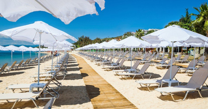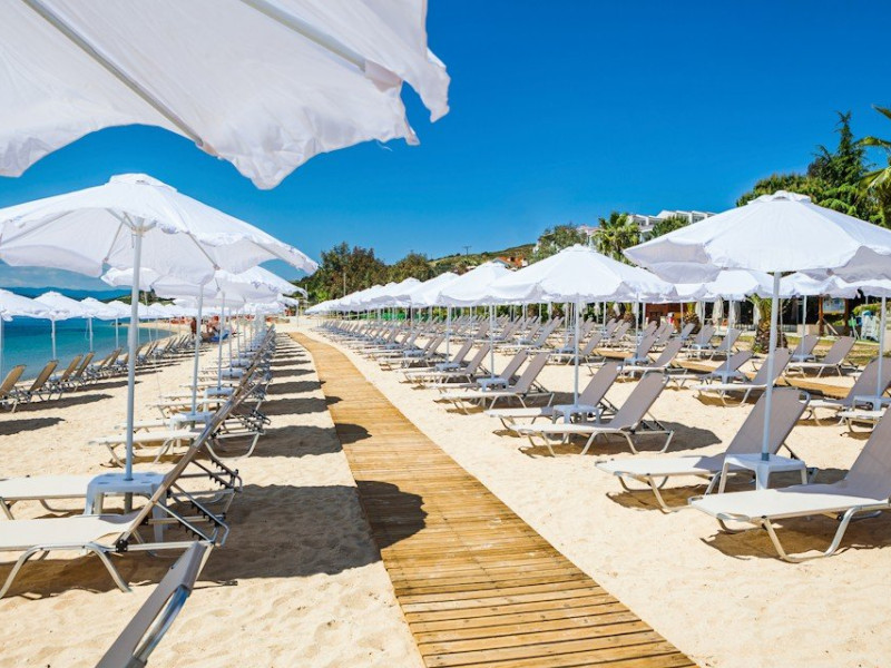 Facilitati hotel: Restaurant, bar la piscina, bar pe plaja, 3 piscine exterioare, piscina pentru copii, plaja privata premiata cu blue flag (accesul se face printr-un pasaj), sezlonguri si umbrelute, sporturi nautice, teren de tenis, mini fotbal, basket, volei, parcare, mini market, sala de jocuri.