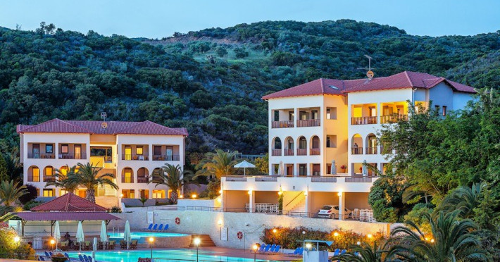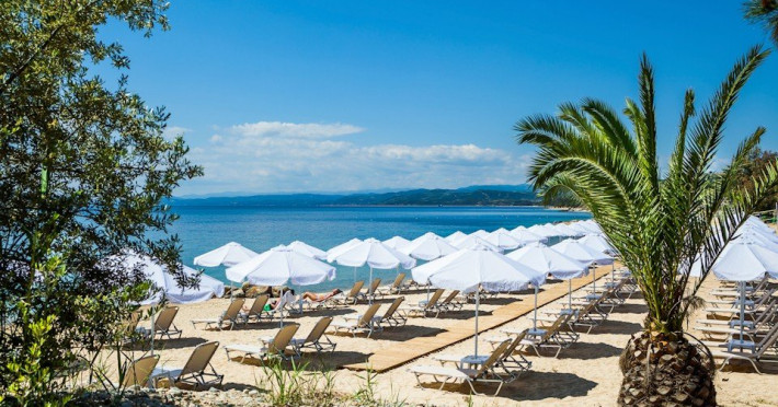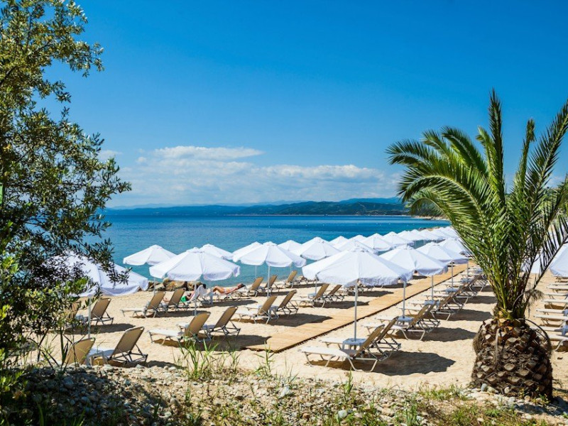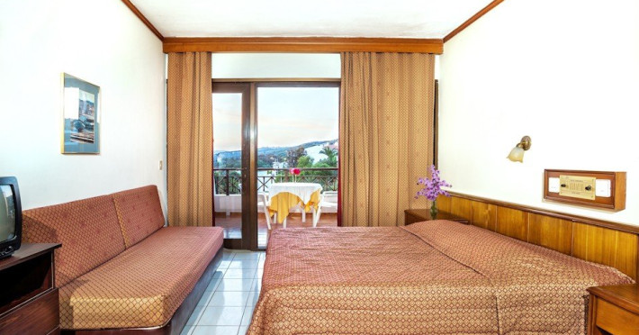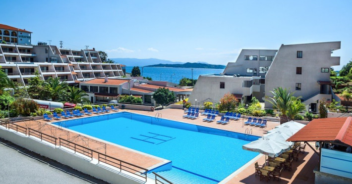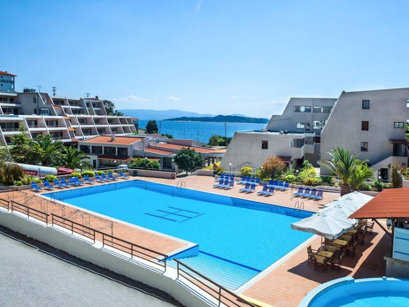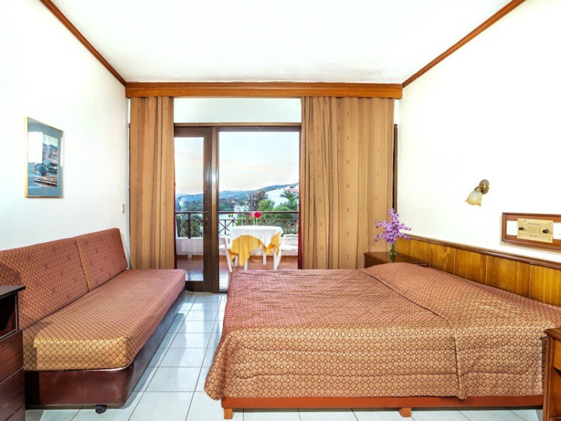 Dotari camere: Camerele sunt spatioase si functionale, cu vedere la mare si la insula Amouliani, la piscine sau la muntii din jur; dotarile sunt urmatoarele: aer conditionat (cu plata), TV, telefon, frigider, seif (cu plata).