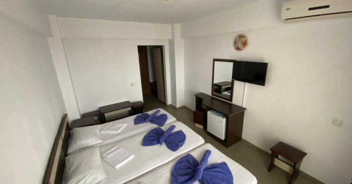 Tiberius Residence *** Costinesti este amplasat in zona de nord a localitatii Costinesti, la circa 80 m de plaja, in cartierul rezidential si la doar 5 minute de mers pe faleza, pana in centrul statiunii. Hotelul este inconjurat numai de case de vacanta si moteluri, zona fiind departe de zgomotul statiunii, iar turistii pot beneficia aici de linistea si confortul de acasa. Camerele din Tiberius Residence sunt extrem de spatioase si dispun de dotari care sa ii faca pe clienti sa petreaca aici clipe de neuitat, beneficiind de conditii modernizate la standarde inalte. De asemenea, toate camerele sunt dotate cu bai proprii cu dus, aer conditionat, TV/cablu, minibar.