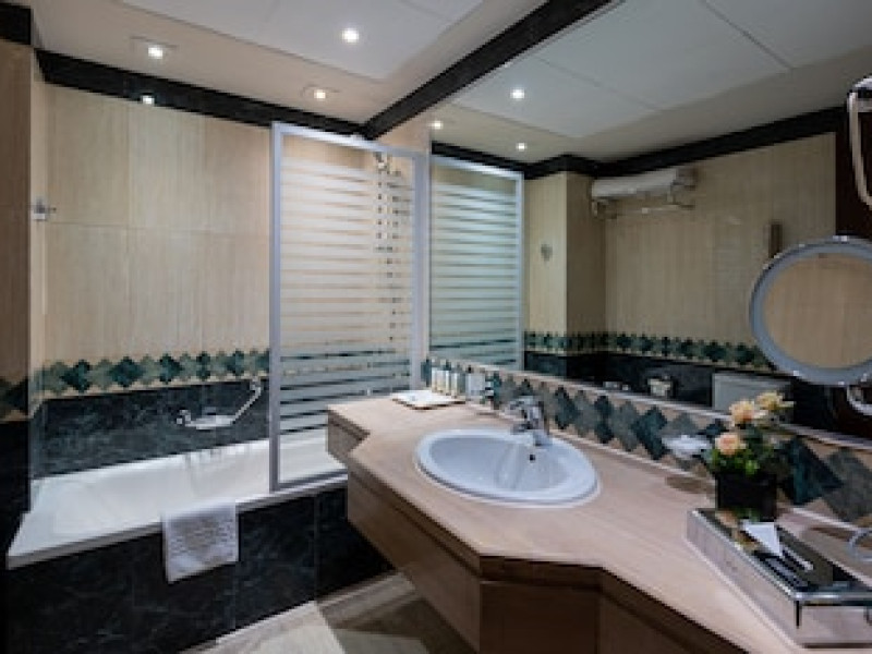The Triumph Plaza Hotel, a sophisticated 4-star establishment, offers an ideal location in the desirable Heliopolis area of Cairo. Just minutes from Cairo's main thoroughfares, including Salah Salem Avenue, and conveniently close to the international airport and conference center, the hotel provides easy access to the city's key attractions and vibrant shopping districts. Its 146 elegant rooms and suites feature warm, spacious designs, furnished for comfort and relaxation. Enjoy exceptional views from your private balcony, and take advantage of 24-hour room service and amenities such as satellite television, high-speed internet, and a digital safe.