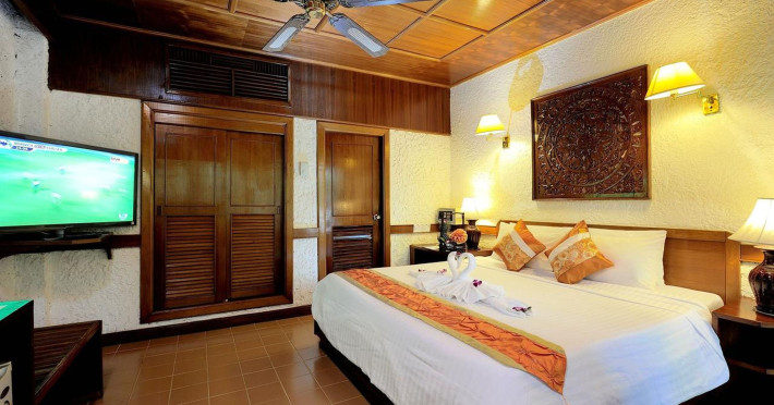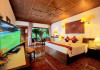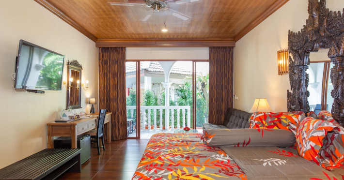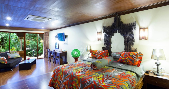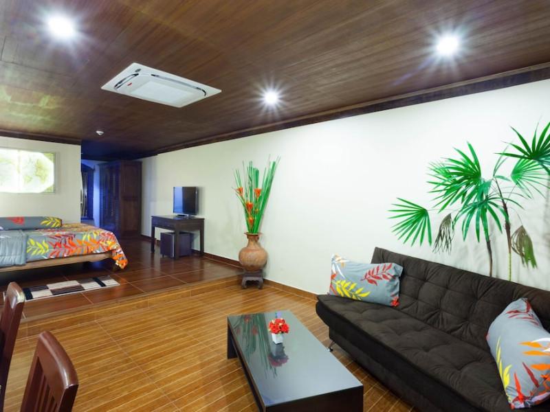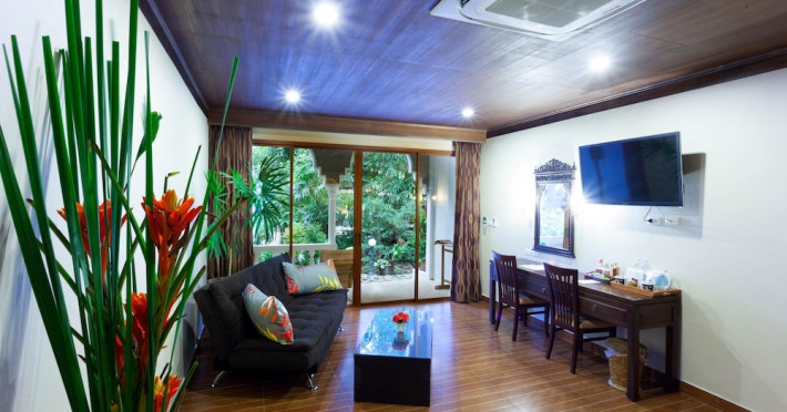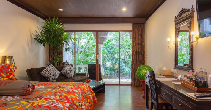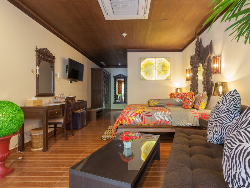 Located on Patong Beach, Tropica Bungalow Hotel offers resort-style accommodation within walking distance of Bangla Road, restaurants, and pubs. The hotel features an outdoor pool, a terrace, and a garden. Guests can enjoy complimentary wireless internet access throughout the property. The hotel provides a restaurant with a bar/lounge serving local and international dishes, as well as a poolside bar. A buffet breakfast is available daily for a surcharge. The hotel offers services such as a concierge, luggage storage, and tour/ticket assistance. Airport shuttle service is available for a surcharge, and free valet parking is provided. The air-conditioned rooms feature flat-screen televisions with cable programming, refrigerators, and private bathrooms with showers, hair dryers, and slippers. Select rooms also offer a balcony or terrace. Room service and daily housekeeping are available. The hotel is a completely smoke-free zone, with designated smoking areas. The Tropica Bungalow Hotel is a hotel.