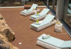 sezlonguri si umbrele de soare la piscina gratuit, prosoape la un depozit