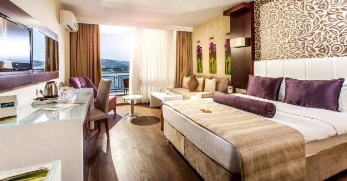 Acest complex de la malul mării se află la cativa pasi de o plajă de nisip cu steag albastru, avand vedere la golful Tusan. Proprietatea are 2 piscine in aer liber si un parc acvatic pentru copii si oferă camere cu aer conditionat si balcon cu vedere la Marea Egee. In intreaga proprietate este disponibil acces gratuit la internet WiFi.