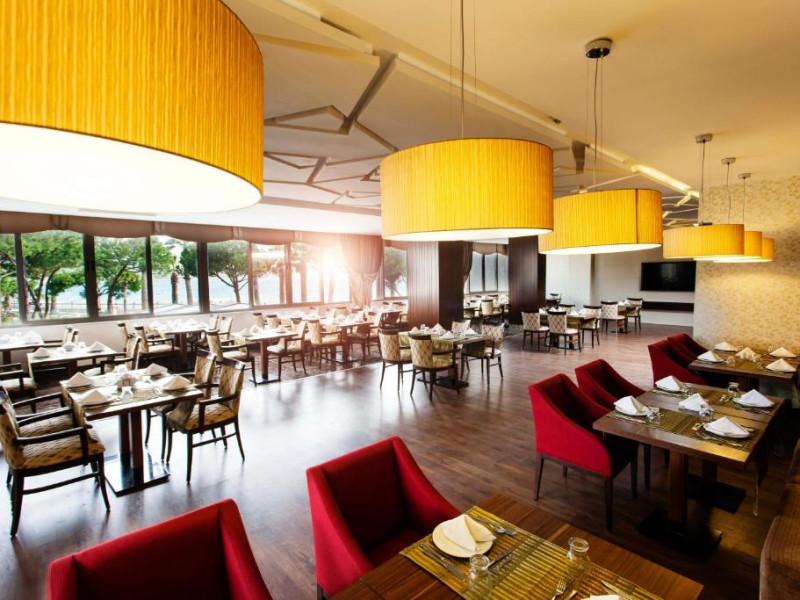 Acest complex all-inclusive oferă toate mesele in stil bufet. De asemenea, oferă o varietate de optiuni culinare internationale. Restaurantul Lykia serveste fructe de mare si kebab turcesc. Restaurantul in aer liber Zeugma are vedere la mare si serveste specialităti regionale preparate din ingrediente locale proaspete.
