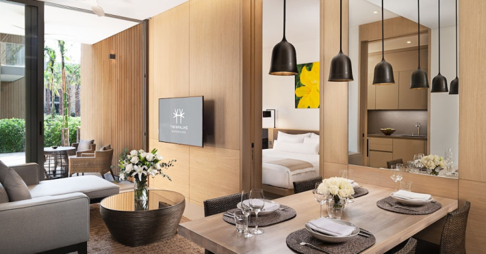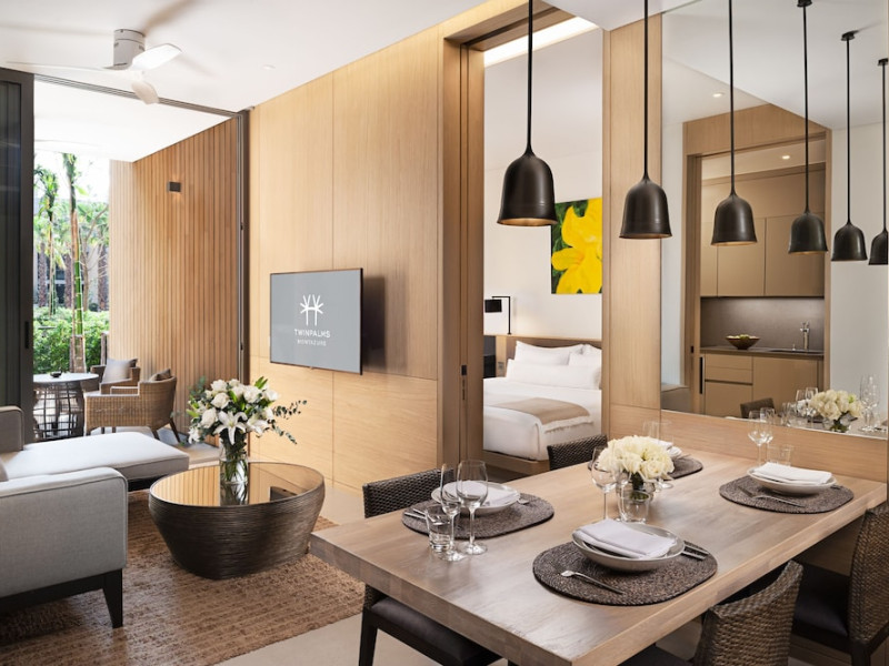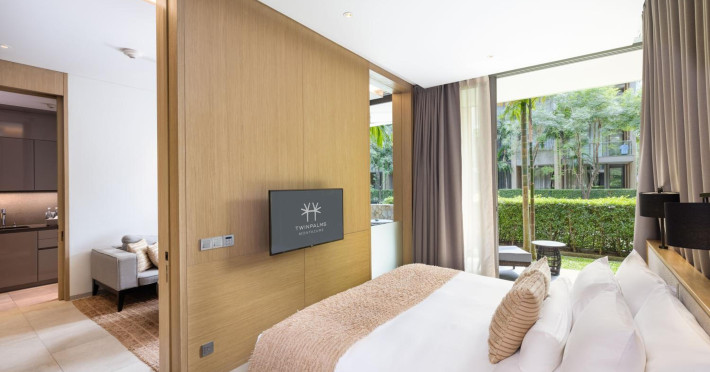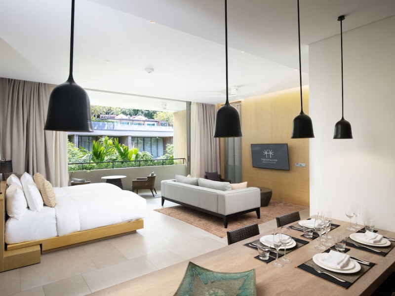 Located in Kamala Beach, Twinpalms MontAzure Phuket offers accommodation with an outdoor swimming pool, fitness centre, garden, bar, and a restaurant. It features free WiFi, a 24-hour front desk, room service, and family rooms. The air-conditioned rooms include a desk, kettle, fridge, minibar, safety deposit box, flat-screen TV, and a private bathroom with a shower and complimentary toiletries. Some rooms offer sea views and a balcony. An American or Asian breakfast is available. Guests can make use of the business centre. Kamala Beach is 100 metres from the property. Phuket International Airport is 24 km away. Free self-parking is available. The Twinpalms MontAzure Phuket Resort is a hotel.