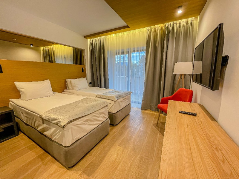 Localizare: Aceast hotel, construit in stil alpin tirolez, se afl la 700 de metri de centrul oraCaului Predeal. PAertia de schi Clbucet se gseCate la 1 km. Toate camerele au balcon, cu vedere la MunCaii Bucegi Cai Cioplea. Gara Predeal se afl la 1,2 km, iar oraLaul BraLaov este la 24 km de pensiune. Aan plus, oaspeCaii pot vizita Castelul Bran, aflat la 33 km de Pensiunea UrsuleCaul. Dotari si FacilitCai Hotelul dispune de 34 de camere(7 matrimoniale, 18 twin, 3 junior suite, 2 suite, 1 honeymoon, 3 single).