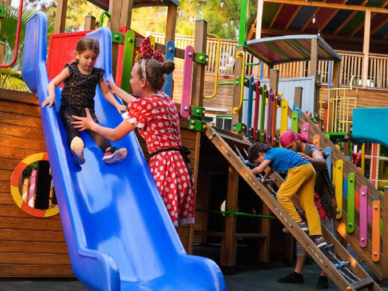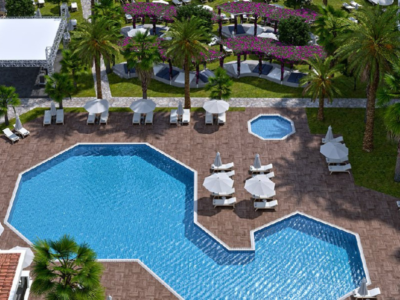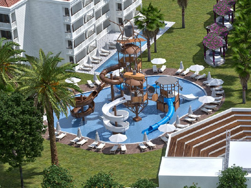 Facilitati hotel: Hotelul pune la dispozitia clientilor restaurant, beach bar, patiserie, snack bar, gozleme, night snack, lobby bar, bar la piscina, bistro, mini golf, yoga, volei, lectii de zumba, pilates, sala de fitness, spa si wellness, Kids club, animatie si baby sitting (contra cost).