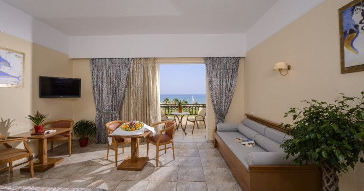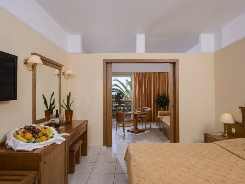 Dotari camere: Hotel Vantaris Palace are camerele dotate cu: aer conditionat, TV, telefon, mini frigider, seif (contra cost - 2 euro/zi), baie cu cada, uscator de par, balcon/terasa, acces internet WiFi (pret informativ 1 EUR/zi pentru 2 persoane), patut bebelusi (la cerere, contra cost: 5 euro/zi).