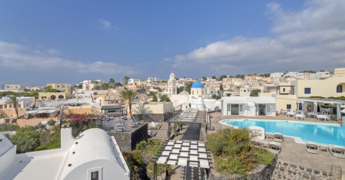 Localizare HOTEL VEDEMA RESORT: Hotelul este situat in statiunea medievala Megalohori, la 7 km departare de orasul Fira si la o distanta de 15 km de Aeroportul International din Santorini.