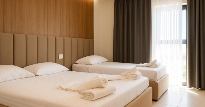 Hotelul Velmar din Golem ofera o zona de plaja privata si acces direct la plaja. Va puteti relaxa in gradina sau in camerele cu vedere la mare de pe terasa sau balcon.