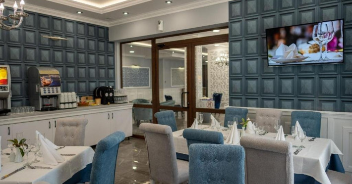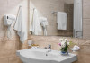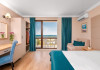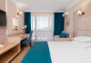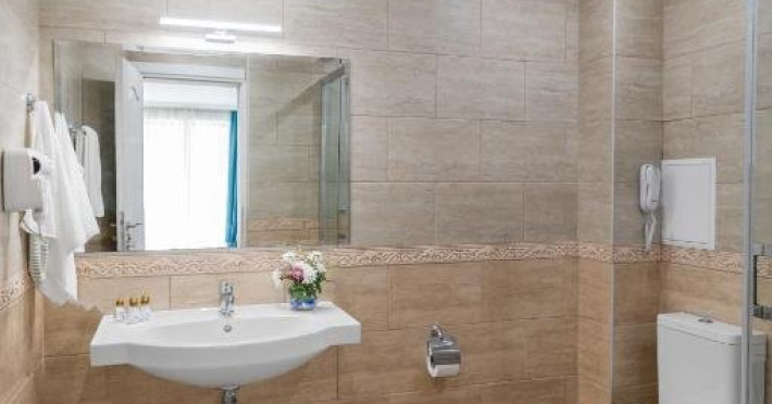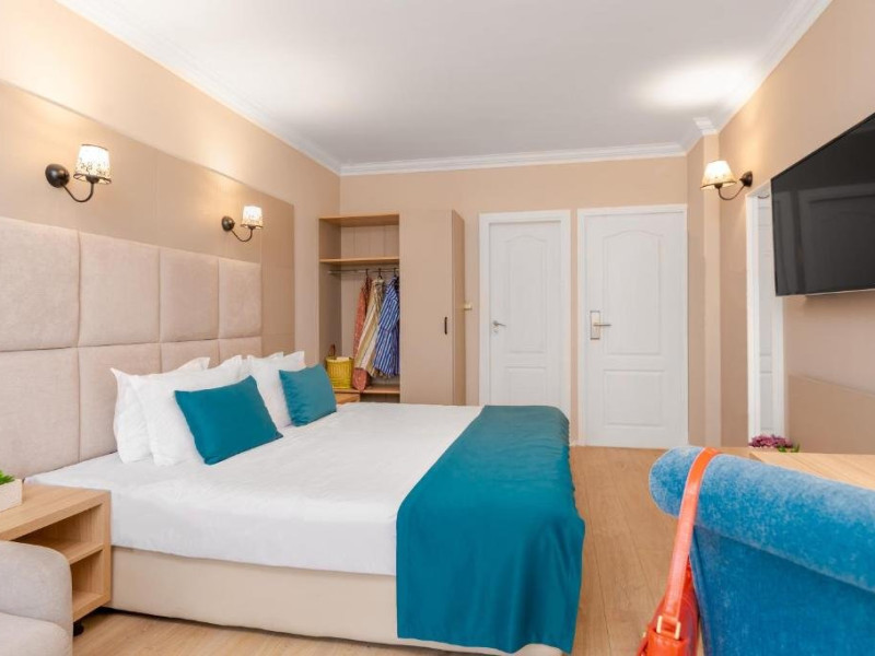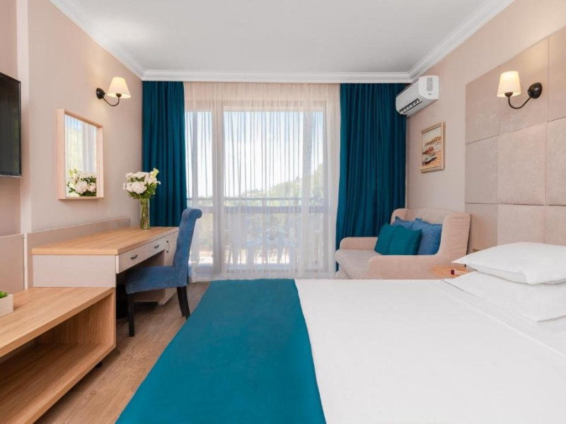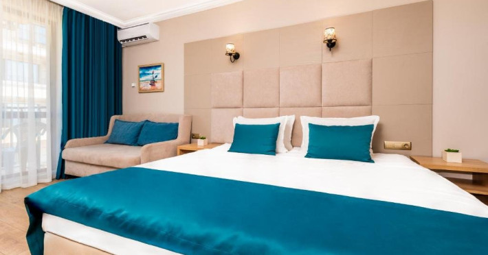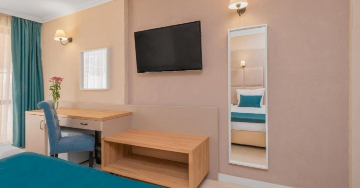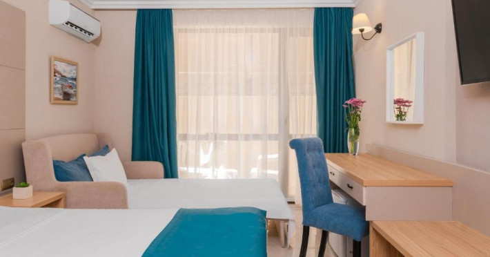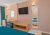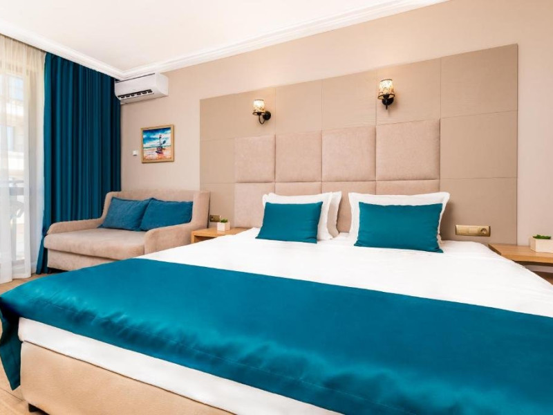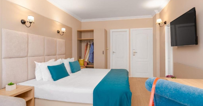 Toate camerele sunt dotate cu: aer conditionat individual, TV LCD satelit, conexiune internet Wi-Fi, baie cu dus, uscator de par, cosmetice de baie, telefon, balcon. DBL - suprafata aprox. 23 metri patrati, 2 paturi sau pat matrimonial si canapea dubla extensibila. (max. 2+2/3)