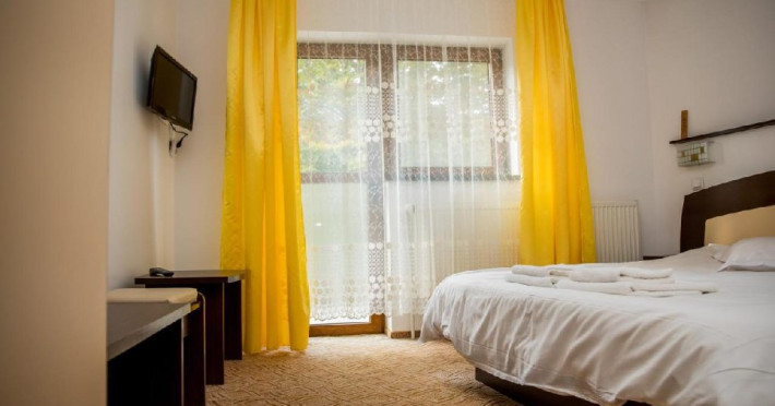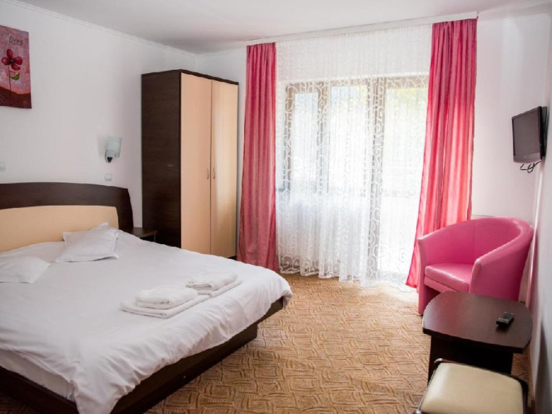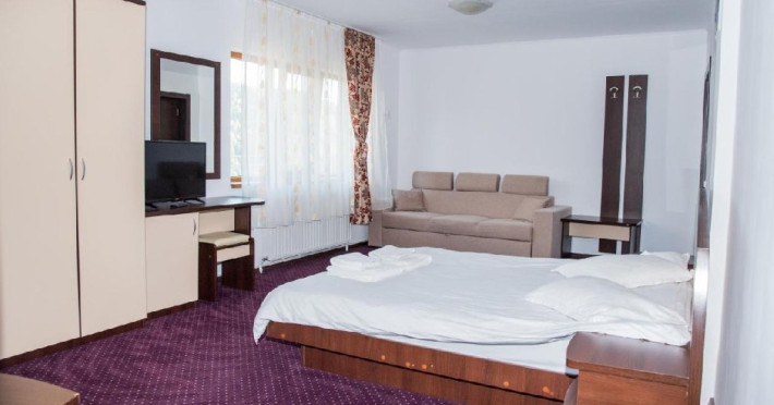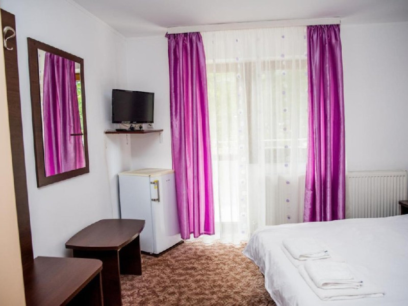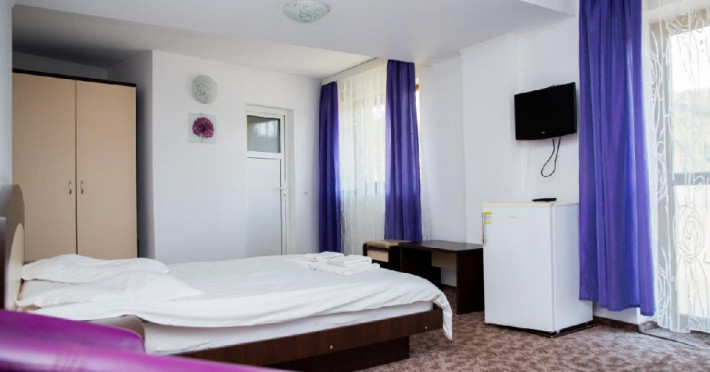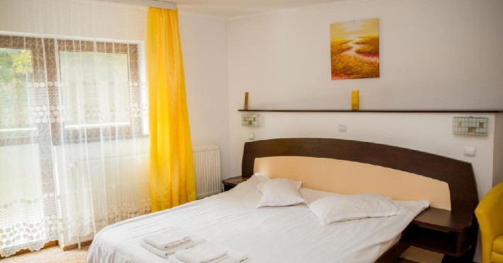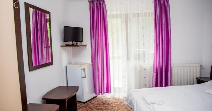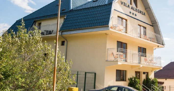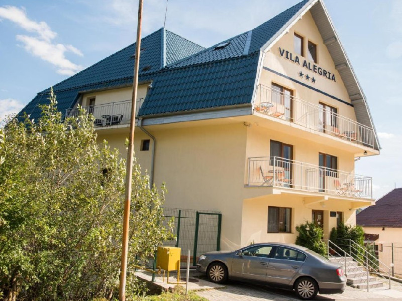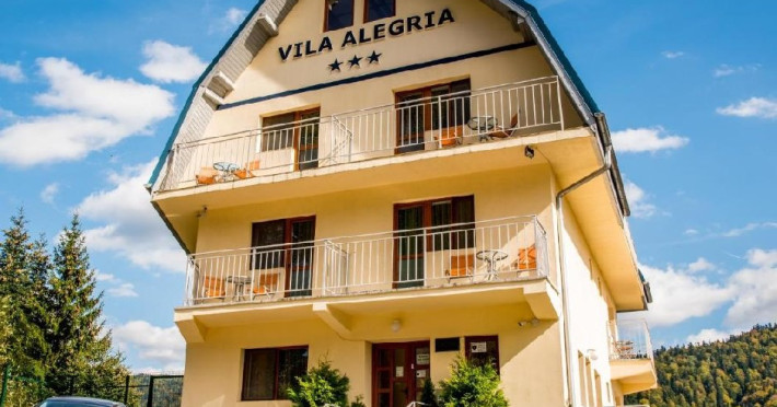 INFORMATII GENERALE Vila Alegria se afla in Busteni, in apropiere de centrul statiunii. DESCRIERE UNITATE DE CAZARE Pensiune cu traditioe deschisa in 2020, locatia ofera o panorama superba asupra statiunii si a muntilor fie din camera fie de pe balcon. FACILITATI UNITATE Vila este o unitate de cazare data in folosinta in 2010, turistii avand la dispozitie parcare, internet WI-Fi. DESCRIERE CAMERE Camerele duble dispun de un pat matrimonial. Camerele family dispun de un pat matrimonial si o canapea extensibila.Toate camerele dispun de baie proprie, TV, frigider, uscator de par, internet Wi-Fi. LOCALIZARE Vila Alegria se afla in Busteni, in apropiere de centrul statiunii. ATRACTII TURISTICE Muzeul Memorial Cezar Petrescu, Crucea de pe Caraiman, Castelul Cantacuzino, partia Kalinderu (1500 metri, dificultate crescuta), Cascada Urlatoarea, Pestera Ialomitei, varful Babele, Sfinxul din Bucegi, Biserica Domneasca - Nasterea Maicii Domnului, Manastirea Caraiman - Inaltarea Sfintei Cruci, Manastirea Ialomitei. POLITICI Nu sunt permise animalele de companie. SERVICII DE MASA Nu se asigura servicii de masa. FACILITATI COPII Copiii mai mari de 4 ani se pot caza in camera family.