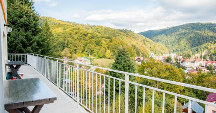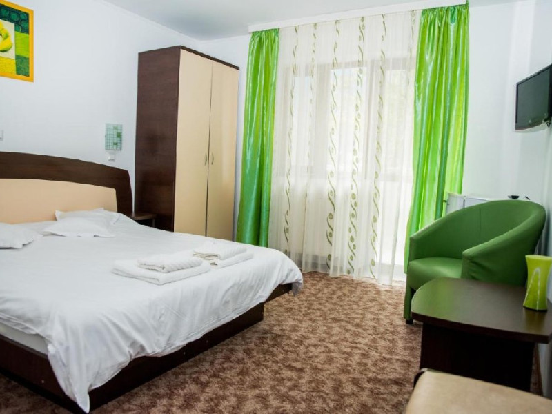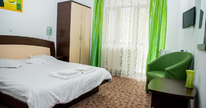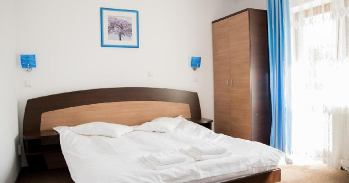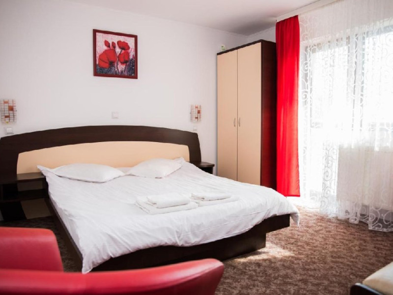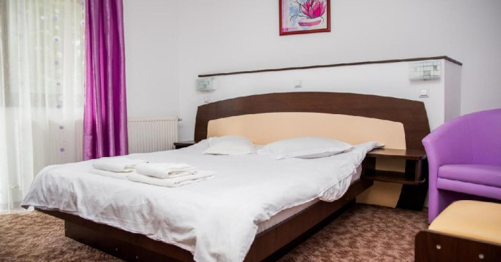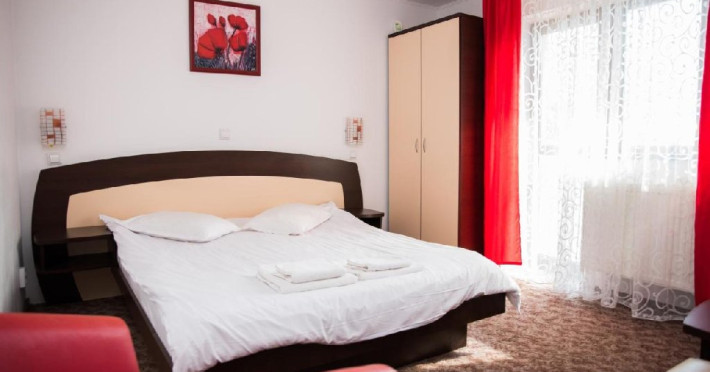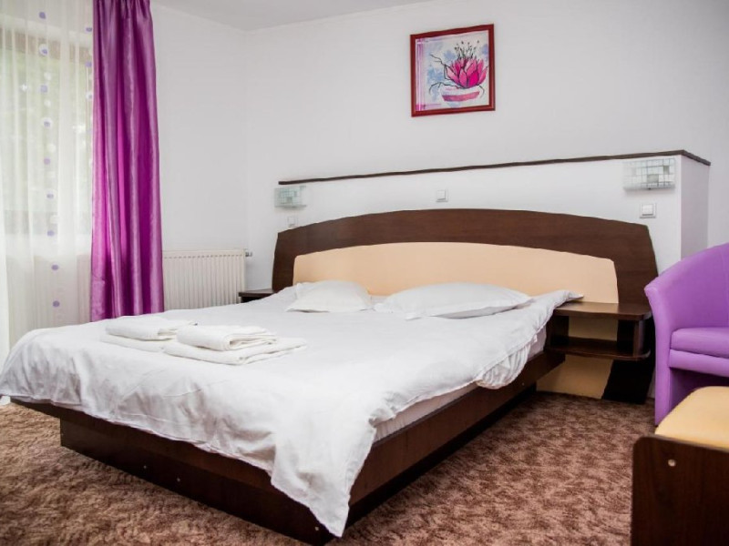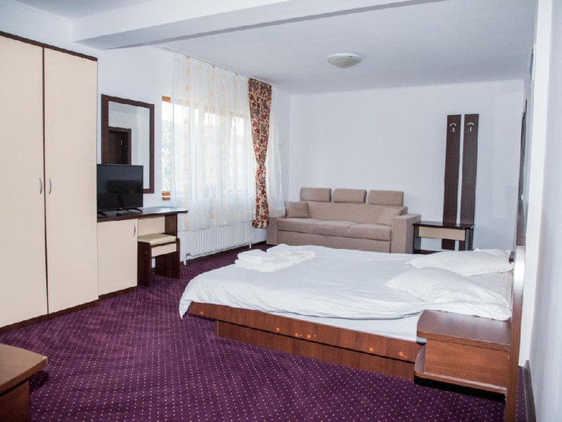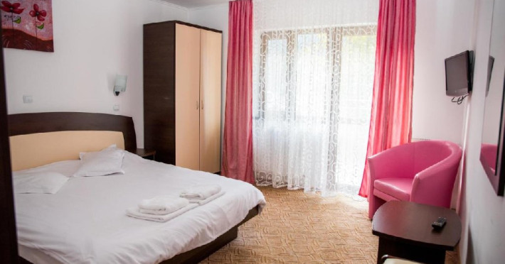 INFORMATII GENERALE Vila Alegria se afla in Busteni, in apropiere de centrul statiunii. DESCRIERE UNITATE DE CAZARE Pensiune cu traditioe deschisa in 2020, locatia ofera o panorama superba asupra statiunii si a muntilor fie din camera fie de pe balcon. FACILITATI UNITATE Vila este o unitate de cazare data in folosinta in 2010, turistii avand la dispozitie parcare, internet WI-Fi. DESCRIERE CAMERE Camerele duble dispun de un pat matrimonial. Camerele family dispun de un pat matrimonial si o canapea extensibila.Toate camerele dispun de baie proprie, TV, frigider, uscator de par, internet Wi-Fi. LOCALIZARE Vila Alegria se afla in Busteni, in apropiere de centrul statiunii. ATRACTII TURISTICE Muzeul Memorial Cezar Petrescu, Crucea de pe Caraiman, Castelul Cantacuzino, partia Kalinderu (1500 metri, dificultate crescuta), Cascada Urlatoarea, Pestera Ialomitei, varful Babele, Sfinxul din Bucegi, Biserica Domneasca - Nasterea Maicii Domnului, Manastirea Caraiman - Inaltarea Sfintei Cruci, Manastirea Ialomitei. POLITICI Nu sunt permise animalele de companie. SERVICII DE MASA Nu se asigura servicii de masa. FACILITATI COPII Copiii mai mari de 4 ani se pot caza in camera family.