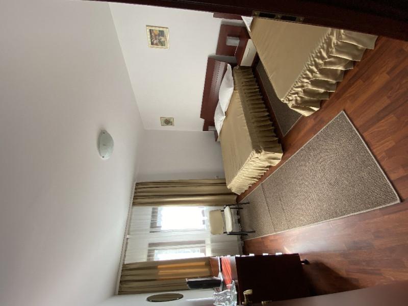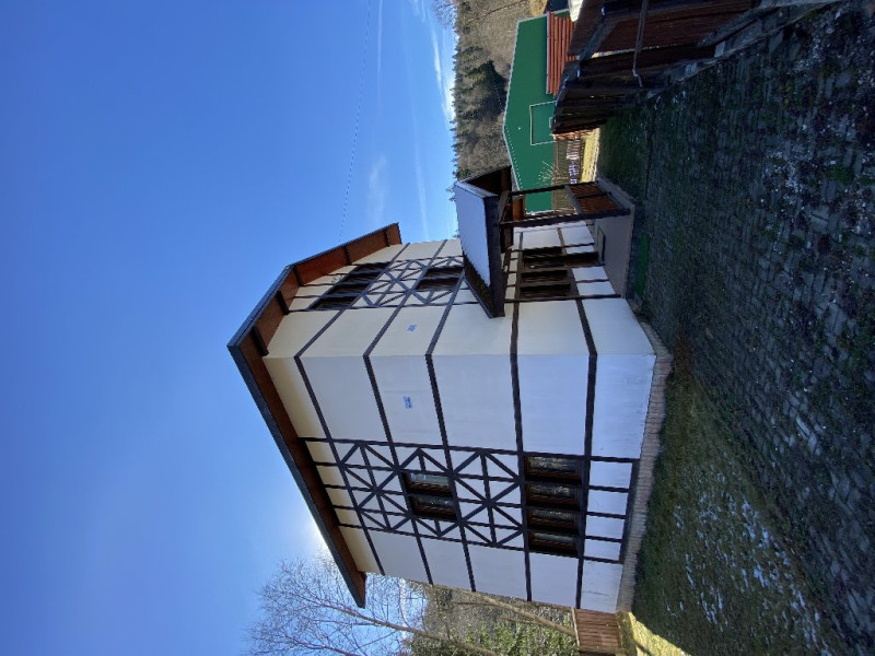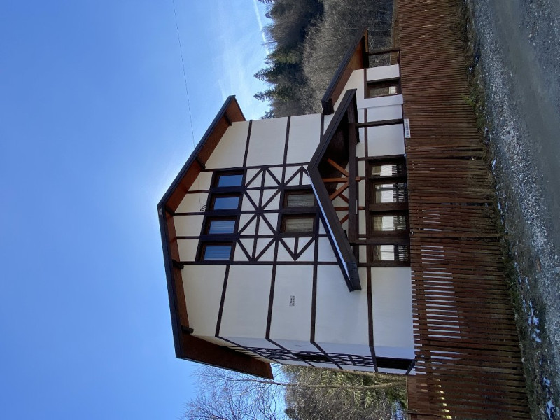 Descriere: Vila este spatioasa, cu 2 etaje, chicineta la fiecare etaj si 3 DVD-playere.Parterul cuprinde 1 sufragerie cu o masa de 10 persoane, o bucatarie complet utilata si un living cu 2 canapele. Tot la parter se gaseste o terasa acoperita cu o masa de 10 persoane. Vila are curte si 8 locuri de parcare. Etajele 1 si 2 cuprind cate o chicineta si cate 2 dormitoare (pat matrimonial + pat suplimentar) cu baie proprie, dressing si TV color. Puncte de reper: la 800 de metri de DN1, pe drumul catre Paraul Rece. Servicii: Vila se inchiriaza integral, capacitatea maxima a vilei este de 8 adulti si 3 copii (2-12 ani). Tarifele nu includ serviciile de masa.