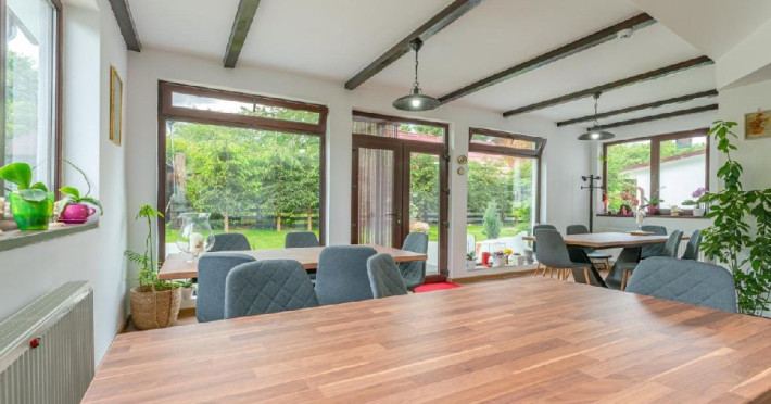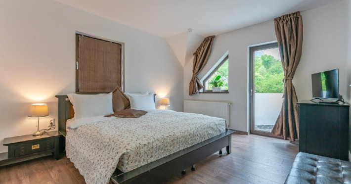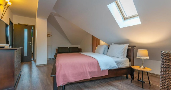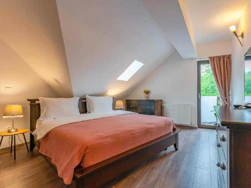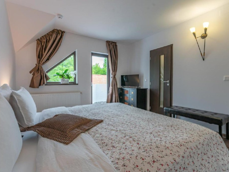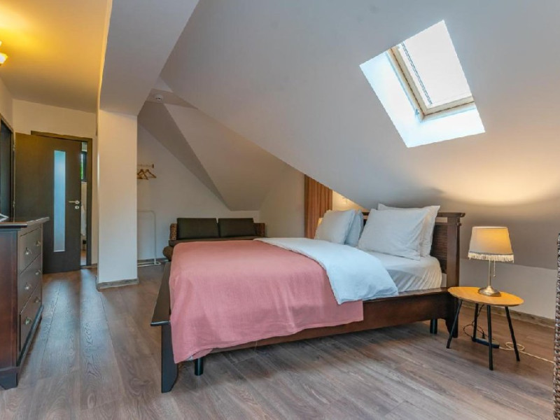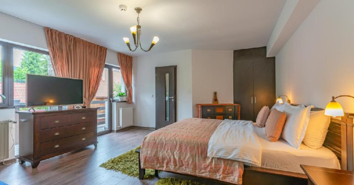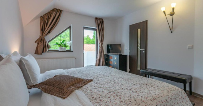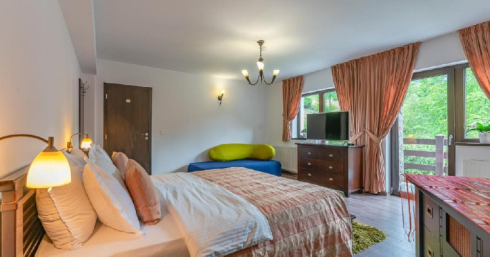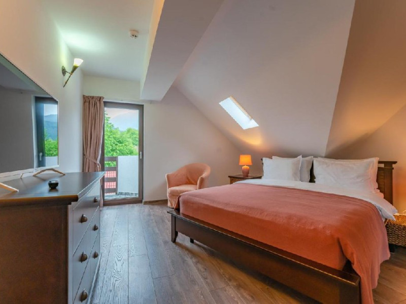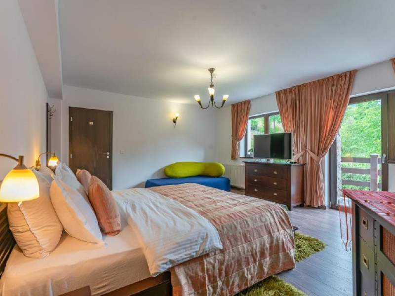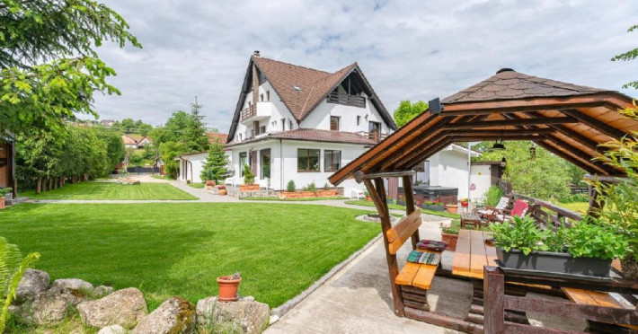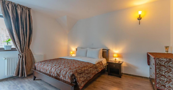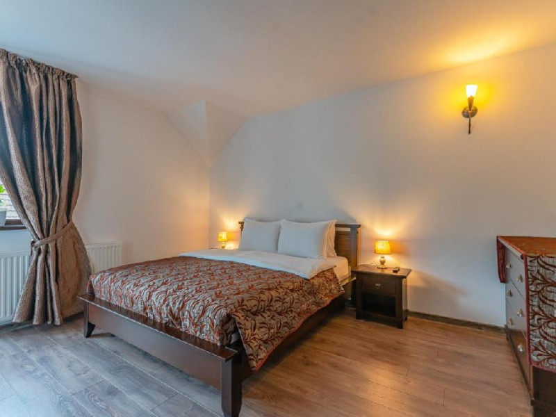 INFORMATII GENERALE Vila Trubadur se afla in Bran, la numai 2 km de Castelul Bran si la 1 km de partia de schi Zanoaga.DESCRIERE UNITATE DE CAZARE Constructie noua, impresioneaza prin rafinament si bun gust. Aici va puteti relaxa ascultand sunetul linistitor al celor doua parauri care traverseaza terenul vilei pe doua laturi sau puteti petrece timpul liber in foisor, pe terasa. FACILITATI UNITATE Locatia pune la dispozitia turistilor, CONTRA COST, acces la sauna si jacuzzi exterior. Parterul este dotat cu un semineu functional pe lemn ce creaza un ambient deosebit in sezonul de iarna si in serile reci de vara. De asemenea, aici aveti la dispozitie: Smart TV si sistem Smart audio-video, carti, jocuri de societate (rummy, table, sah, carti de joc). DESCRIERE CAMERE Camerele deluxe se afla la etajele 1 si 2, sunt mai spatioase decat camerele standard care se afla la etajul 1. Toate spatiile de cazare dispun de grup sanitar propriu, terasa, Smart TV/cablu, acces internet. LOCALIZARE Vila Trubadur se afla in Bran, la numai 2 km de Castelul Bran si la 1 km de partia de schi Zanoaga. ATRACTII TURISTICE Castelul Bran, Wolf Park Adventure, Cetatea Rasnov, Dino Park, Pestera Valea Cetatii, Parcul de aventura Cheile Gradistei. SERVICII DE MASA Mesele se servesc in restaurantul propriu cu circuit inchis. POLITICI Animalele de companie nu sunt acceptate.
