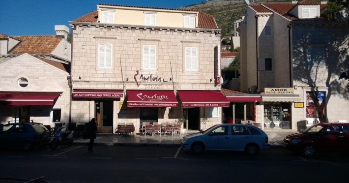 Villa Amfora is a guesthouse in Dubrovnik's Gruž neighborhood, a 5-minute walk from Gruž Harbor and the Dubrovnik Ferry Port. The 8 air-conditioned rooms each include a private bathroom with shower, complimentary toiletries, and a hair dryer; a refrigerator; a flat-screen TV; and complimentary Wi-Fi. Amenities include luggage storage, laundry facilities, and a 24-hour airport shuttle (surcharge applies). Cooked-to-order breakfast is available daily (fee applies). Guests can dine at the on-site restaurant, Amfora, or grab a snack at the snack bar/deli. A bar/lounge is also available. Nearby attractions include the Gruž Open Market, Red History Museum, and Dubrovnik Shopping Minčeta. Lapad Beach is 1.5 miles away. Dubrovnik's Old Town is a 10-minute drive. The VILLA AMFORA DUBROVNIK is a hotel.