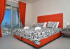 On the lower level of the villa is a twin bedroom with an en suite shower room. The bedroom features a seating area and follows the designing line of the other rooms. Patios from the bedroom provide access to the garden at the front of the house.