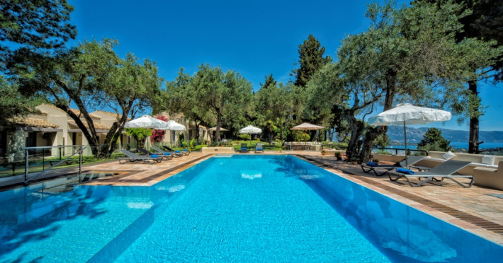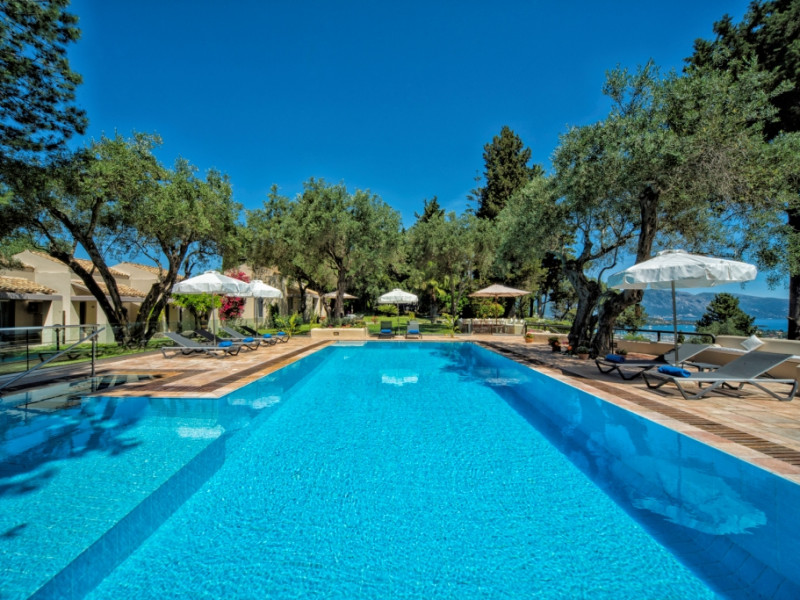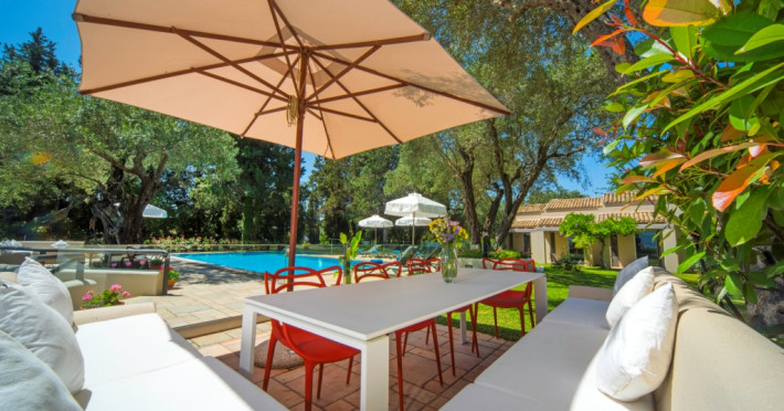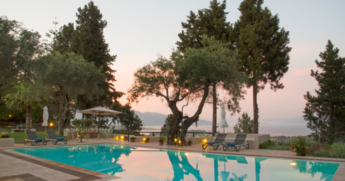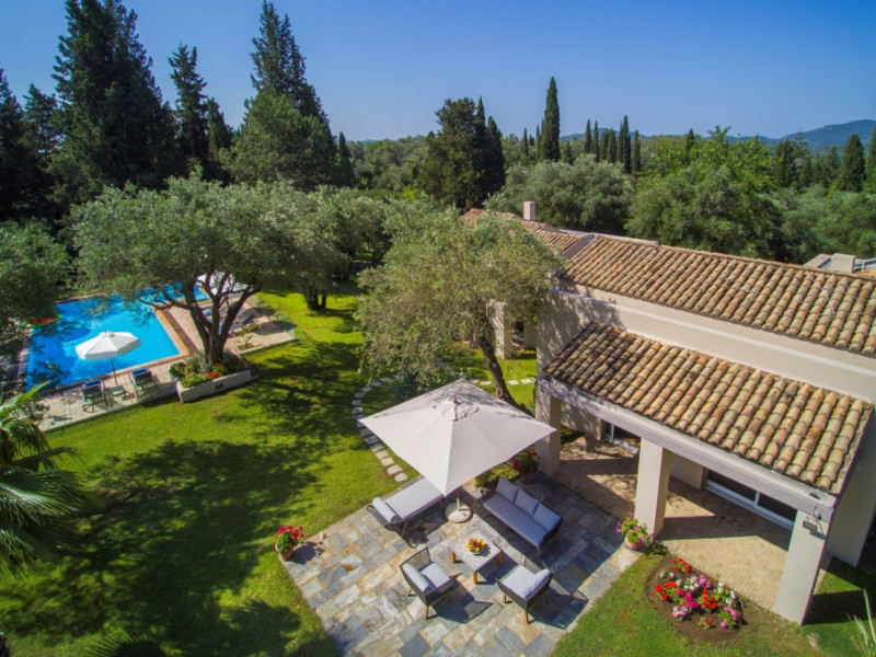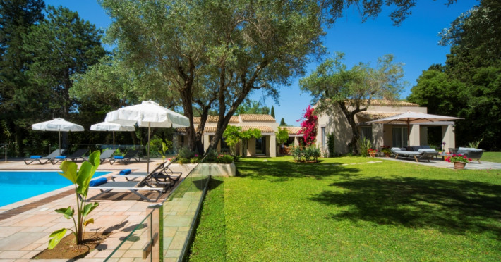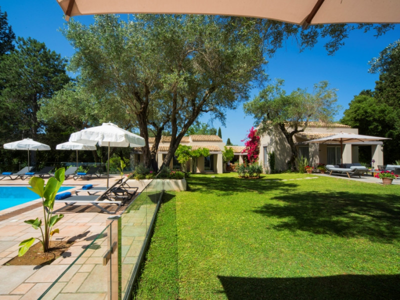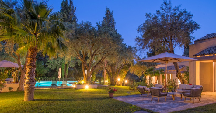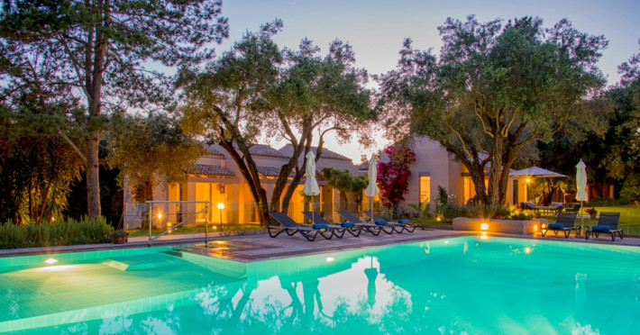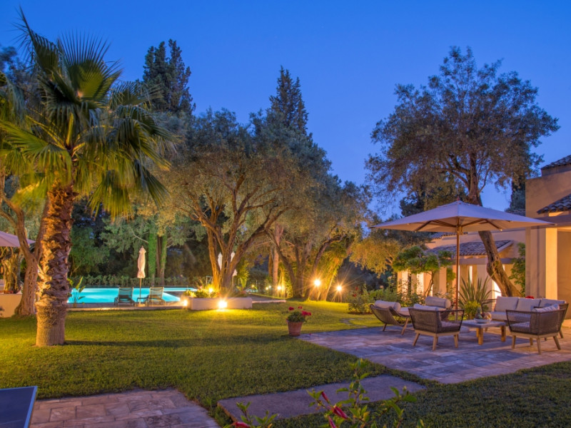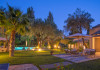 pool and lush gardens with mature trees such as olive, cypress, orange, lemon,