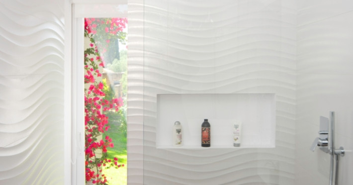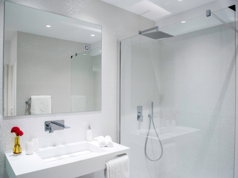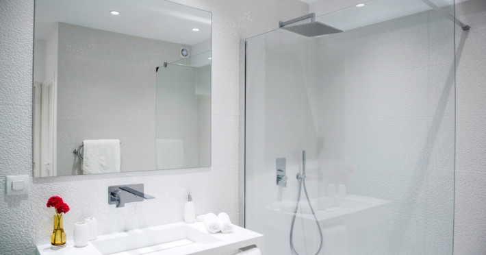 with walk-in rain shower, luxury towels and bathrobes, luxury toiletries.