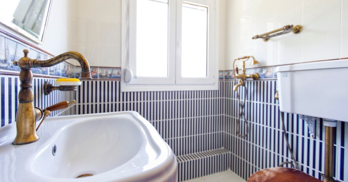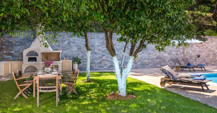7 min walk from the villa. It is a pebble beach where it is possible to hire