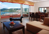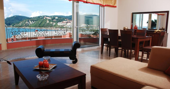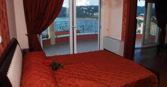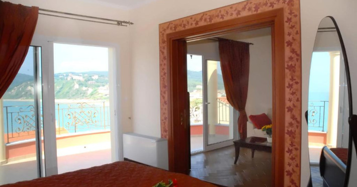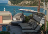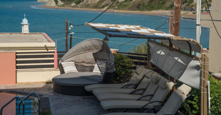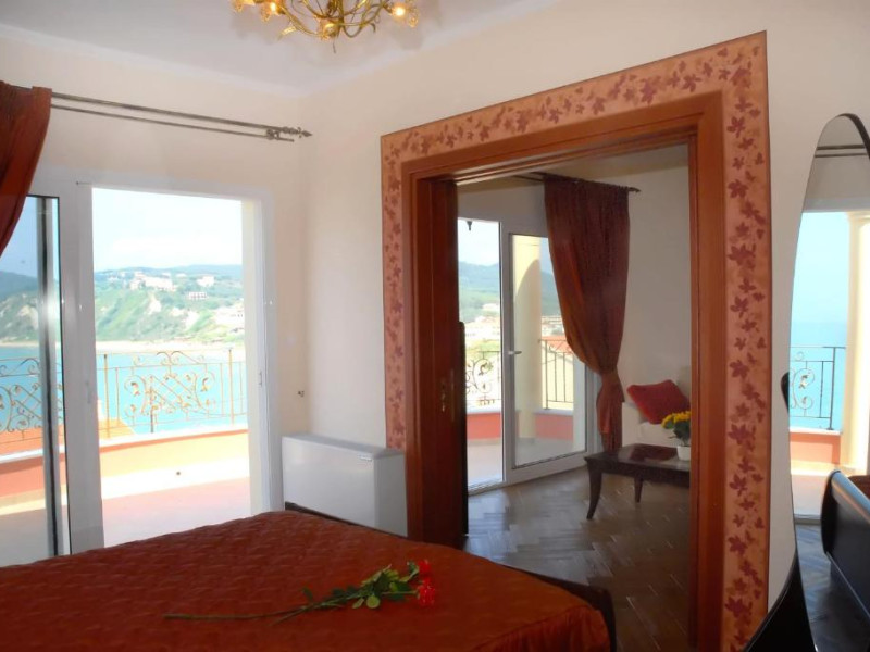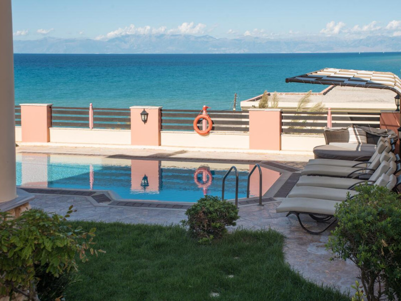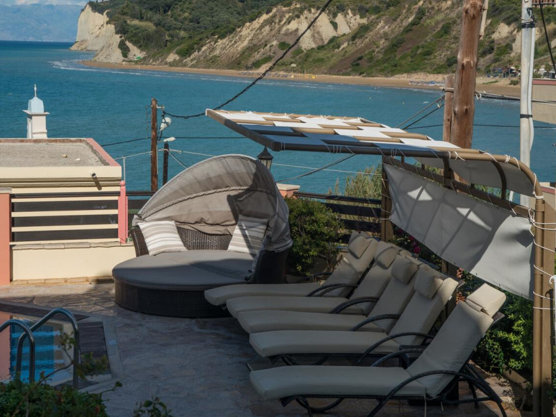 the sea and the beauties of Corfu Island. The view from their moon-shaped