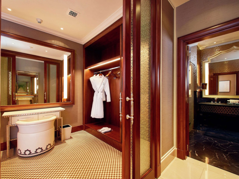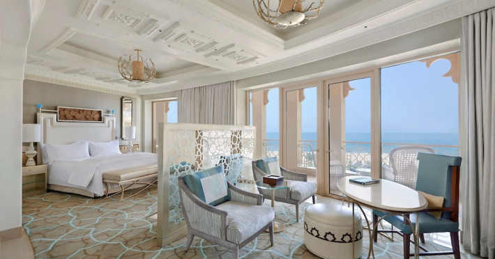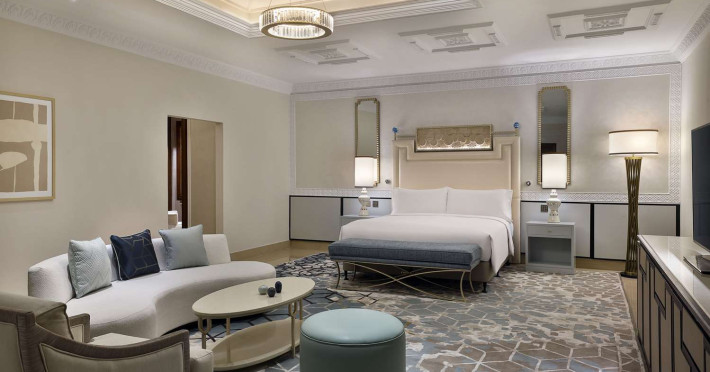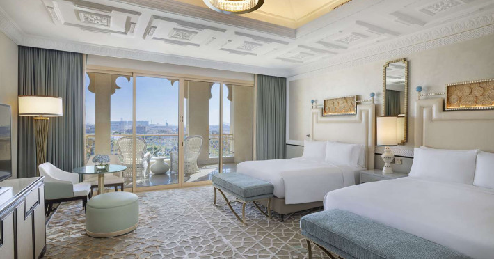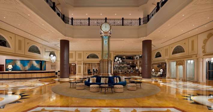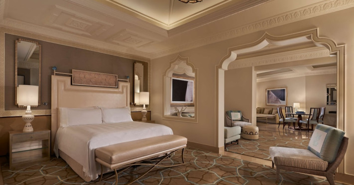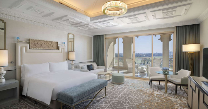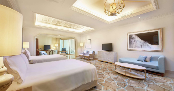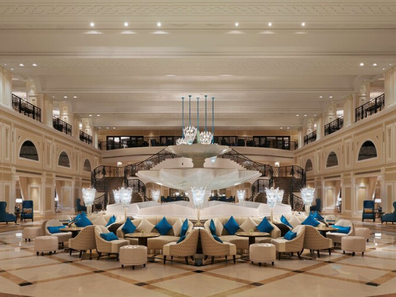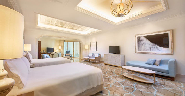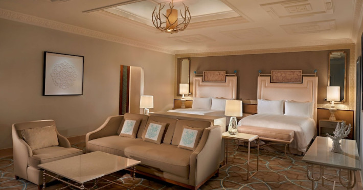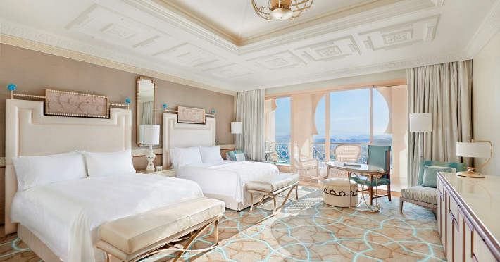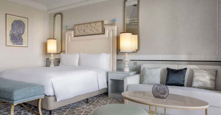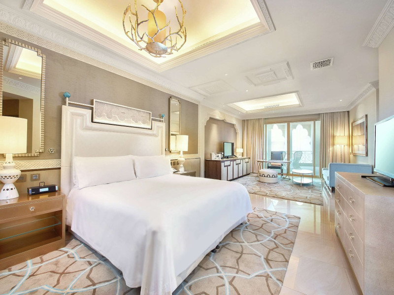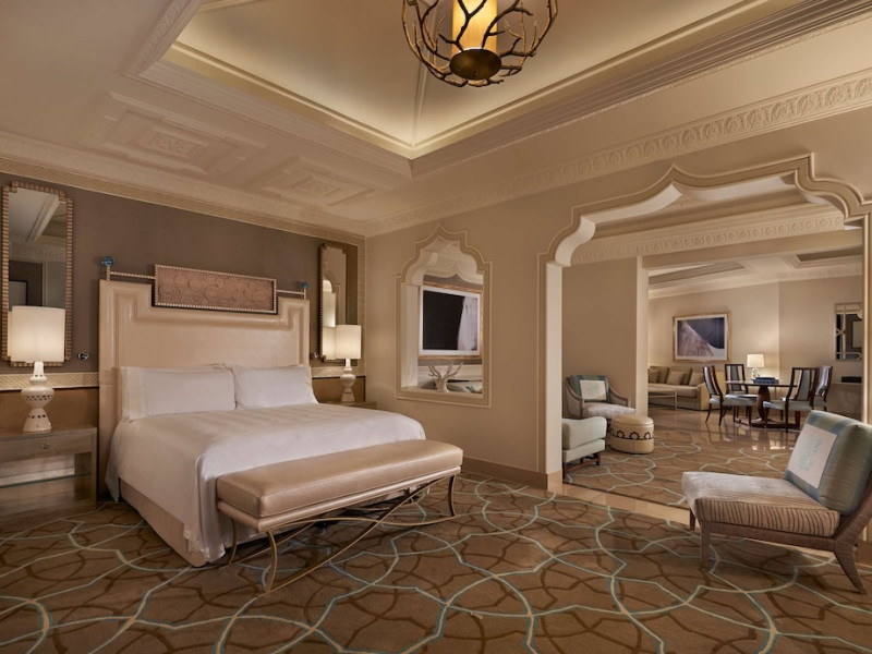 The Tourism Dirham Fee of AED 20 per night, per bedroom is charged for guest rooms and suites. It is collected during your stay at the property, it is not included in the room rate. Kids 5 and under eat free with a paying adult, and those aged 6-11 get a 50% discount.Room packages exclude kids'meals. The Waldorf Astoria Ras Al Khaimah Hotel is a Beach Resort, Full Service, Golf Resort, Health Resort, Honeymoon, Leisure, Modern, Spa Resort, Tourist hotel. The nightlife/restaurants are located in the hotel.
