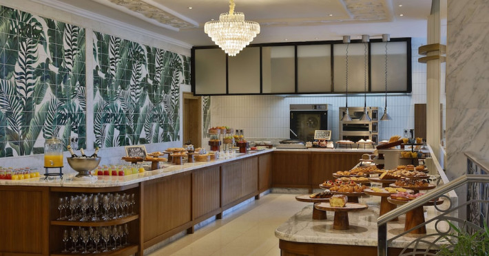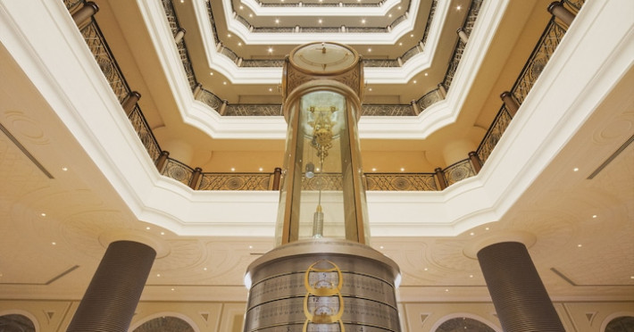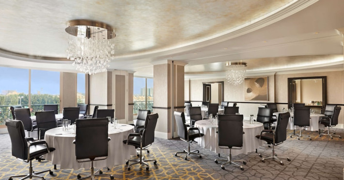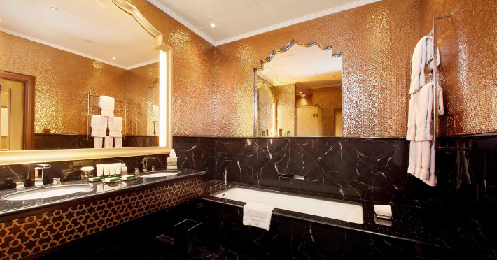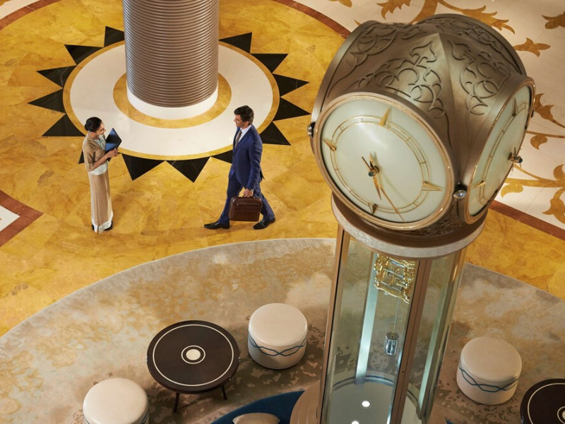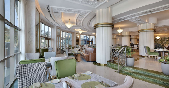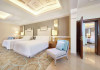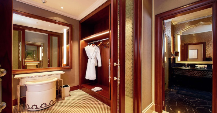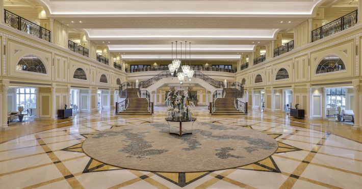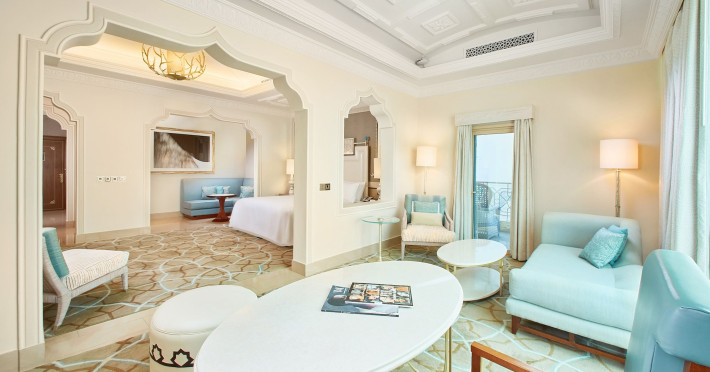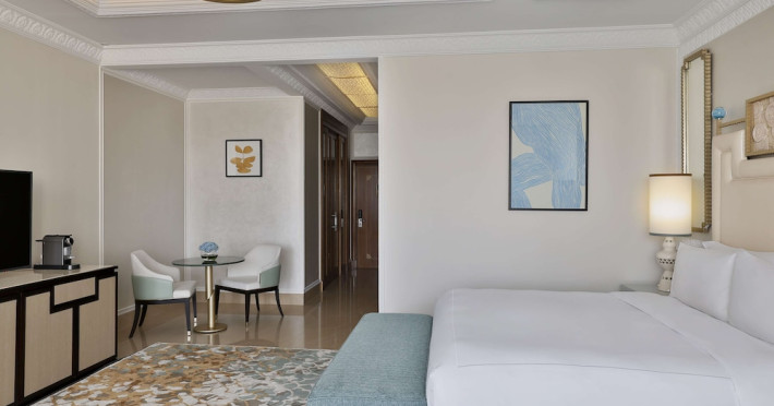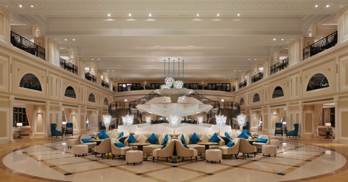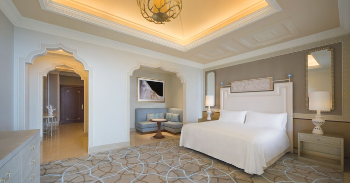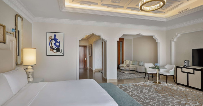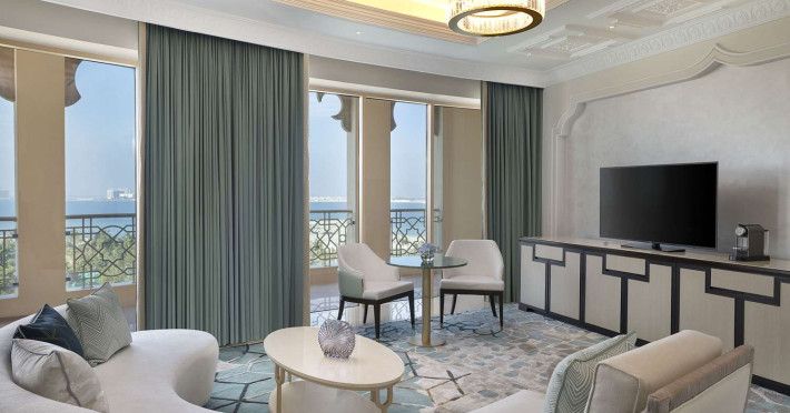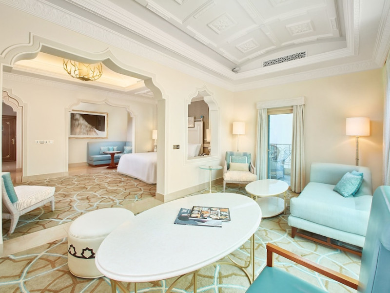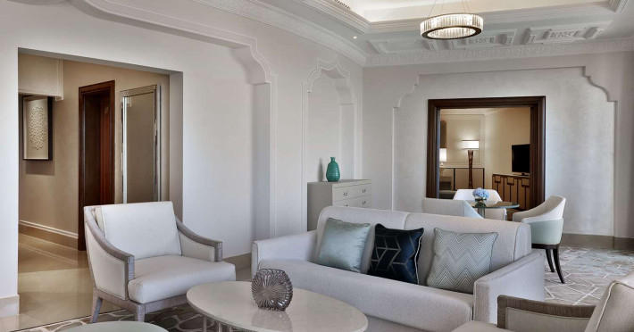 The Tourism Dirham Fee of AED 20 per night, per bedroom is charged for guest rooms and suites. It is collected during your stay at the property, it is not included in the room rate. Kids 5 and under eat free with a paying adult, and those aged 6-11 get a 50% discount.Room packages exclude kids'meals. The Waldorf Astoria Ras Al Khaimah Hotel is a Beach Resort, Full Service, Golf Resort, Health Resort, Honeymoon, Leisure, Modern, Spa Resort, Tourist hotel. The nightlife/restaurants are located in the hotel.