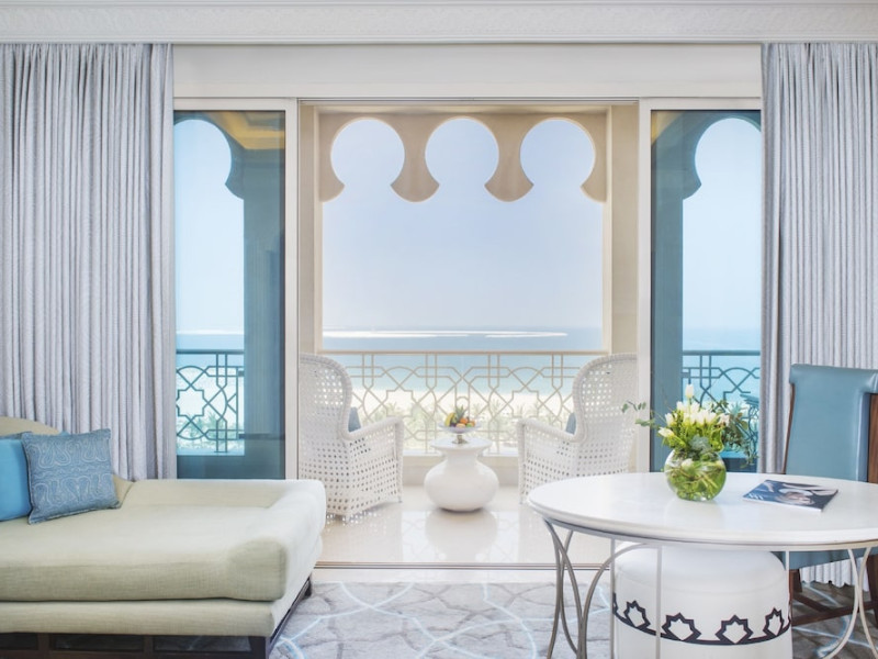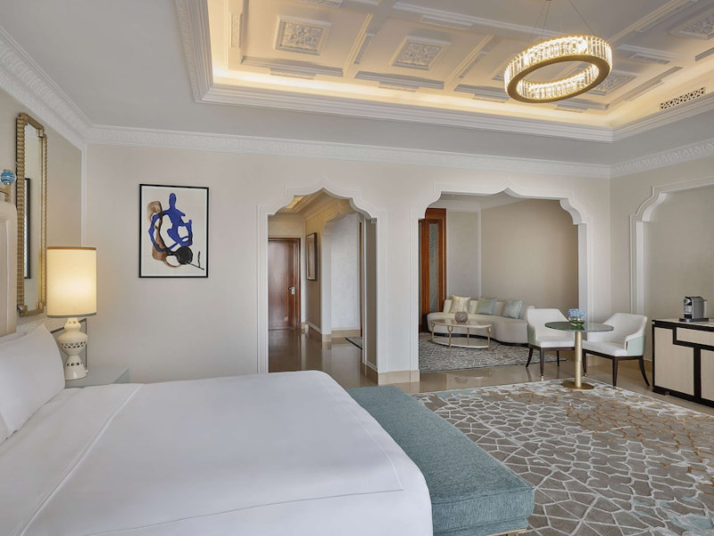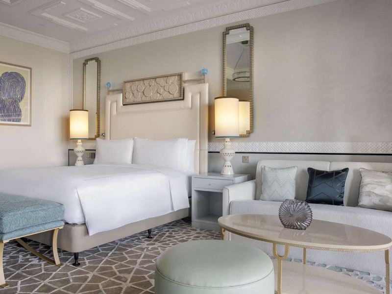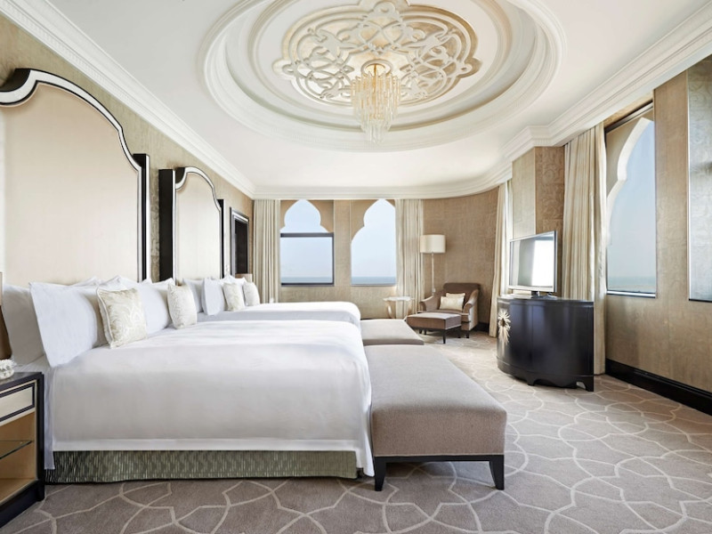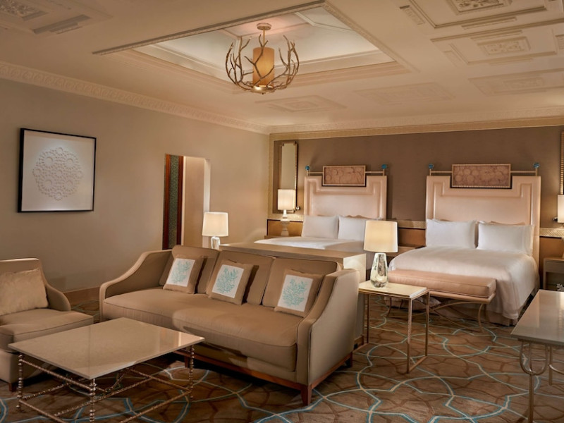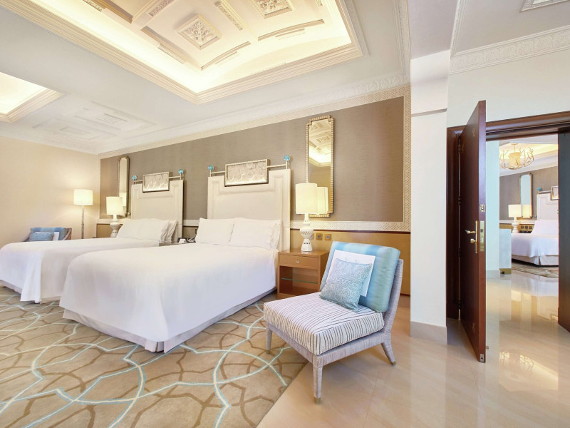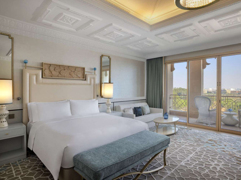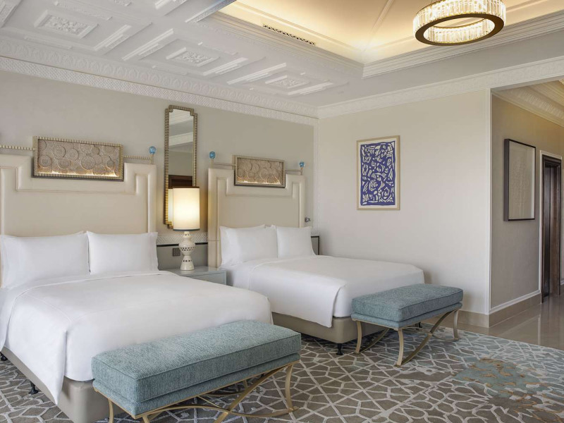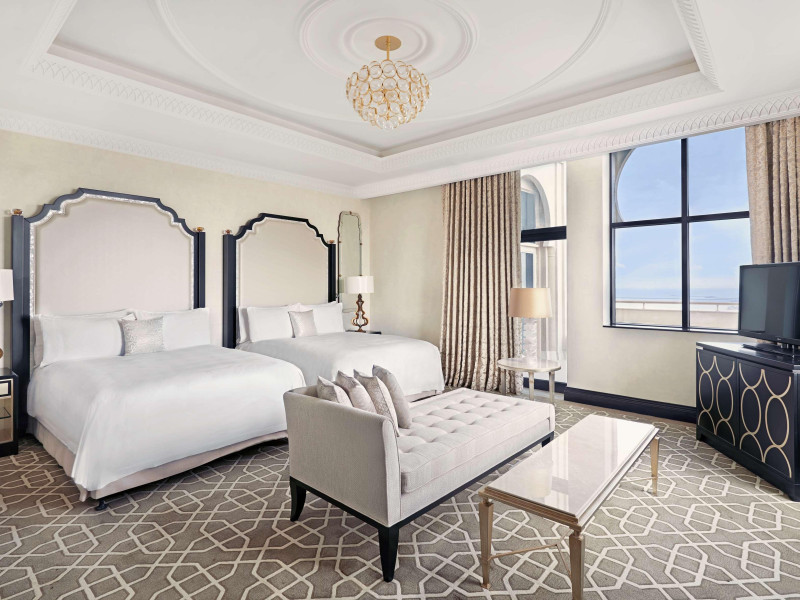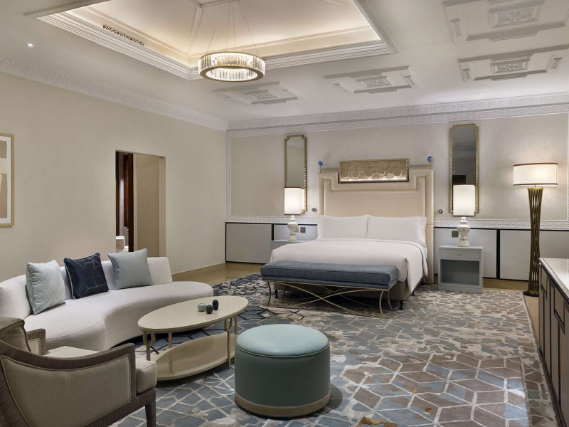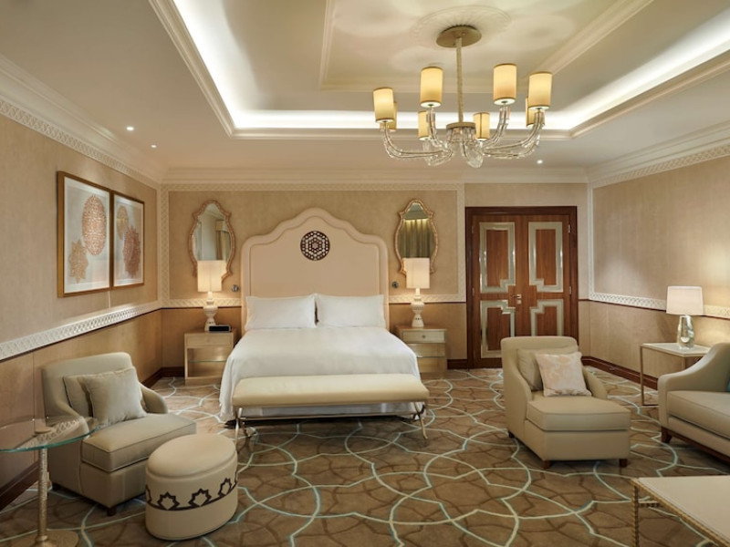 Nestled between the Arabian Gulf, a golf course, and the Hajar mountains, Waldorf Astoria Ras Al Khaimah offers luxurious accommodations. The resort features a full-service spa with massages, body treatments, and facials; three outdoor swimming pools; a private beach; and complimentary Wi-Fi. Nine restaurants, including Sunset Beach Lounge, offer international cuisine, complemented by a coffee shop/cafe and 24-hour room service. Guests can choose from seven bars/lounges, two beach bars, and two poolside bars. Buffet breakfast is available daily (fee applies). Amenities include a 24-hour business center, limo/town car service, dry cleaning/laundry services, a conference center, five meeting rooms, free valet parking, and a 24-hour airport shuttle (surcharge). Guestrooms include minibars and espresso makers. Bathrooms feature separate bathtubs and showers with rainfall showerheads and designer toiletries. Nearby attractions include Al Hamra Golf Club, Al Hamra Mall, and Al Hamra Marina and Yacht Club. The nearest airport is Ras al Khaimah (RKT), with Dubai International Airport (DXB) being the preferred airport. Babysitting services are available (surcharge).