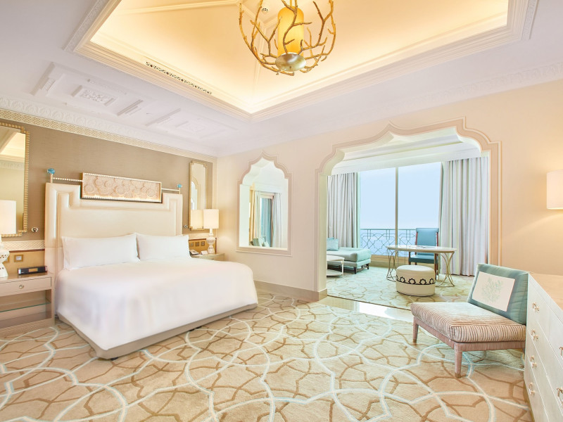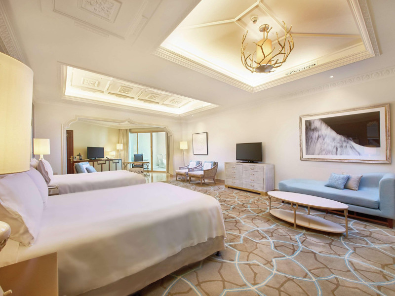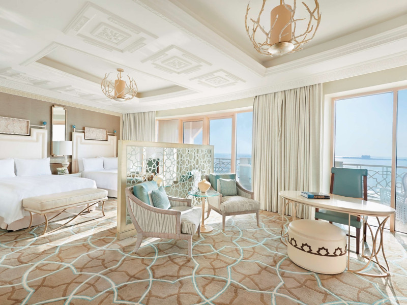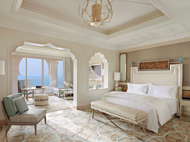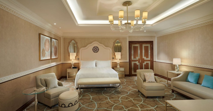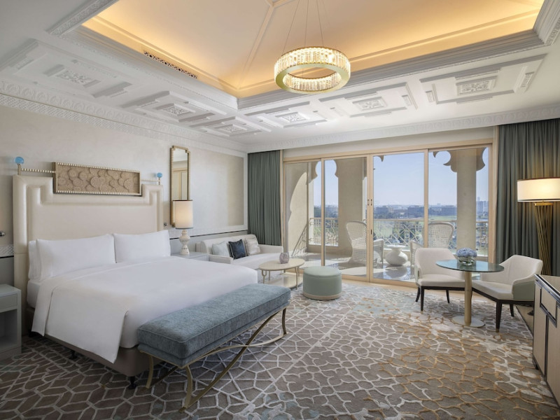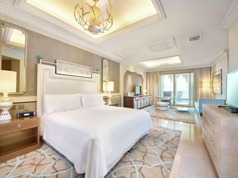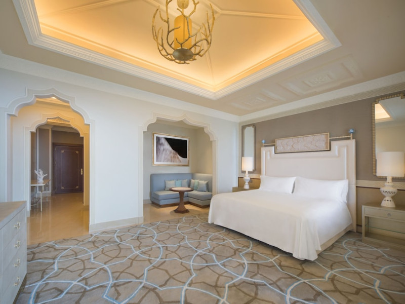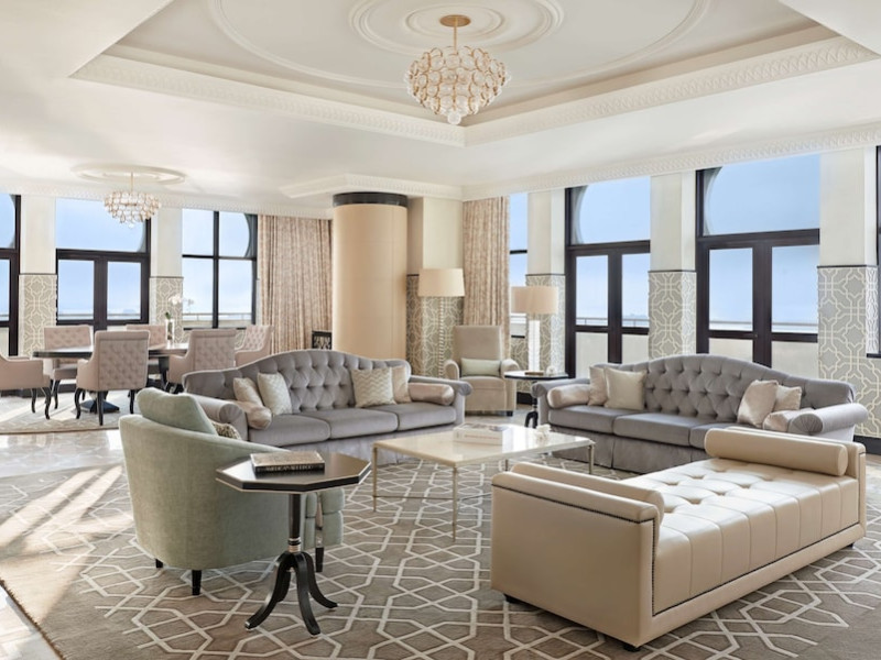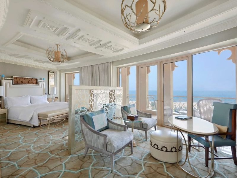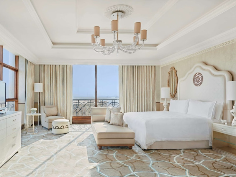 Nestled between the Arabian Gulf, a golf course, and the Hajar mountains, Waldorf Astoria Ras Al Khaimah offers luxurious accommodations. The resort features a full-service spa with massages, body treatments, and facials; three outdoor swimming pools; a private beach; and complimentary Wi-Fi. Nine restaurants, including Sunset Beach Lounge, offer international cuisine, complemented by a coffee shop/cafe and 24-hour room service. Guests can choose from seven bars/lounges, two beach bars, and two poolside bars. Buffet breakfast is available daily (fee applies). Amenities include a 24-hour business center, limo/town car service, dry cleaning/laundry services, a conference center, five meeting rooms, free valet parking, and a 24-hour airport shuttle (surcharge). Guestrooms include minibars and espresso makers. Bathrooms feature separate bathtubs and showers with rainfall showerheads and designer toiletries. Nearby attractions include Al Hamra Golf Club, Al Hamra Mall, and Al Hamra Marina and Yacht Club. The nearest airport is Ras al Khaimah (RKT), with Dubai International Airport (DXB) being the preferred airport. Babysitting services are available (surcharge).