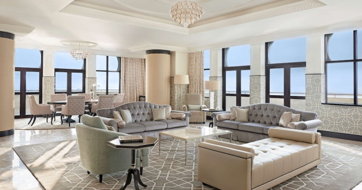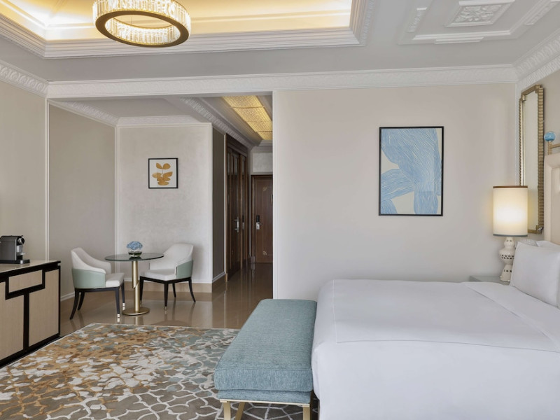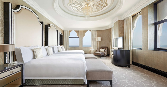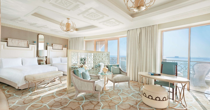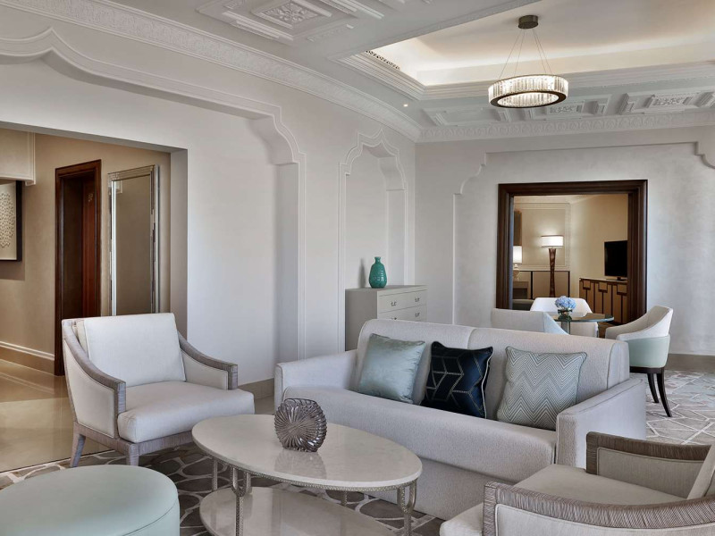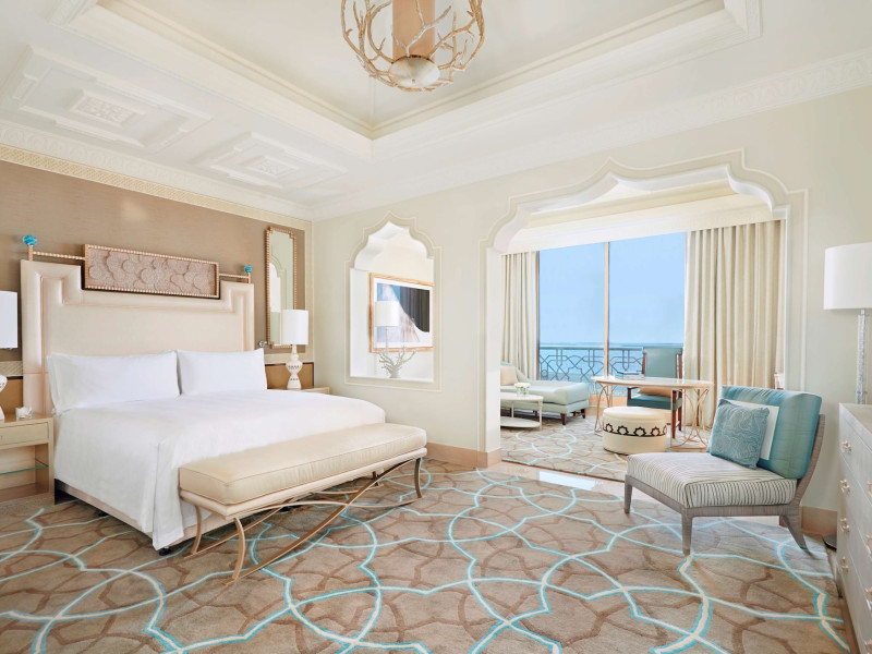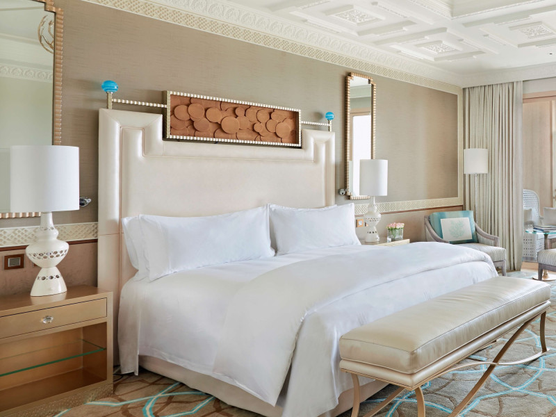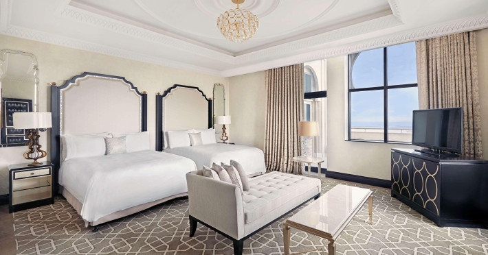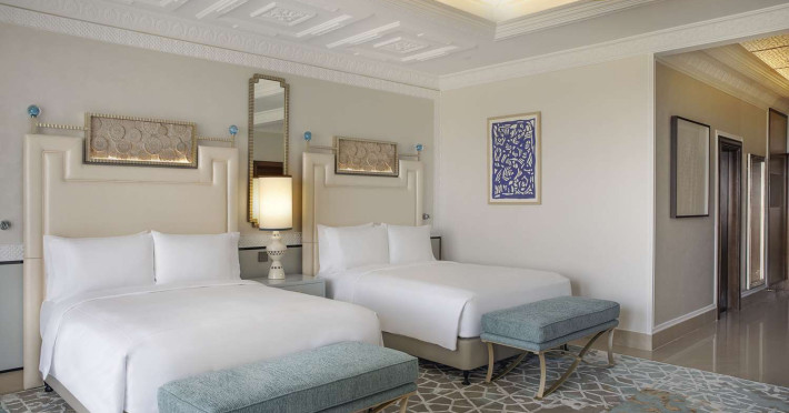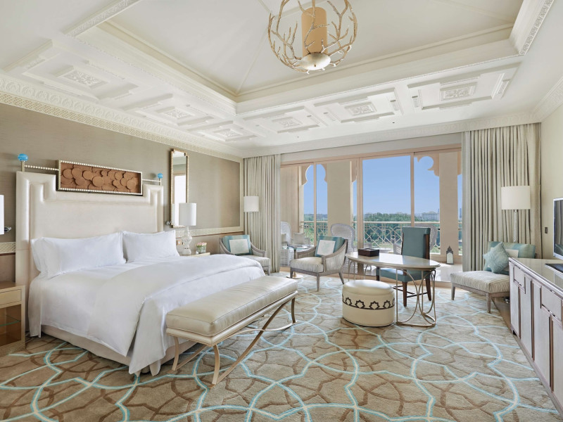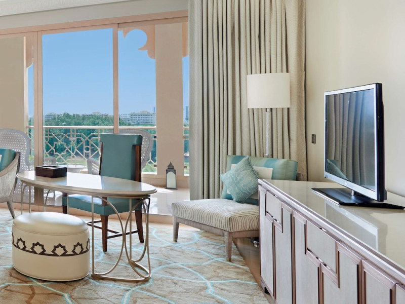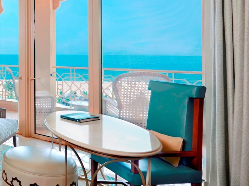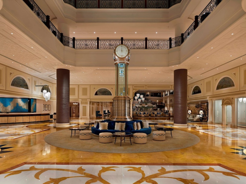 Nestled between the Arabian Gulf, a golf course, and the Hajar mountains, Waldorf Astoria Ras Al Khaimah offers luxurious accommodations. The resort features a full-service spa with massages, body treatments, and facials; three outdoor swimming pools; a private beach; and complimentary Wi-Fi. Nine restaurants, including Sunset Beach Lounge, offer international cuisine, complemented by a coffee shop/cafe and 24-hour room service. Guests can choose from seven bars/lounges, two beach bars, and two poolside bars. Buffet breakfast is available daily (fee applies). Amenities include a 24-hour business center, limo/town car service, dry cleaning/laundry services, a conference center, five meeting rooms, free valet parking, and a 24-hour airport shuttle (surcharge). Guestrooms include minibars and espresso makers. Bathrooms feature separate bathtubs and showers with rainfall showerheads and designer toiletries. Nearby attractions include Al Hamra Golf Club, Al Hamra Mall, and Al Hamra Marina and Yacht Club. The nearest airport is Ras al Khaimah (RKT), with Dubai International Airport (DXB) being the preferred airport. Babysitting services are available (surcharge).