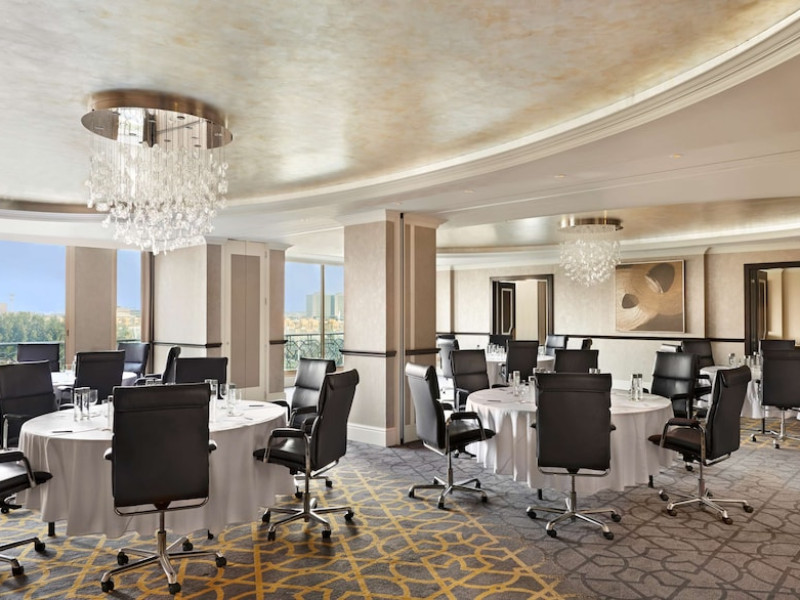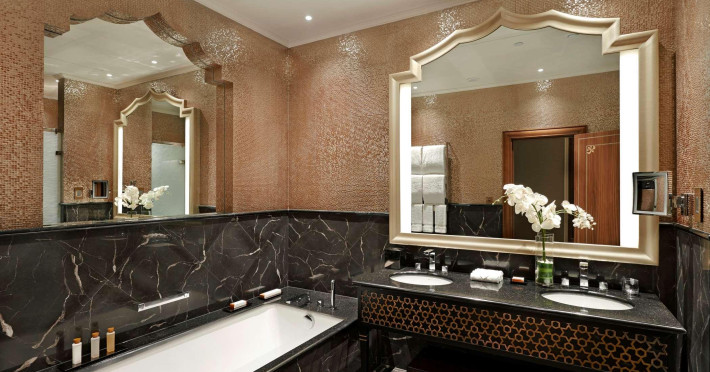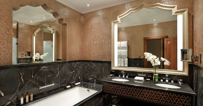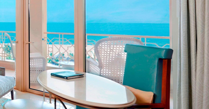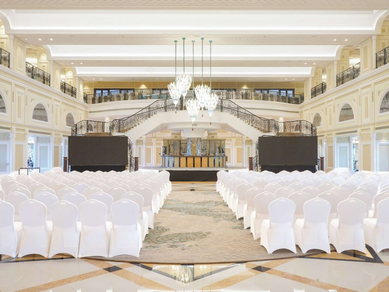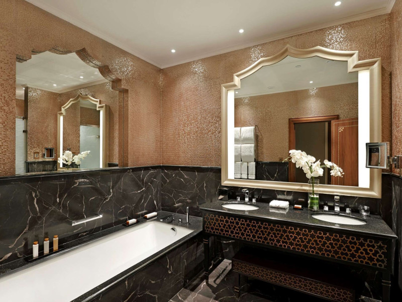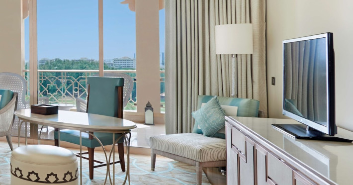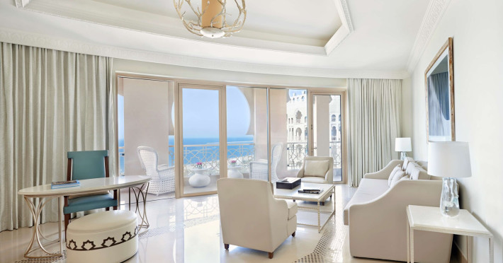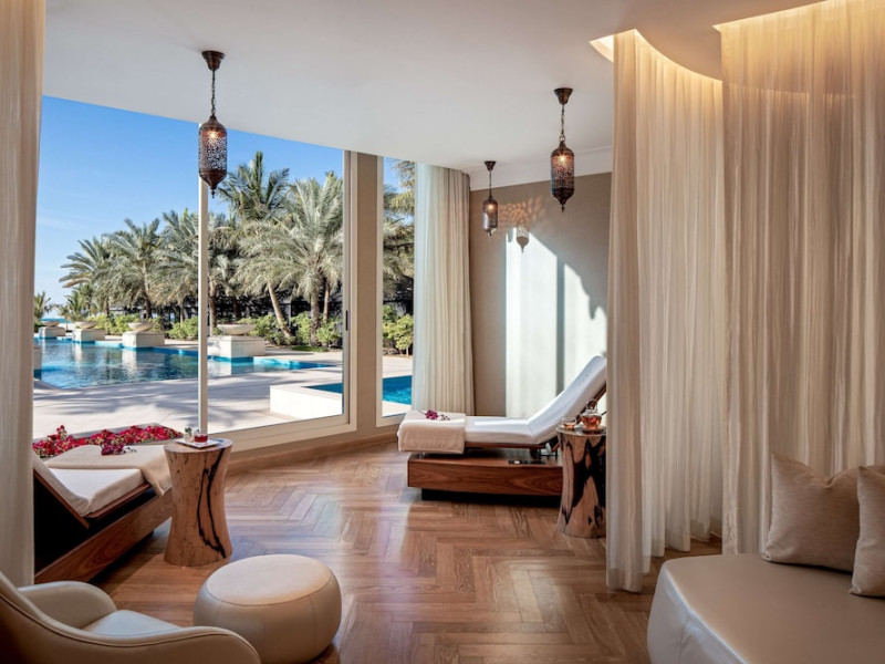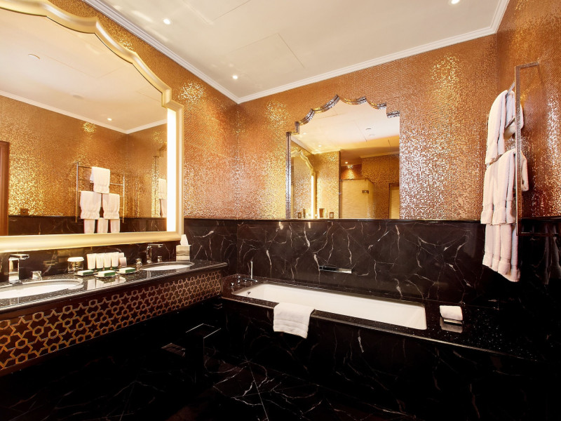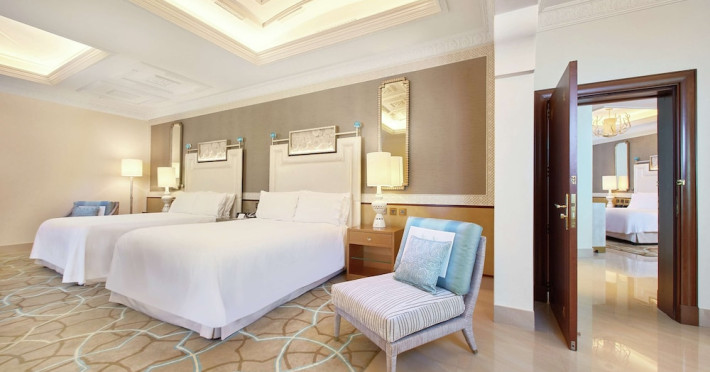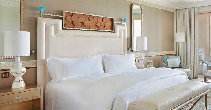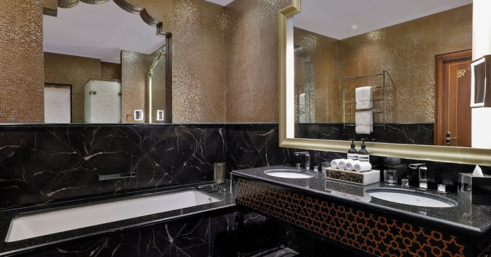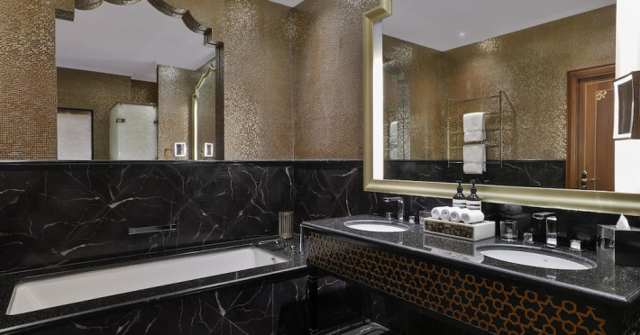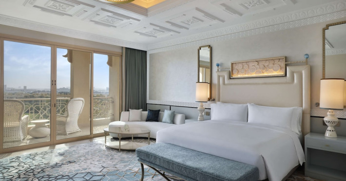 Nestled between the Arabian Gulf, a golf course, and the Hajar mountains, Waldorf Astoria Ras Al Khaimah offers luxurious accommodations. The resort features a full-service spa with massages, body treatments, and facials; three outdoor swimming pools; a private beach; and complimentary Wi-Fi. Nine restaurants, including Sunset Beach Lounge, offer international cuisine, complemented by a coffee shop/cafe and 24-hour room service. Guests can choose from seven bars/lounges, two beach bars, and two poolside bars. Buffet breakfast is available daily (fee applies). Amenities include a 24-hour business center, limo/town car service, dry cleaning/laundry services, a conference center, five meeting rooms, free valet parking, and a 24-hour airport shuttle (surcharge). Guestrooms include minibars and espresso makers. Bathrooms feature separate bathtubs and showers with rainfall showerheads and designer toiletries. Nearby attractions include Al Hamra Golf Club, Al Hamra Mall, and Al Hamra Marina and Yacht Club. The nearest airport is Ras al Khaimah (RKT), with Dubai International Airport (DXB) being the preferred airport. Babysitting services are available (surcharge).