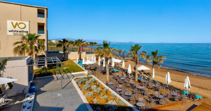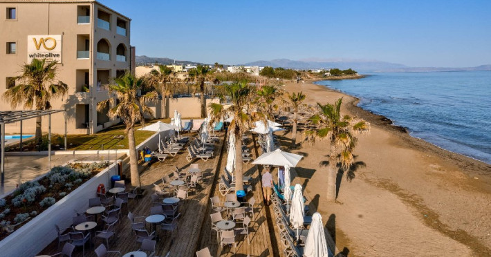 Puncte forte ale ofertei Un hotel elegant si recent renovat, parte din reteaua noastra proprie White Olive Hotels, ce ofera oaspetilor conditii excelente pentru un sejur confortabil, relaxant si de calitate superioara. Locatie linistita, chiar langa plaja, dotari moderne, servicii bune si camere spatioase. Ideal atat pentru cupluri, cat si pentru familii cu copii. ________________________________________ Hotel - Hotel renovat complet in iarna 2020/2021 - Cladire principala cu 5 etaje - 70 de camere moderne si confortabile: - Camere standard (unele cu vedere la mare, camerele fara vedere la mare pot fi orientate spre drumul principal) - Camere de familie mari cu doua dormitoare (unele cu vedere la mare) - Junior suite spatioase (majoritatea cu vedere la mare) - Camere cu acces direct la piscina - Atentie! Rezervarile pentru camerele de familie cu mai putin de 3 persoane pot fi modificate in camere standard - Dotari in camera: baie (dus, uscator de par, articole cosmetice), aer conditionat, TV-sat, telefon, ceainic electric, seif, frigider - Wi-Fi gratuit in camere si zonele publice - Receptie 24h, lobby, lift - Doua piscine (aprox. 250 mp si 150 mp), doua piscine pentru copii - Sezlonguri si umbrele gratuite la piscina - Restaurant principal, snack bar la piscina - Alte facilitati: sala de conferinte, magazin - Sala de fitness gratuita, consola de jocuri - Centru SPA mic (doar pentru adulti) - Camera de joaca pentru copii - Contra cost: sauna uscata - Nu exista mini club pentru copii ________________________________________ Localizare -Statiunea Sfakaki - La aprox. 9 km de centrul orasului Rethymno (restaurante, magazine, cluburi) - Statie de autobuz la aprox. 200 m de hotel - La aprox. 72 km de aeroportul din Heraklion - La aprox. 77 km de aeroportul din Chania ________________________________________ Plaja - Plaja chiar langa hotel - Plaja mica, cu nisip si pietris, intrare lina si pietroasa in mare - Sezlonguri, umbrele si prosoape de plaja gratuite ________________________________________ Mese Tip de masa All Inclusive: - Mic dejun, pranz si cina tip bufet bogat (bucatarie internationala) - Bauturi All Inclusive servite intre orele 10:0023:00 - Bauturi nealcoolice: apa, sucuri, bauturi carbogazoase, cafea, ceai - Bauturi alcoolice locale: bere, vin, ouzo, vodca, gin, brandy, rom - All Inclusive este valabil din momentul sosirii pana la plecare ________________________________________ Program sportiv si de divertisment Pentru toti: - Sala de fitness gratuita, consola cu jocuri Pentru copii: - Camera de joaca Doar pentru adulti: - Mic centru SPA Contra cost: - Sauna uscata ________________________________________ Restaurante si baruri - Restaurant principal tip bufet (bucatarie internationala) - Bar principal deschis intre 10:0023:00 - Snack bar la piscina ________________________________________ Categorie locala ***** _______________________________________ Taxa locala Pretul nu include taxa turistica locala de aprox. 15 EUR/camera/zi. Taxa este obligatorie si se achita direct la receptie, inainte de cazare. ________________________________________ Web site www.whiteolivehotels.com