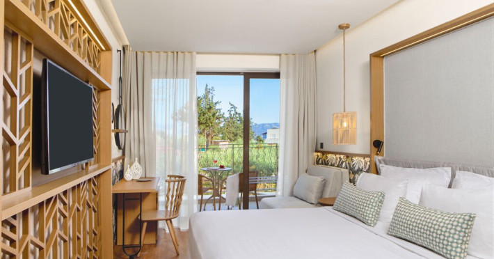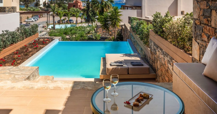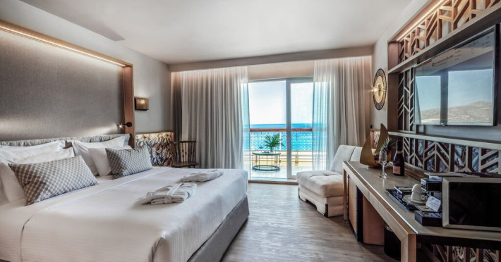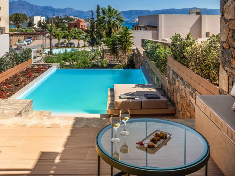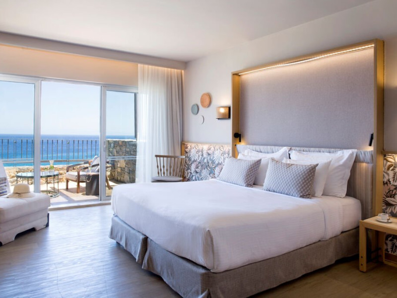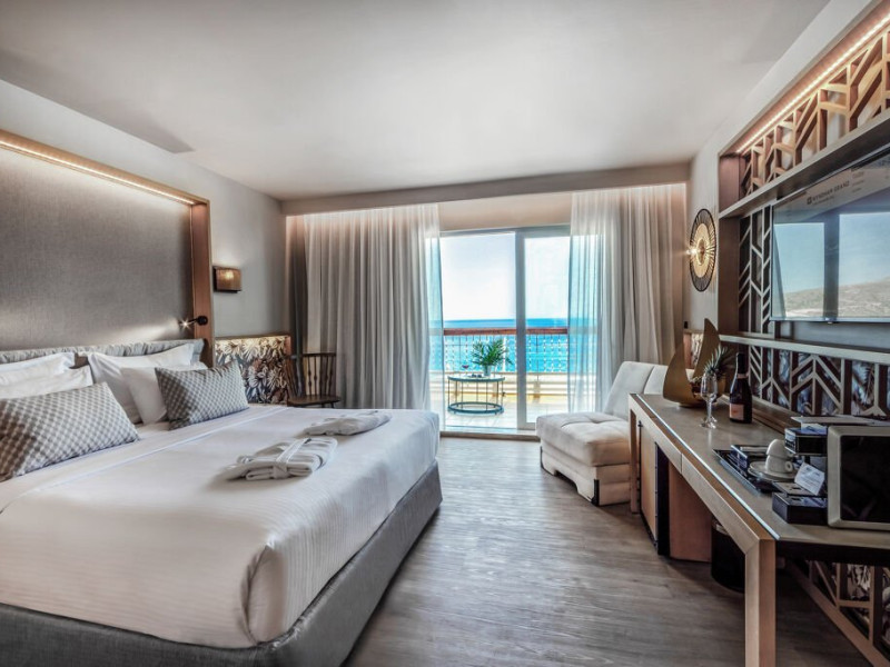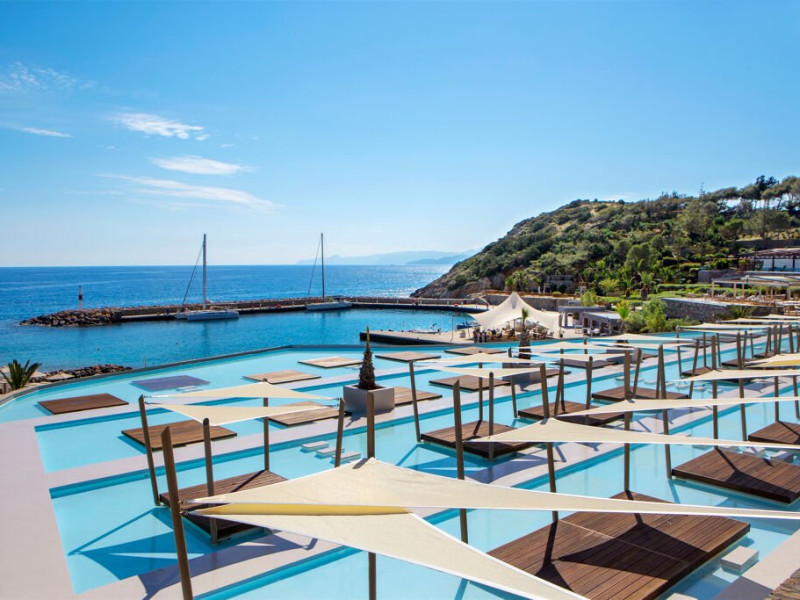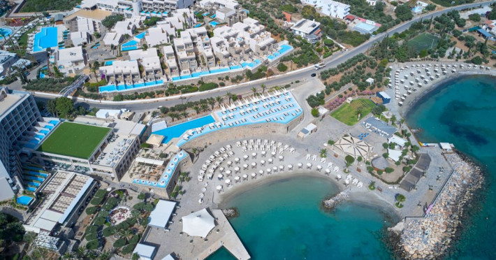 Descriere: Resortul de lux Mirabello Bay Luxury este situat pe plaja din Agios Nikolaos, in prefectura Lasithy. Acest complex ideal pentru familiile cu copii este impartit in 2 zone care sunt conectate printr-un pod recent construit. Prima parte consta intr-o cladire cu 6 etaje si 176 de camere, iar partea a doua a complexului este o zona creata ca un sat traditional ce consta in 135 de bungalouri. Localizare: Mirabello Bay Luxury Resort este localizat pe plaja, la 2 km distanta de Agios Nikolaos si 60 km de Heraklion. Plaja: Mirabello Bay Luxury Resort detine plaja proprie, cu umbrele si sezlonguri gratuite, 2 beach baruri si facilitati pentru practicarea sporturilor acvatice. Dotari camere: Hotelul dispune de 311 camere cu design modern si dotate cu aer conditionat, televizor satelit, telefon (cu plata), seif, radio, frigider (incarcat zilnic contra cost), fier de calcat (la cerere), birou, facilitati pentru preparat cafea/ceai, baie cu dus sau cada, uscator de par, balcon/terasa. Pentru familiile cu copii recomandam camerele family cu o suprafata de 50 m2 alcatuite din 2 camere separate, o baie si 2 balcoane sau camerele maisontette cu o suprafata de 50-55 m2, scara interioara, avand un pat matrimonial la etajul superior si 2 paturi single la parter, living room, 2 bai (una la fiecare etaj), terasa mobilata. Facilitati hotel: Mirabello Bay Luxury Resort ofera clientilor receptie 24 de ore, salon, camera pentru bagaje, wi-fi gratuit in toate zonele publice, biblioteca, 1 restaurant principal, 4 restaurante a la carte, 5 baruri, 2 piscine, umbrele si sezlonguri gratuite atat la piscine, cat si pe plaja, salon de infrumusetare, centru fitness, aerobic, centru de scufundari, windsurfing, canoe, tenis de masa, terenuri de tenis, teren de baschet, volei, fotbal, mini golf, biliard, tir cu arcul, boccia, jocuri de masa, program de animatie, discoteca, seri cretane cu muzica live si dansatori. Facilitati pentru copii: Mirabello Bay Luxury Resort asigura copiilor mini club, loc de joaca, program de animatie, 2 piscine, babysitiing (la cerere, cu plata), pat pentru infanti si scaune speciale (la cerere, gratuit). Categoria oficiala: 5 stele Nota informativa: Pentru anumite facilitati din hotel sau din camera, hotelierul poate solicita taxe suplimentare. In momentul sosirii la hotel solicitati receptionerului sa va informeze cu exactitate asupra lor.