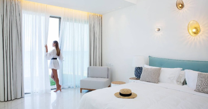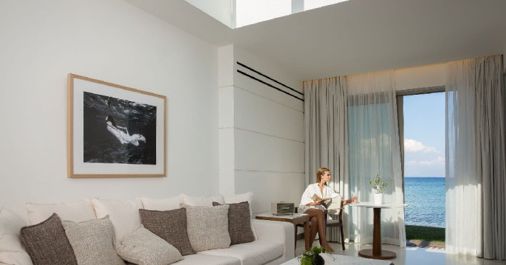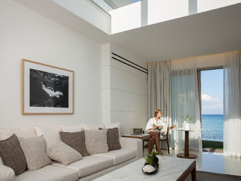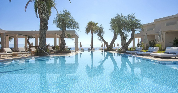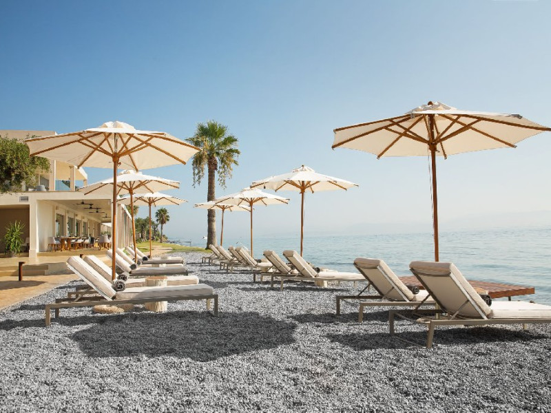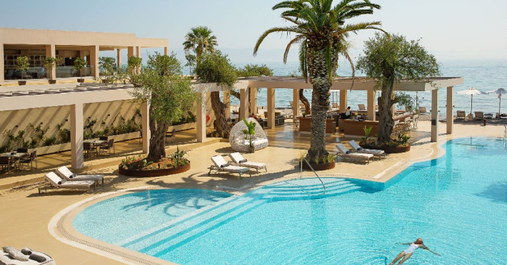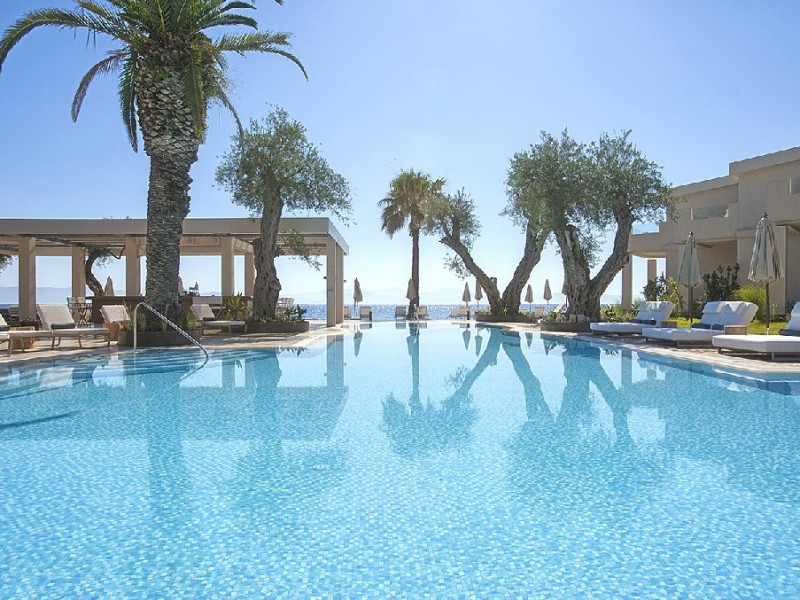 9,5 Booking.com EXCEPTIONAL Descriere: ADULTS ONLY! Domes Miramare - ultimul sosit in familia DOMES RESORTS. Spatii renovate, in care decorul minimalist inspirat de caracterului insulei Corfu intalneste un stil arhitectural fara varsta, creand o ambianta luxoasa perfect echilibrata. Palmieri inalti de 20m, maslini vechi de secole se reflecta in piscinele stralucitoare. Cladirea iconica a celebrului arhitect grec Charalambos Sfaellos, cu un interior modern proiectat de renumitul designer Kristina Zanic, ofera un sentiment de intimitate si exclusivitate oaspetilor sai, alaturi de o colectie unica de amintiri pretioase. Deci...fiti gata sa faceti parte din istoria acestui loc. Dotari camere: Cele mai intime apartamente de pe insula combina minimalismul cu materialele exceptionale, cum ar fi marmura alba, pentru a crea impreuna o naratiune inspirata din mostenirea corfiota. Fiecare suita reprezinta o poveste, o experienta de vacanta unica si singulara. Facilitatile exceptionale fac din aceste apartamente cele mai luxoase de pe insula Corfu: A/C individual, mini bar, facilitati ceai / cafea, room service, TV prin cablu si satelit, WIFI, CD / DVD player (la cerere), DVD / jocuri (la cerere), uscator de par, fier de calcat si masa de calcat, seif, balcon sau terasa, carti si reviste, cabina de dus, articole de toaleta de lux, halat de baie si papuci, trusa de prim ajutor. Facilitati Hotel: Oaspetii Miramare au privilegiul de a fi initiati in bucataria mediteraneana si corfiota de catre un celebru chef cu stele Michelin - Tassos Mantis. Hotelul dispune de 2 restaurante (Makris si 1962) si de 3 baruri (The Blue bar, The Raw Bar si The Verde Bar). Soma SPA - situat chiar pe malul marii, un loc in care serviciile personalizate sunt intr-adevar exclusiviste, nu doar o paranteza a wellness-ului, consta din salon pentru tratamente solo sau cupluri si lounge pentru tratamentul unghiilor. Pagina web: https://www.domesmiramare.com/