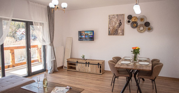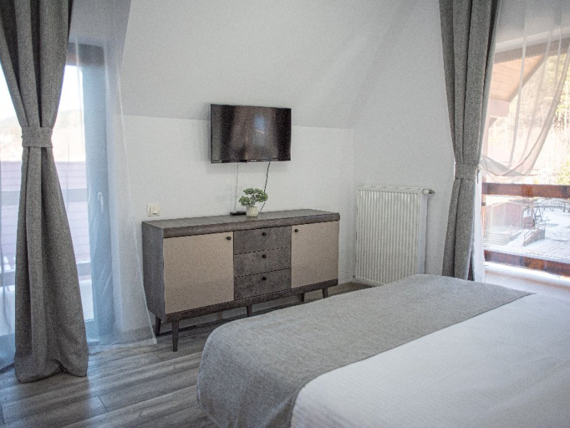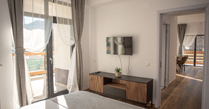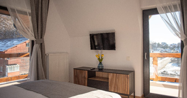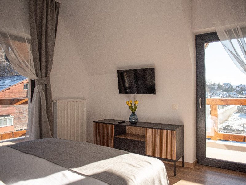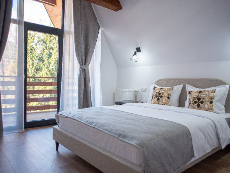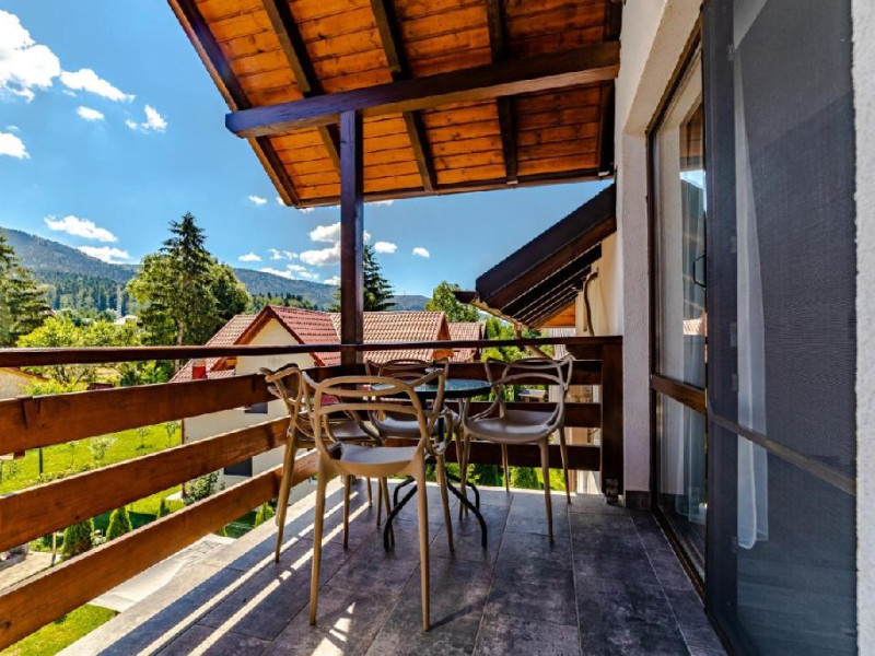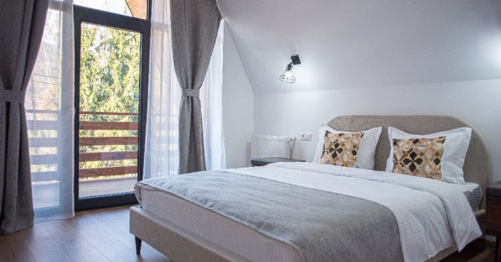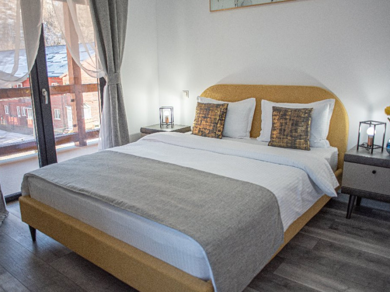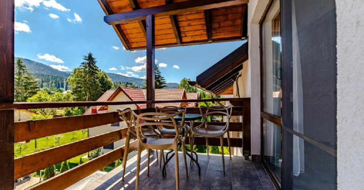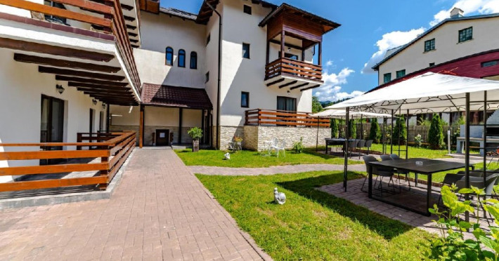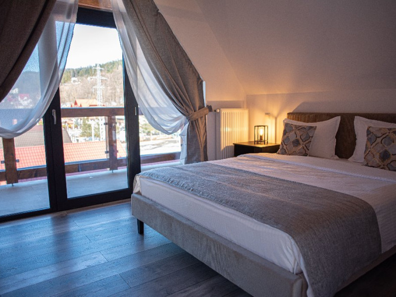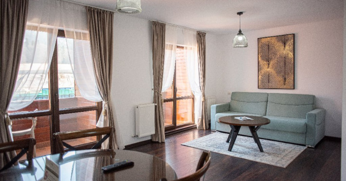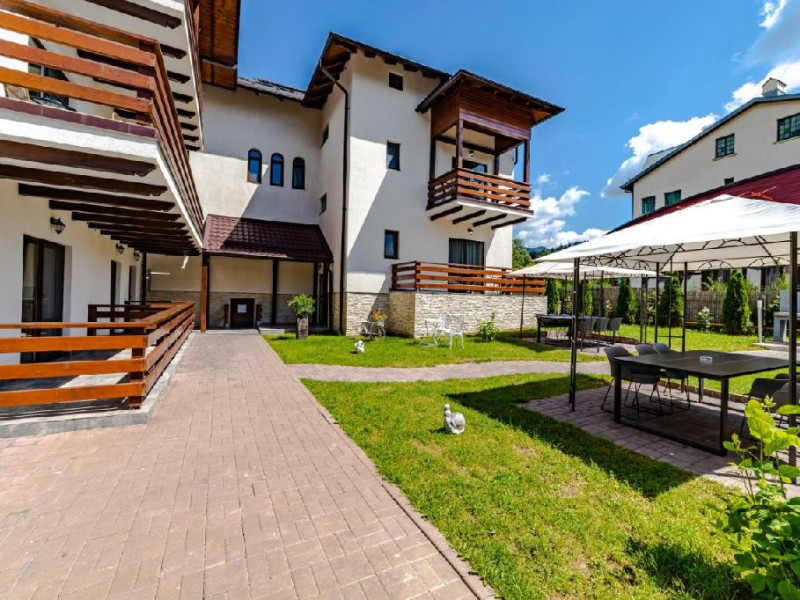 INFORMATII GENERALE Yael Luxury Apartments este un complex hotelier format din 4 cladiri distincte, situate in Busteni, in zona Golfului Regal-Piatra Arsa, intr-un cartier extrem de linistit, cu acces facil din DN 1. Complexul este situat la o distanta de 3 km fata de centrul orasului Busteni (cca 1 km Castelul Cantacuzino. DESCRIERE UNITATE DE CAZARE Complexul rezidential este format din 4 unitati de cazare cu 64 de apartamente, studio, suite, camere duble, pe un platou insorit, (7 suite pentru 6 persoane, 42 apartamente pentru 4 persoane, 6 studio pentru 3 persoane, 9 camere duble pentru 2 persoane) si 3 casute de tip A Frame ce va ofera cea mai spectaculoasa priveliste asupra masivelor Bucegi, Baiului si Caraiman. Repartizarea se va face la receptie. FACILITATI UNITATE Pe langa confortul si privelistea panoramica asupra muntilor Bucegi, la Yael Luxury Apartments la sfarsitul zilei te poti relaxa la centrul wellness compus din jacuzzi, sauna uscata, zona de relaxare si masaj cu uleiuri BIO de cea mai buna calitate care este contra cost. Programarile se fac la receptie la check-in. Loc de joaca exterior, zona special creata la interior cu jocuri si console de ultima generatie, billiard, ping pong. Restaurant, terasa, facilitati de gratar internet, parcare. DESCRIERE CAMERE Apartamentele pentru 4 persoane (2 adulti si 2 copii sau 4 adulti) sunt formate din dormitor cu pat matrimonial, marime king size, dormitor separt printr-o usa de un living spatios dotat cu canapea extensibila si au o singura baie. Suitele sunt formate din doua dormitoare separate, 2 bai si un living cu canapea extensibila si pot acomoda pana la 6 persoane. Studiourile sunt formate dintr-o camera cu pat matrimonial si o canapea extensibila pentru 3 adulti sau 2 adulti si 2 copii cu varsta pana la 5 ani. Camere duble pentru 2 persoane pot acomada si copii, un copil pana in 5 ani in pat cu parintii si un copil pana in 14 ani cu pat supolimentar. Toate apartamentele, suitele, studioul au chicineta dotate modern (cuptor cu microunde, vesela, cana electrica, frigider, prajitor paine etc.) Balcoanele generoase ofera zona de relaxare cu priveliste panoramica spre munte atat din dormitor cat si din living. Casutele de tip A Frame includ doua dormitoare cu pat matrimonial, living cu chicineta si canapea, doua bai. LOCALIZARE Complexul este situat la o distanta de 3 km fata de centrul orasului Busteni (cca 1 km Castelul Cantacuzino. ATRACTII TURISTICE Muzeul Memorial Cezar Petrescu, Cruceade pe Caraiman, Castelul Cantacuzino, partia Kalinderu (1500 metri, dificultate crescuta), Cascada Urlatoarea, Pestera Ialomitei, varful Babele, Sfinxul din Bucegi, Biserica Domneasca - Nasterea Maicii Domnului, Manastirea Caraiman - Inaltarea Sfintei Cruci, Manastirea Ialomitei, POLITICI Check-in-ul se face dupa ora 14.00, iar check-out-ul pana in ora 12.00, animalele de companie nu sunt acceptate. SERVICII DE MASA Se asigura cazare cu mic dejun si optional masa fisa cont. FACILITATI COPII Loc de joaca exterior, zona special creata la interior cu jocuri si console de ultima generatie FACILITATI EVENIMENTE Yael Luxury Apartments va punem la dispozitie sala de conferinta cu o capacitate de 50 persoane, echipata la standarde internationale pentru un mediu de intalniri de afaceri atractiv si eficient, petru training-uri, prezentari, seminarii, workshop-uri sau orice alt tip de eveniment.
