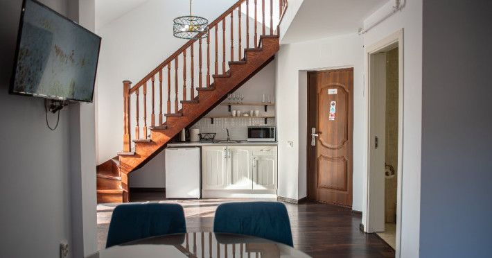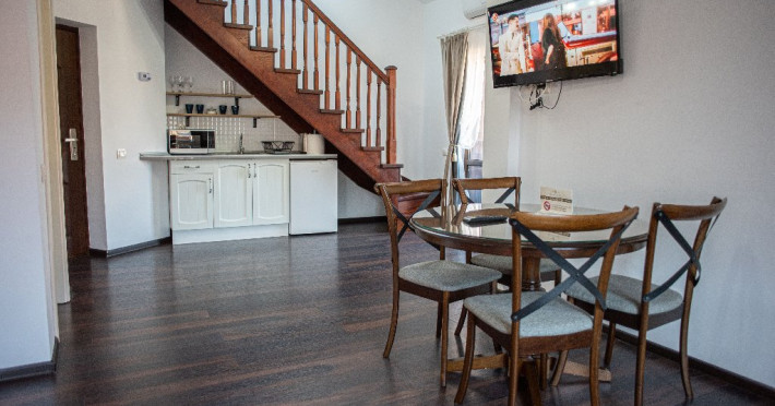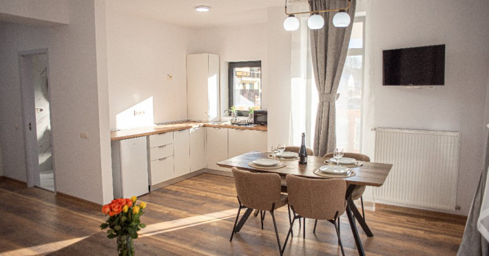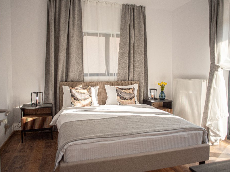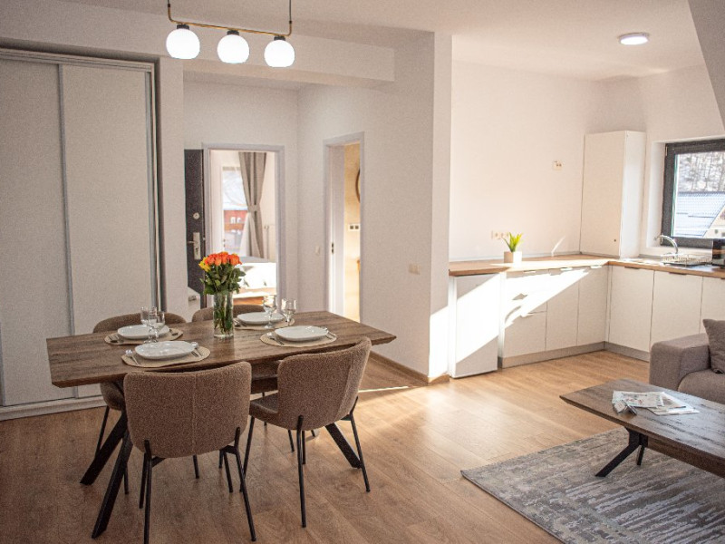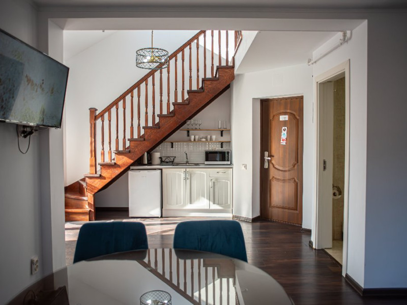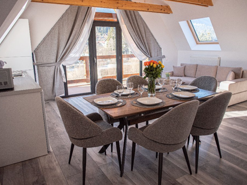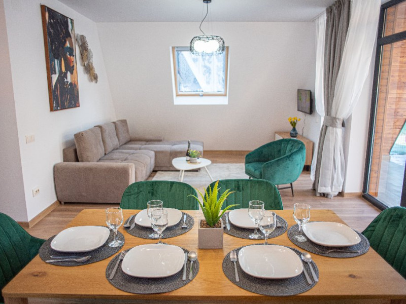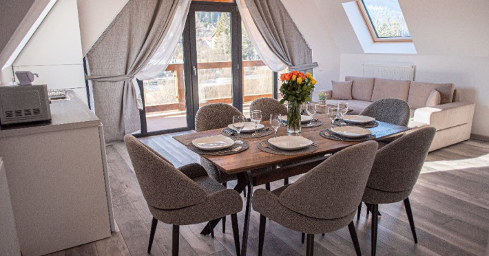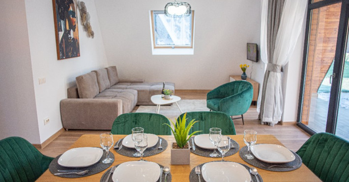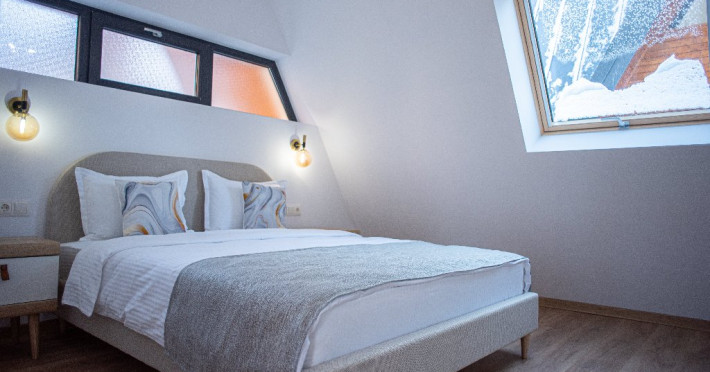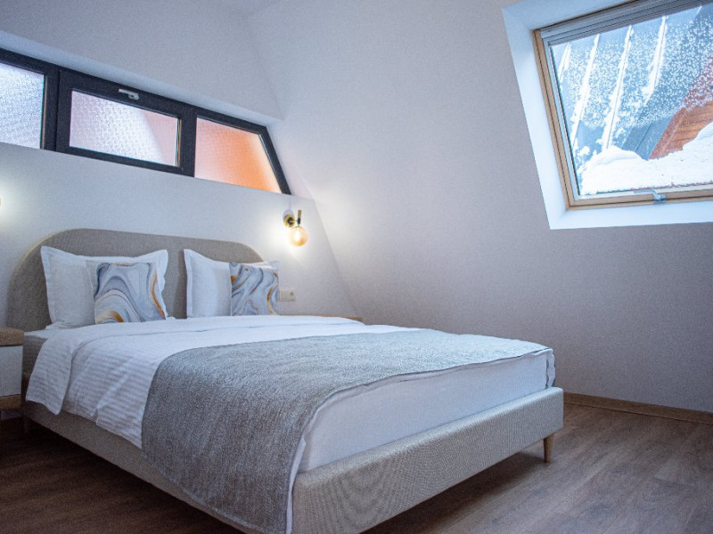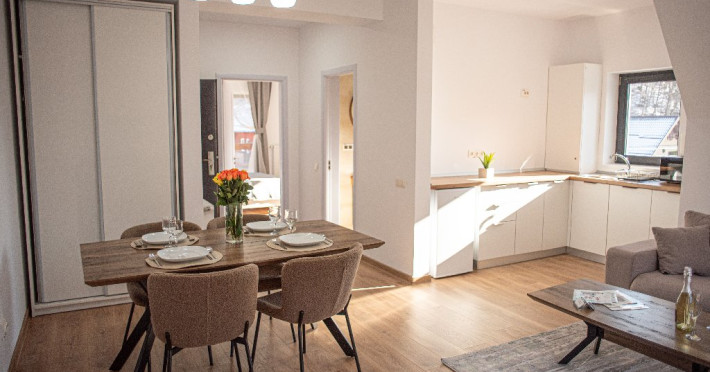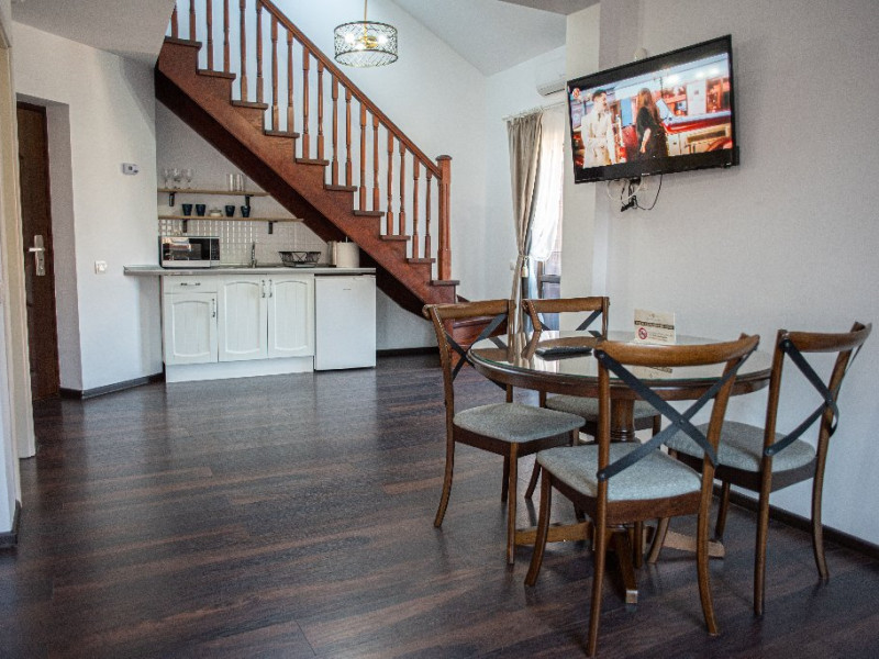 INFORMATII GENERALE Yael Luxury Apartments este un complex hotelier format din 4 cladiri distincte, situate in Busteni, in zona Golfului Regal-Piatra Arsa, intr-un cartier extrem de linistit, cu acces facil din DN 1. Complexul este situat la o distanta de 3 km fata de centrul orasului Busteni (cca 1 km Castelul Cantacuzino. DESCRIERE UNITATE DE CAZARE Complexul rezidential este format din 4 unitati de cazare cu 64 de apartamente, studio, suite, camere duble, pe un platou insorit, (7 suite pentru 6 persoane, 42 apartamente pentru 4 persoane, 6 studio pentru 3 persoane, 9 camere duble pentru 2 persoane) si 3 casute de tip A Frame ce va ofera cea mai spectaculoasa priveliste asupra masivelor Bucegi, Baiului si Caraiman. Repartizarea se va face la receptie. FACILITATI UNITATE Pe langa confortul si privelistea panoramica asupra muntilor Bucegi, la Yael Luxury Apartments la sfarsitul zilei te poti relaxa la centrul wellness compus din jacuzzi, sauna uscata, zona de relaxare si masaj cu uleiuri BIO de cea mai buna calitate care este contra cost. Programarile se fac la receptie la check-in. Loc de joaca exterior, zona special creata la interior cu jocuri si console de ultima generatie, billiard, ping pong. Restaurant, terasa, facilitati de gratar internet, parcare. DESCRIERE CAMERE Apartamentele pentru 4 persoane (2 adulti si 2 copii sau 4 adulti) sunt formate din dormitor cu pat matrimonial, marime king size, dormitor separt printr-o usa de un living spatios dotat cu canapea extensibila si au o singura baie. Suitele sunt formate din doua dormitoare separate, 2 bai si un living cu canapea extensibila si pot acomoda pana la 6 persoane. Studiourile sunt formate dintr-o camera cu pat matrimonial si o canapea extensibila pentru 3 adulti sau 2 adulti si 2 copii cu varsta pana la 5 ani. Camere duble pentru 2 persoane pot acomada si copii, un copil pana in 5 ani in pat cu parintii si un copil pana in 14 ani cu pat supolimentar. Toate apartamentele, suitele, studioul au chicineta dotate modern (cuptor cu microunde, vesela, cana electrica, frigider, prajitor paine etc.) Balcoanele generoase ofera zona de relaxare cu priveliste panoramica spre munte atat din dormitor cat si din living. Casutele de tip A Frame includ doua dormitoare cu pat matrimonial, living cu chicineta si canapea, doua bai. LOCALIZARE Complexul este situat la o distanta de 3 km fata de centrul orasului Busteni (cca 1 km Castelul Cantacuzino. ATRACTII TURISTICE Muzeul Memorial Cezar Petrescu, Cruceade pe Caraiman, Castelul Cantacuzino, partia Kalinderu (1500 metri, dificultate crescuta), Cascada Urlatoarea, Pestera Ialomitei, varful Babele, Sfinxul din Bucegi, Biserica Domneasca - Nasterea Maicii Domnului, Manastirea Caraiman - Inaltarea Sfintei Cruci, Manastirea Ialomitei, POLITICI Check-in-ul se face dupa ora 14.00, iar check-out-ul pana in ora 12.00, animalele de companie nu sunt acceptate. SERVICII DE MASA Se asigura cazare cu mic dejun si optional masa fisa cont. FACILITATI COPII Loc de joaca exterior, zona special creata la interior cu jocuri si console de ultima generatie FACILITATI EVENIMENTE Yael Luxury Apartments va punem la dispozitie sala de conferinta cu o capacitate de 50 persoane, echipata la standarde internationale pentru un mediu de intalniri de afaceri atractiv si eficient, petru training-uri, prezentari, seminarii, workshop-uri sau orice alt tip de eveniment.