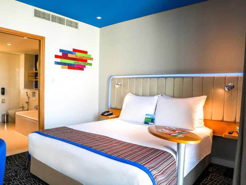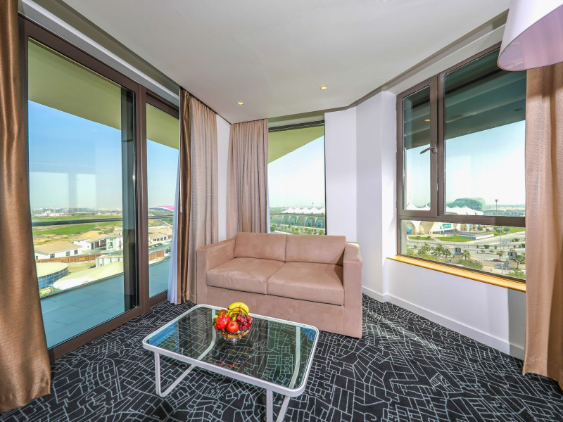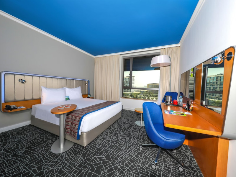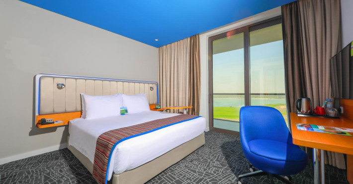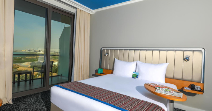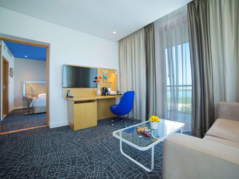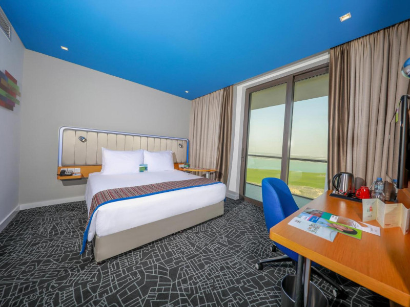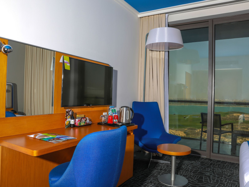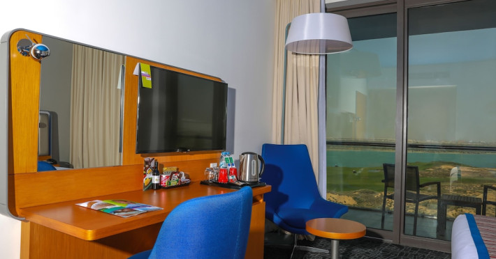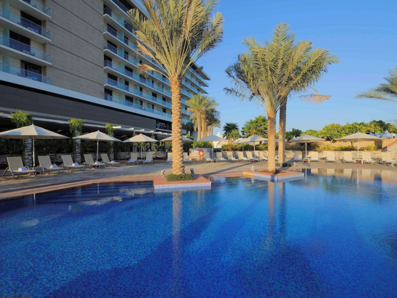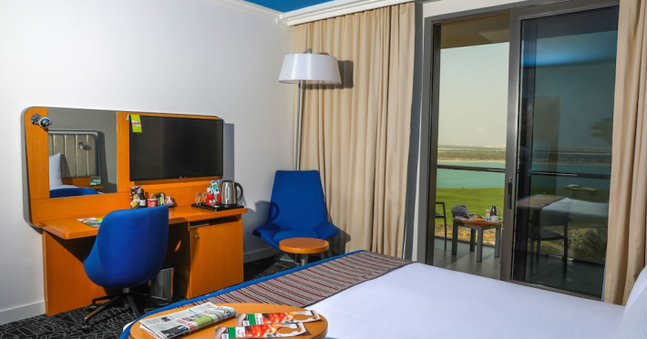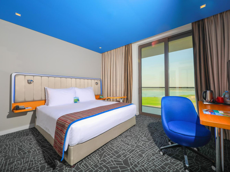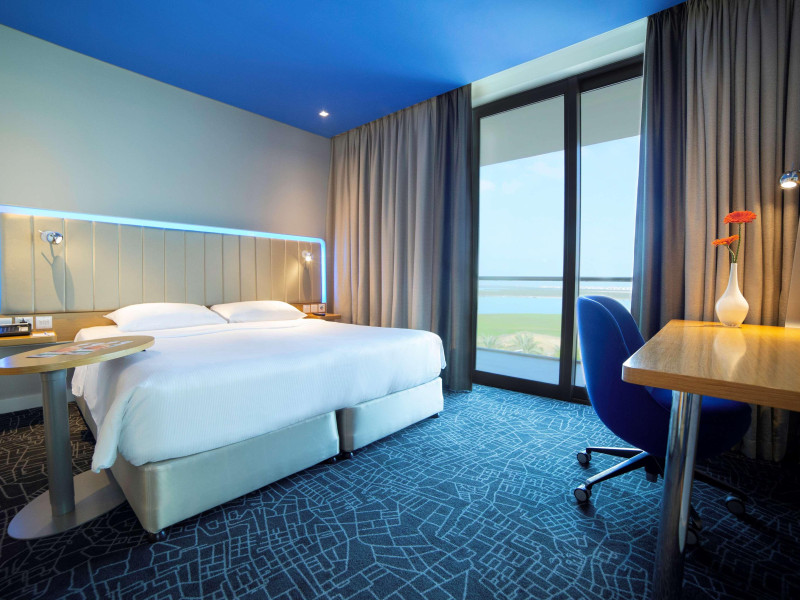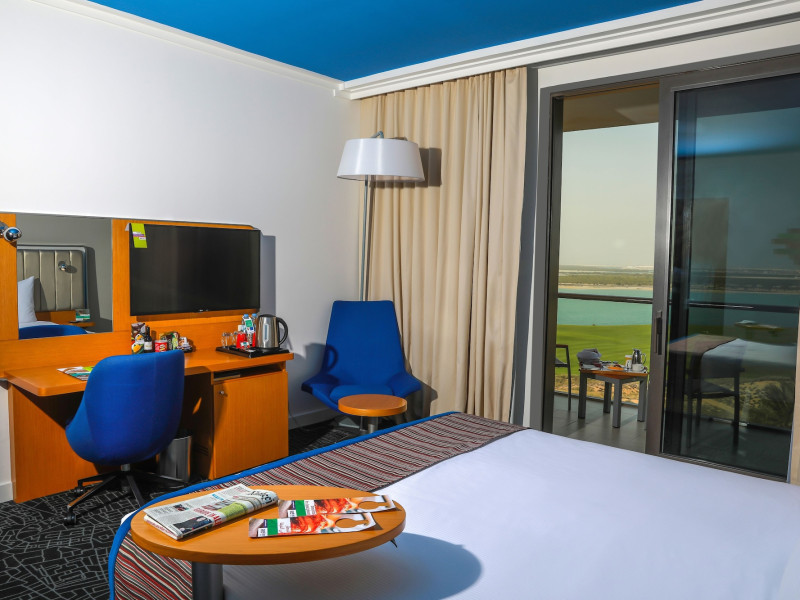 Yas Plaza Bay by IHG offers comfortable accommodations on Yas Island, a 15-minute drive from Abu Dhabi International Airport (AUH). The hotel features an outdoor lagoon-style pool, a spa with a hot tub, steam room, and sauna, a tennis court, a children's play area, and free Wi-Fi throughout. Two on-site restaurants are available: Amerigos (Mexican) and Mint (international buffet). Sands Pool Bar offers additional refreshments. Guest rooms include air conditioning, a safety deposit box, a walk-in shower, satellite TV, minibars, LCD televisions, and Select Comfort beds with down comforters. Bathrooms feature designer toiletries and bidets. Free private parking and a 24-hour airport shuttle (surcharge applies) are available. The hotel is conveniently located near Yas Marina Circuit, Yas Waterworld, Ferrari World, Warner Bros. World Abu Dhabi, Yas Mall, and several golf courses. Guests are required to present a valid UAE Emirates ID, GCC issued national ID, or passport upon check-in. Buffet breakfasts are available daily for a fee. All rooms are non-smoking; designated smoking areas are provided. The Yas Plaza Bay by IHG is a Tourist hotel. The nightlife/restaurants are located in the hotel.