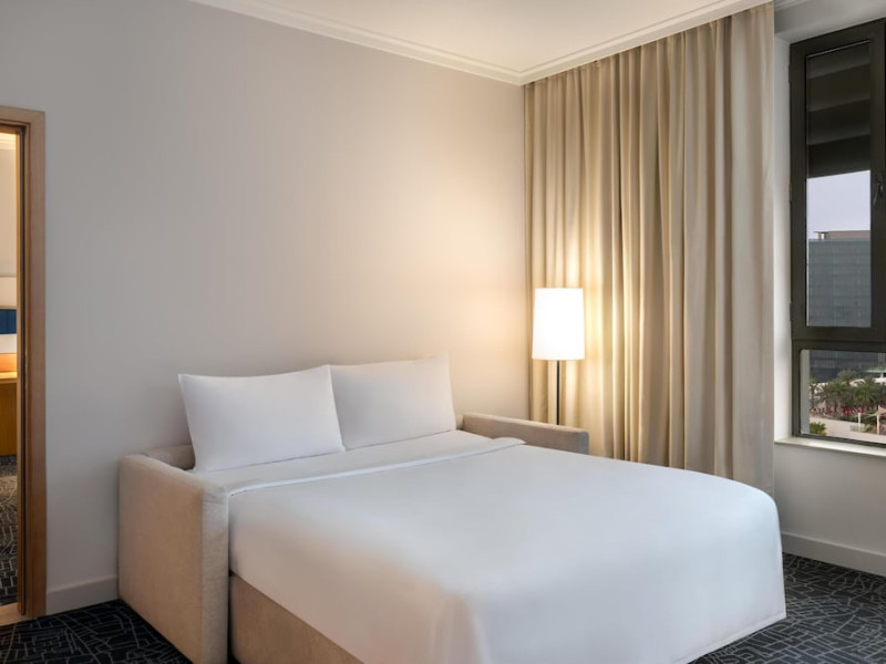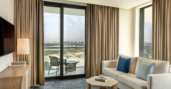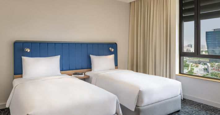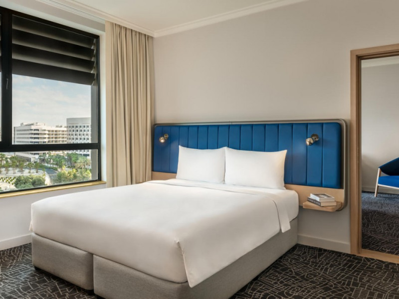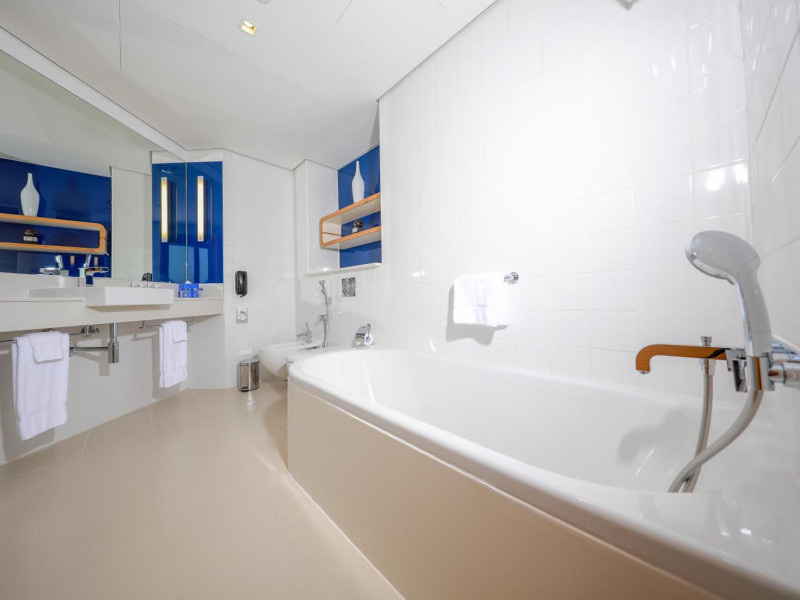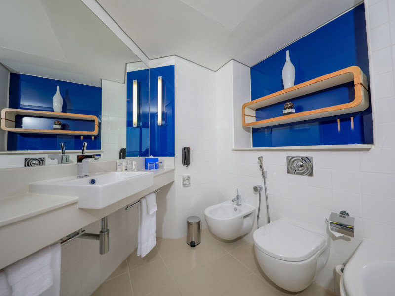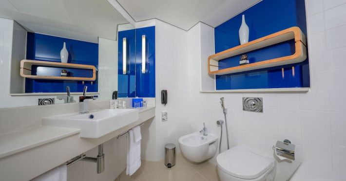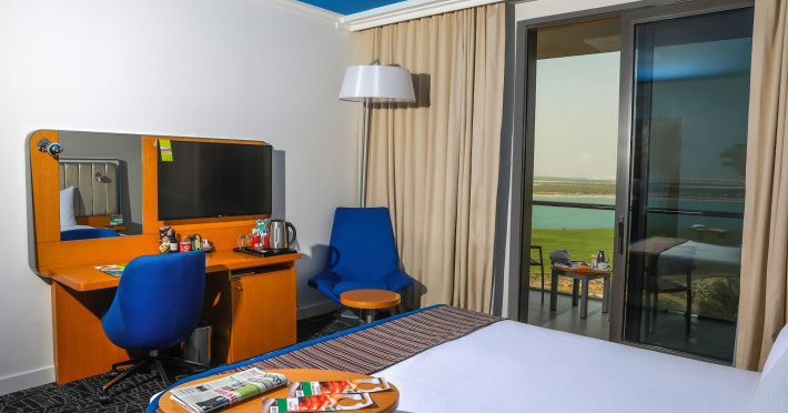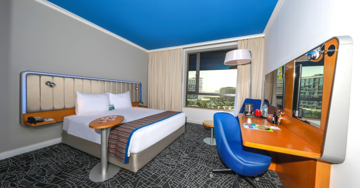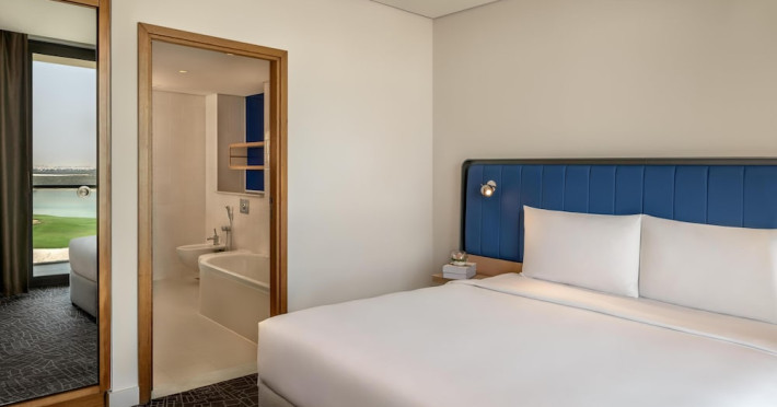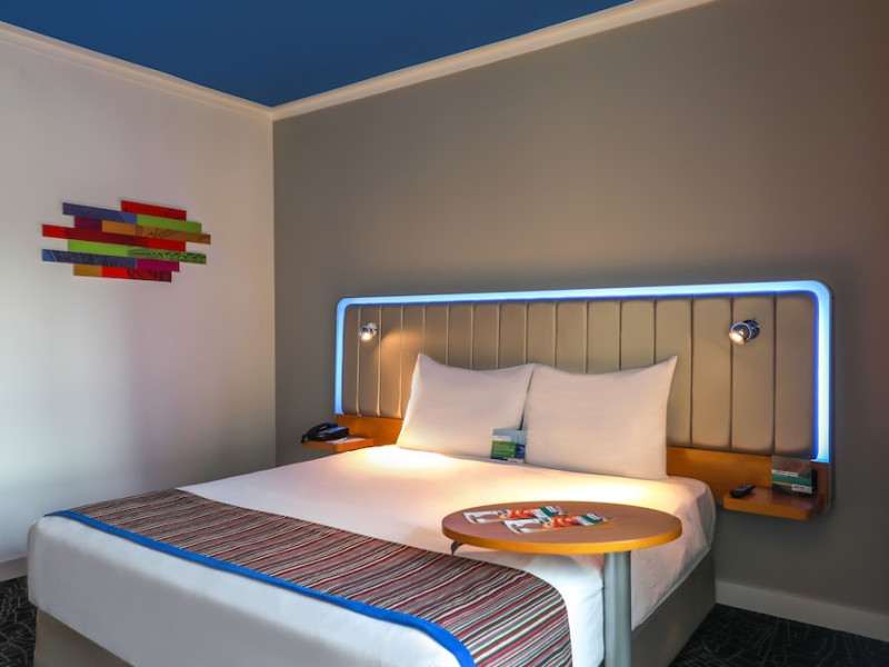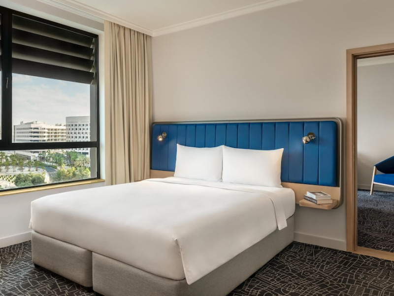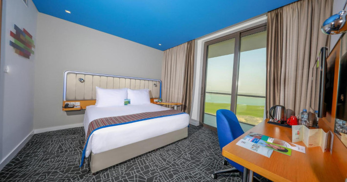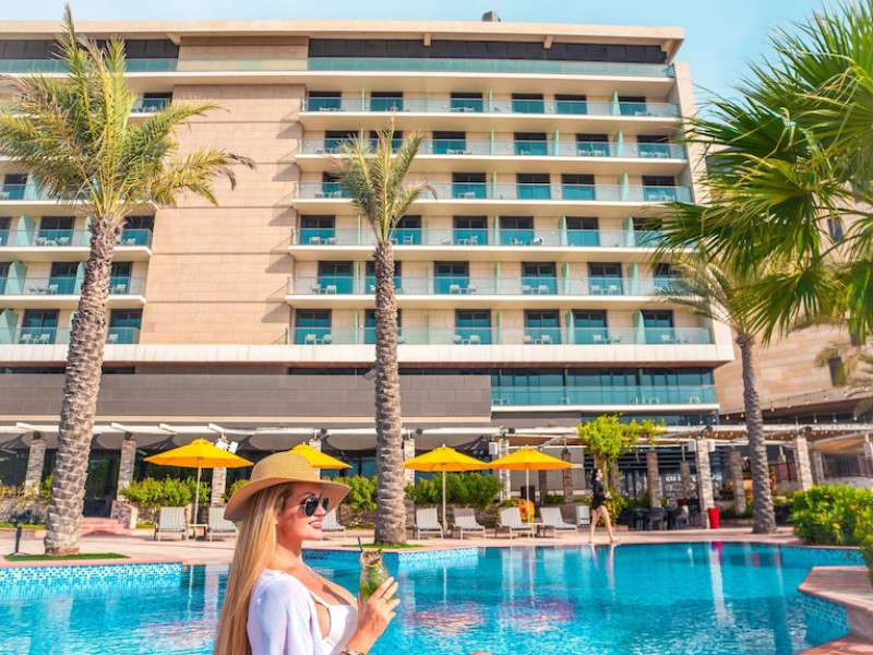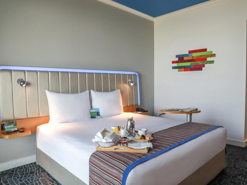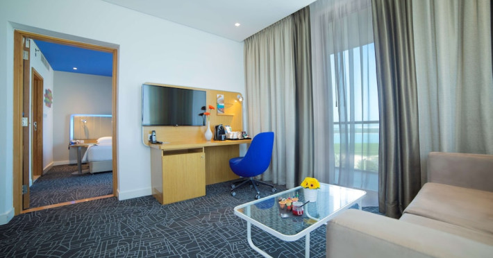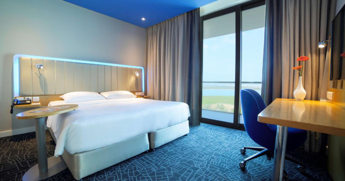 Yas Plaza Bay by IHG offers comfortable accommodations on Yas Island, a 15-minute drive from Abu Dhabi International Airport (AUH). The hotel features an outdoor lagoon-style pool, a spa with a hot tub, steam room, and sauna, a tennis court, a children's play area, and free Wi-Fi throughout. Two on-site restaurants are available: Amerigos (Mexican) and Mint (international buffet). Sands Pool Bar offers additional refreshments. Guest rooms include air conditioning, a safety deposit box, a walk-in shower, satellite TV, minibars, LCD televisions, and Select Comfort beds with down comforters. Bathrooms feature designer toiletries and bidets. Free private parking and a 24-hour airport shuttle (surcharge applies) are available. The hotel is conveniently located near Yas Marina Circuit, Yas Waterworld, Ferrari World, Warner Bros. World Abu Dhabi, Yas Mall, and several golf courses. Guests are required to present a valid UAE Emirates ID, GCC issued national ID, or passport upon check-in. Buffet breakfasts are available daily for a fee. All rooms are non-smoking; designated smoking areas are provided. The Yas Plaza Bay by IHG is a Tourist hotel. The nightlife/restaurants are located in the hotel.
