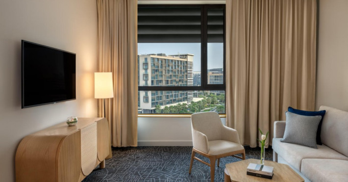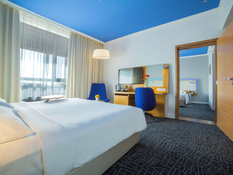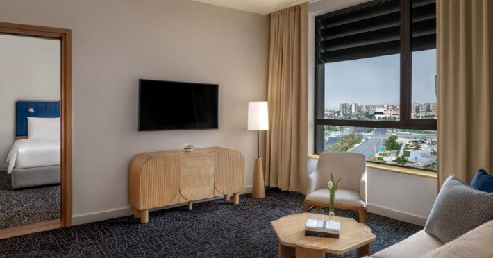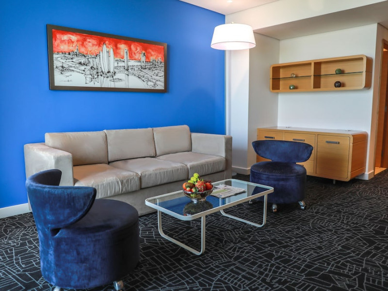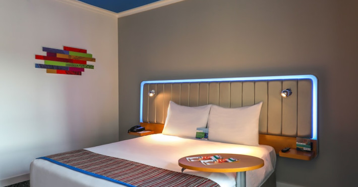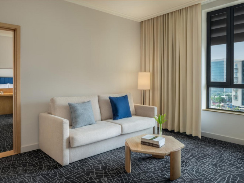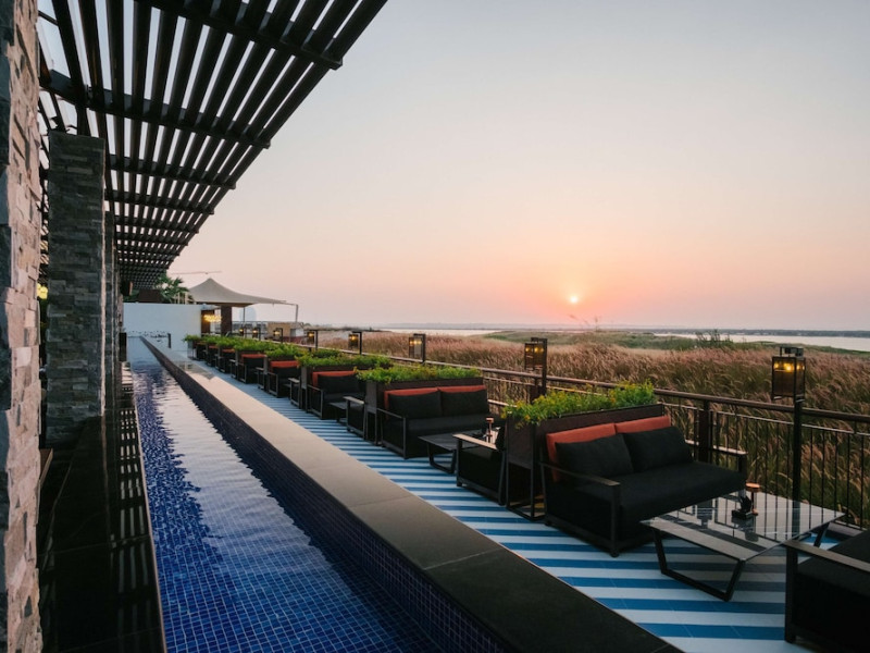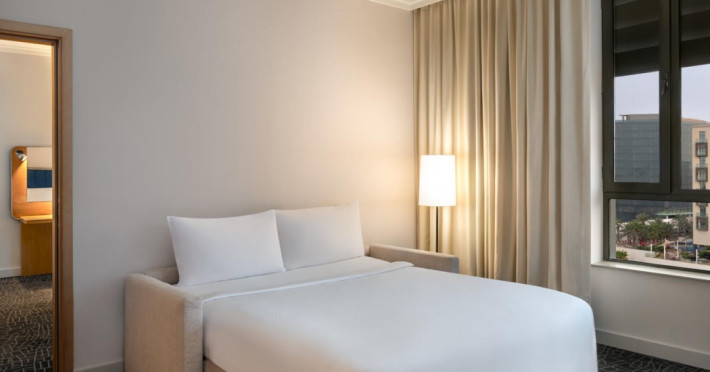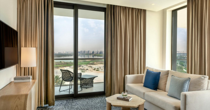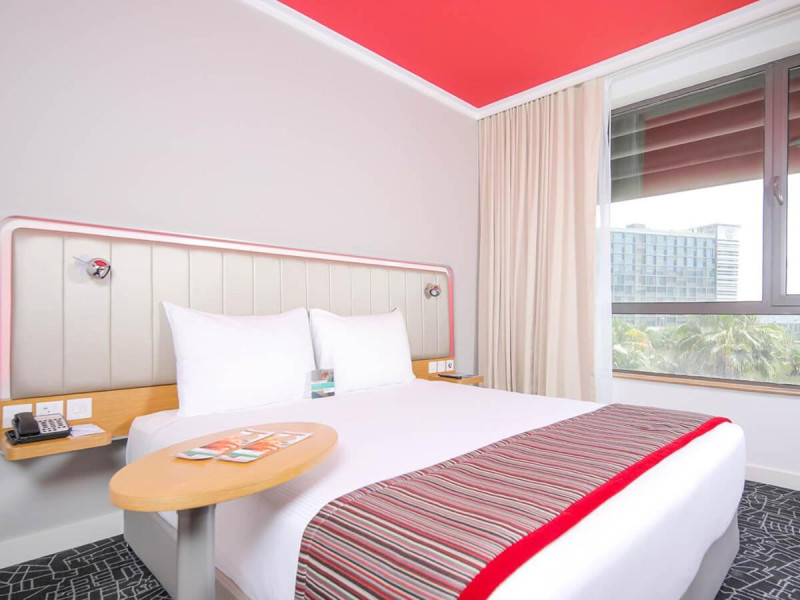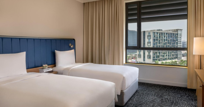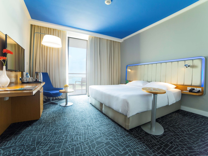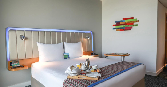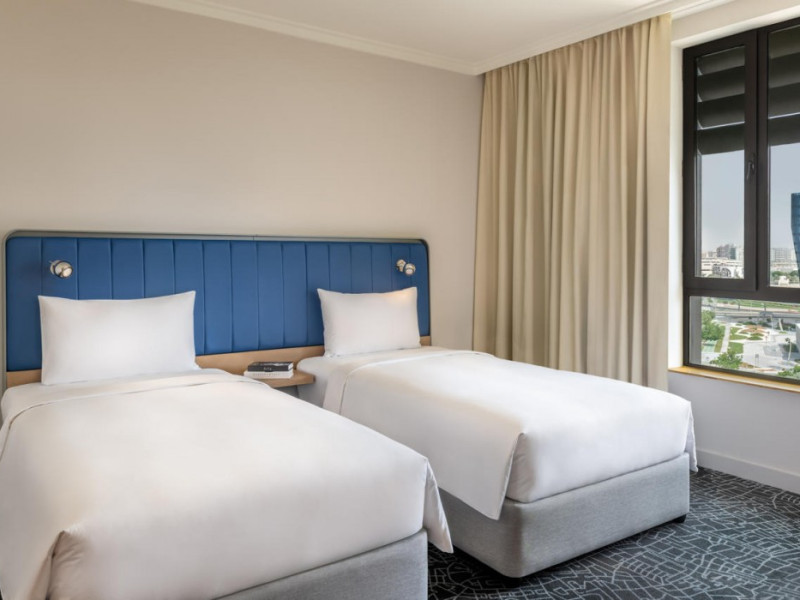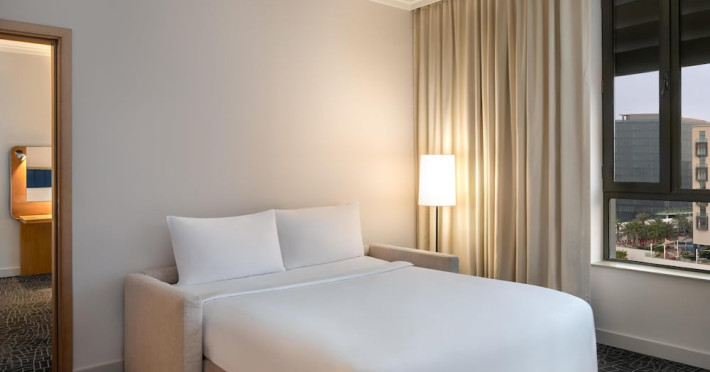 Yas Plaza Bay by IHG offers comfortable accommodations on Yas Island, a 15-minute drive from Abu Dhabi International Airport (AUH). The hotel features an outdoor lagoon-style pool, a spa with a hot tub, steam room, and sauna, a tennis court, a children's play area, and free Wi-Fi throughout. Two on-site restaurants are available: Amerigos (Mexican) and Mint (international buffet). Sands Pool Bar offers additional refreshments. Guest rooms include air conditioning, a safety deposit box, a walk-in shower, satellite TV, minibars, LCD televisions, and Select Comfort beds with down comforters. Bathrooms feature designer toiletries and bidets. Free private parking and a 24-hour airport shuttle (surcharge applies) are available. The hotel is conveniently located near Yas Marina Circuit, Yas Waterworld, Ferrari World, Warner Bros. World Abu Dhabi, Yas Mall, and several golf courses. Guests are required to present a valid UAE Emirates ID, GCC issued national ID, or passport upon check-in. Buffet breakfasts are available daily for a fee. All rooms are non-smoking; designated smoking areas are provided. The Yas Plaza Bay by IHG is a Tourist hotel. The nightlife/restaurants are located in the hotel.