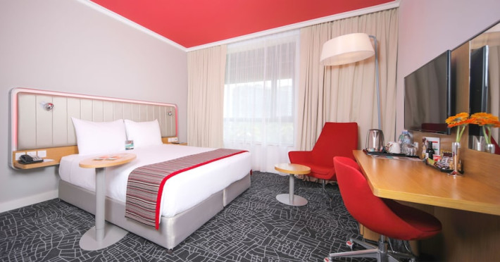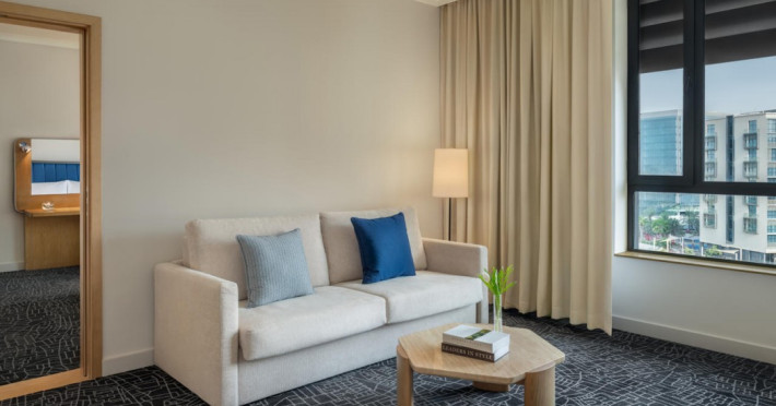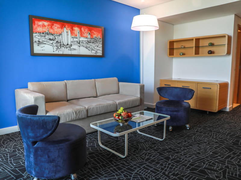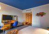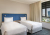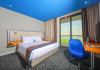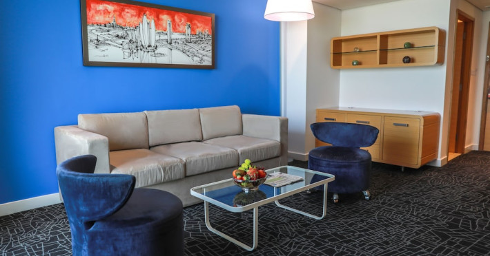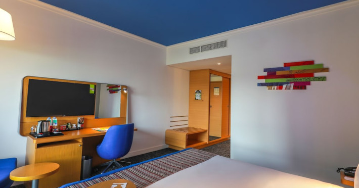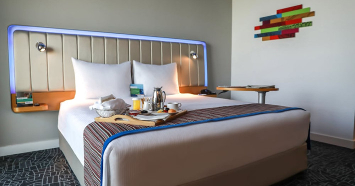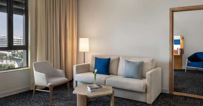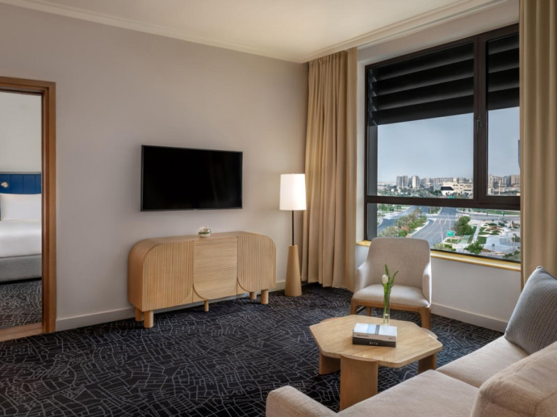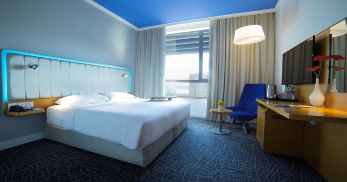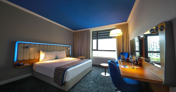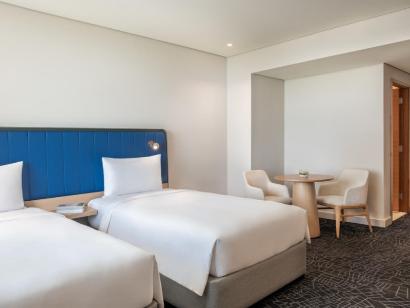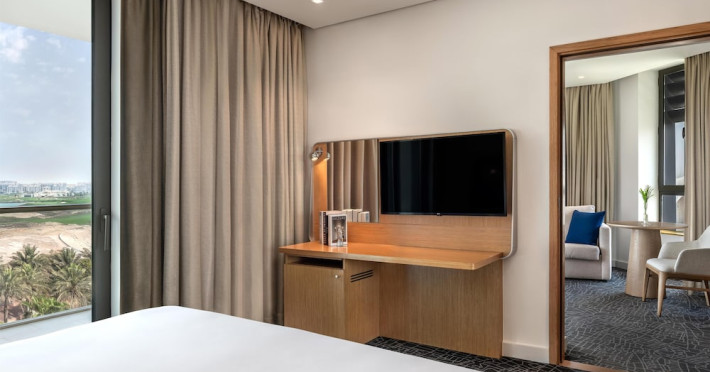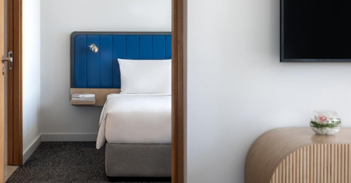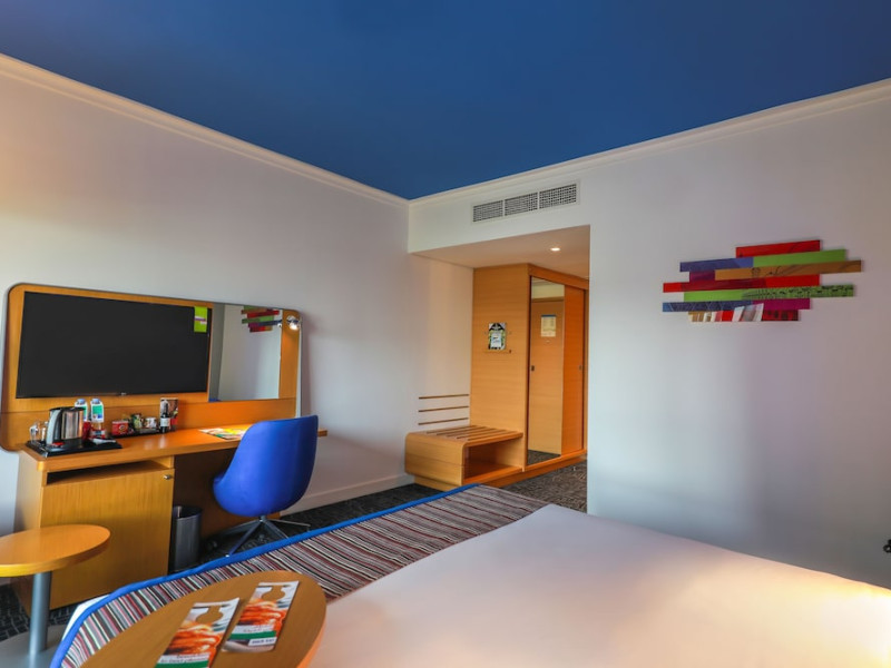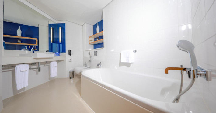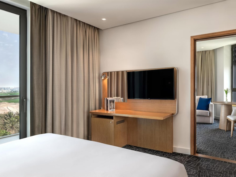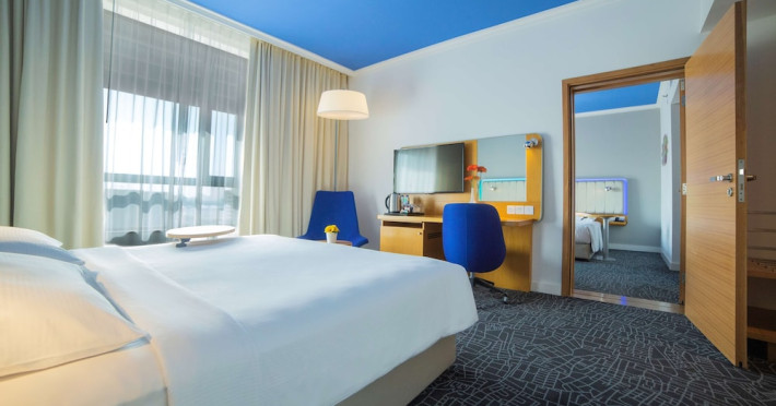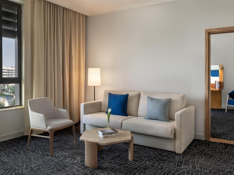 Yas Plaza Bay by IHG offers comfortable accommodations on Yas Island, a 15-minute drive from Abu Dhabi International Airport (AUH). The hotel features an outdoor lagoon-style pool, a spa with a hot tub, steam room, and sauna, a tennis court, a children's play area, and free Wi-Fi throughout. Two on-site restaurants are available: Amerigos (Mexican) and Mint (international buffet). Sands Pool Bar offers additional refreshments. Guest rooms include air conditioning, a safety deposit box, a walk-in shower, satellite TV, minibars, LCD televisions, and Select Comfort beds with down comforters. Bathrooms feature designer toiletries and bidets. Free private parking and a 24-hour airport shuttle (surcharge applies) are available. The hotel is conveniently located near Yas Marina Circuit, Yas Waterworld, Ferrari World, Warner Bros. World Abu Dhabi, Yas Mall, and several golf courses. Guests are required to present a valid UAE Emirates ID, GCC issued national ID, or passport upon check-in. Buffet breakfasts are available daily for a fee. All rooms are non-smoking; designated smoking areas are provided. The Yas Plaza Bay by IHG is a Tourist hotel. The nightlife/restaurants are located in the hotel.
