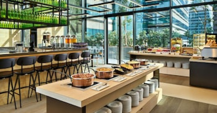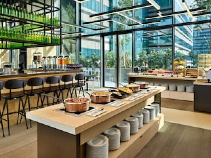 Dining Enjoy a satisfying meal at Komyuniti serving guests of YOTEL Singapore Orchard Road. Wrap up your day with a drink at the bar/lounge. Buffet breakfasts are served on weekdays from 6:30 AM to 10:30 AM and on weekends from 6:30 AM to 11:00 AM for a fee.
