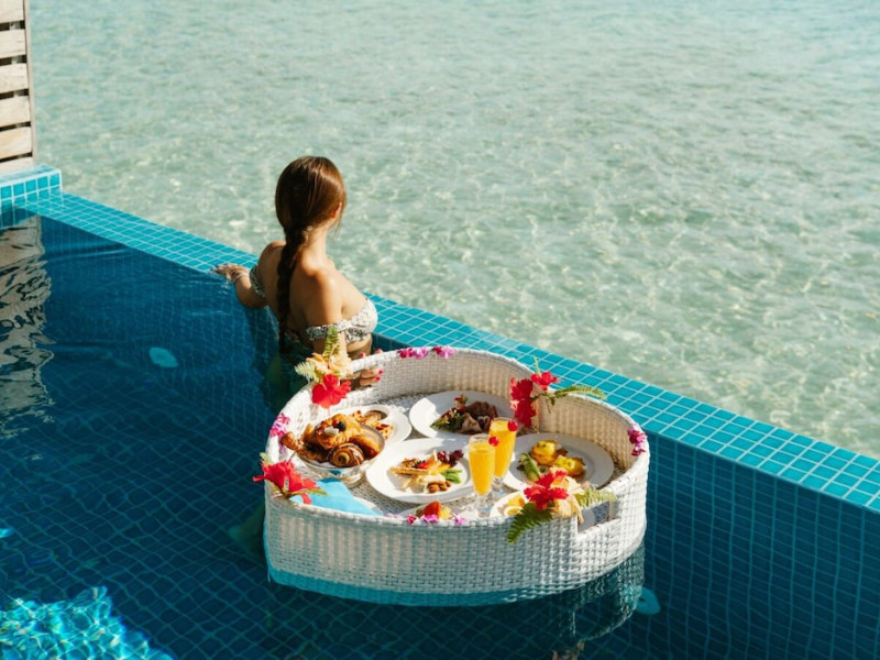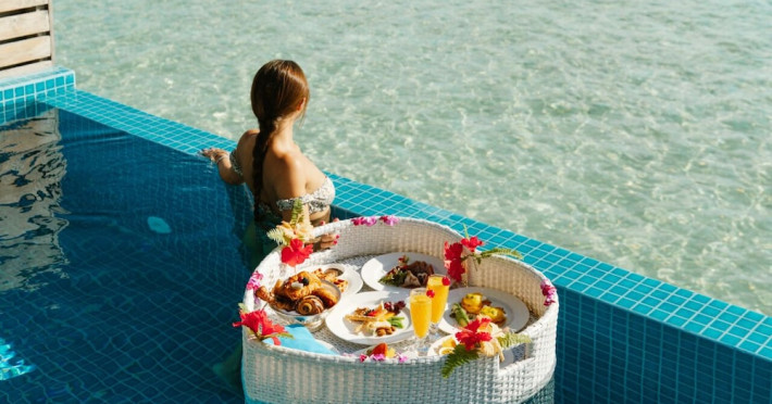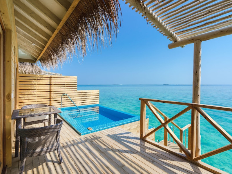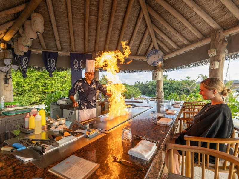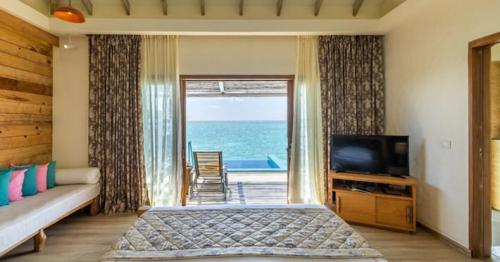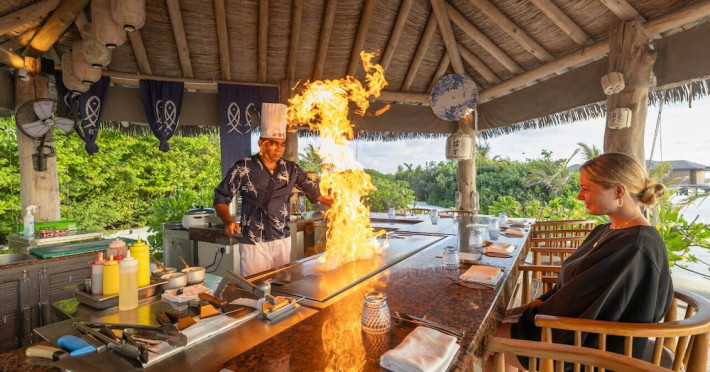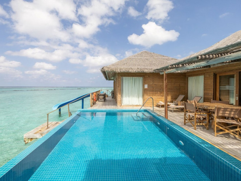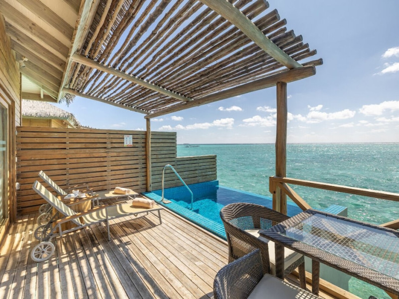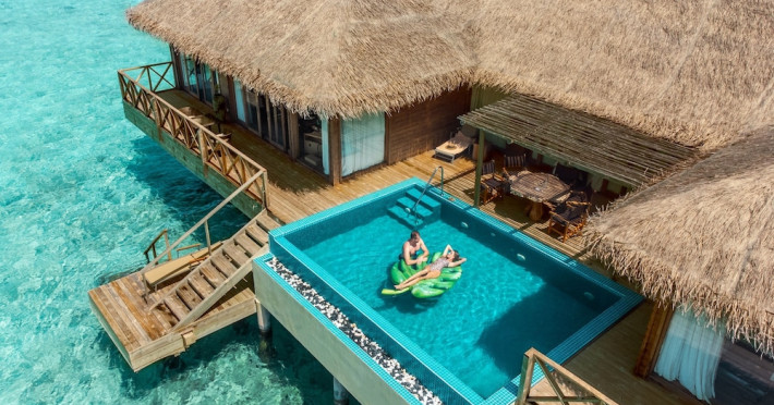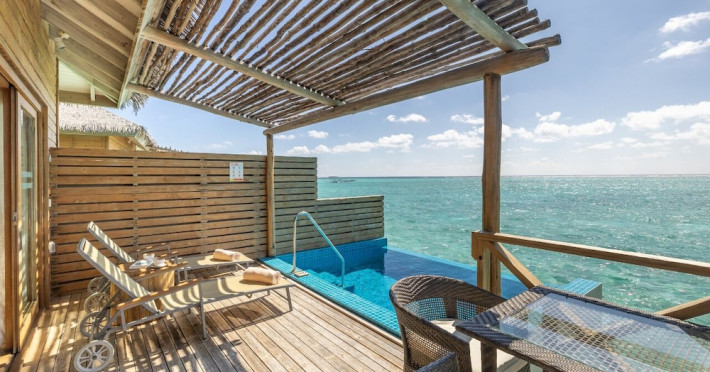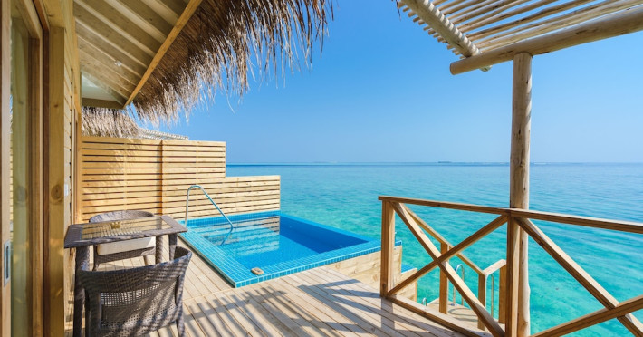 Positioned as an achingly elegant, rustic-chic resort that exclusively caters to guests aged 16 and above. You & Me Maldives by Cocoon has 109 villas, of which 99 are overwater and six superb dining outlets scattered around the island, each highlighting the resort’s unique views, flavours and features. Guests can take advantage of the ‘dine around’ concept, where guests on Half Board Plus, Full Board Plus, and All-Inclusive packages can have lunch and dinner at any à la carte restaurant. They can also enjoy free-flow French champagne at a dedicated ‘champagne island’. The new resort oozes romance, with drop-dead gorgeous villas and free flow champagne, not to mention an intimate fine dining designer underwater restaurant -H2O by LAGO, which is fully submerged at the bottom of the island’s lagoon..