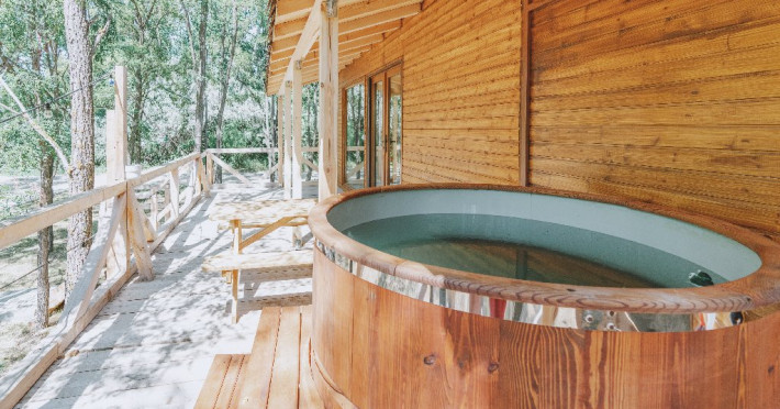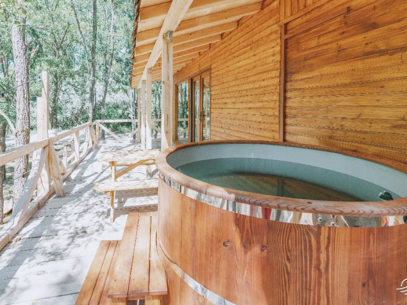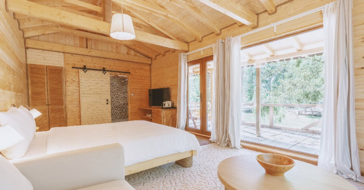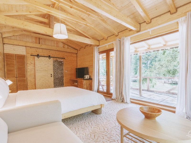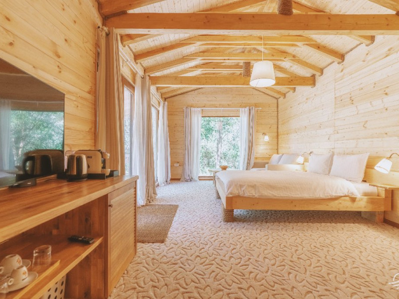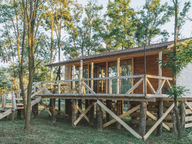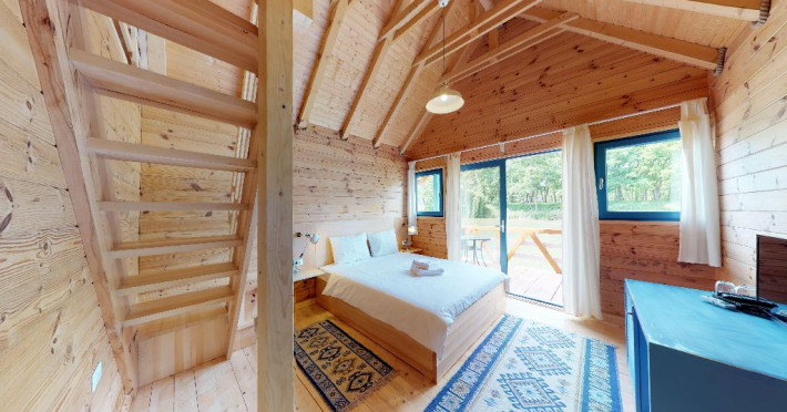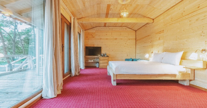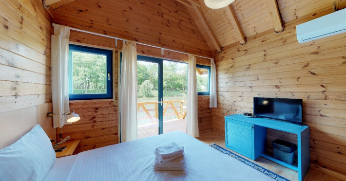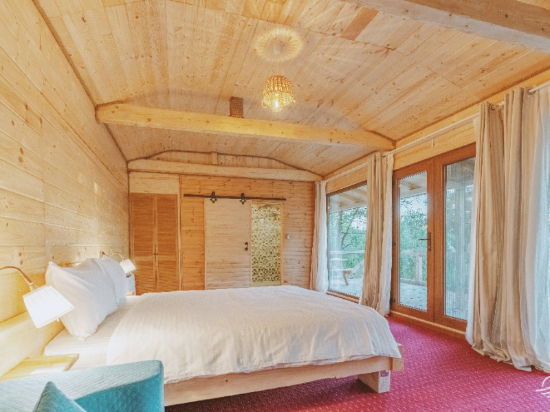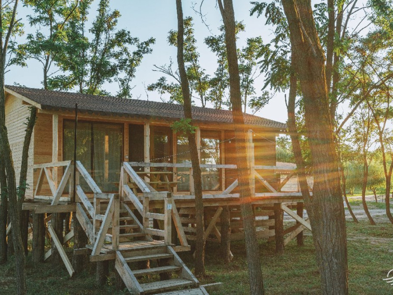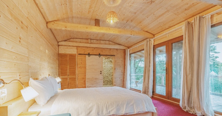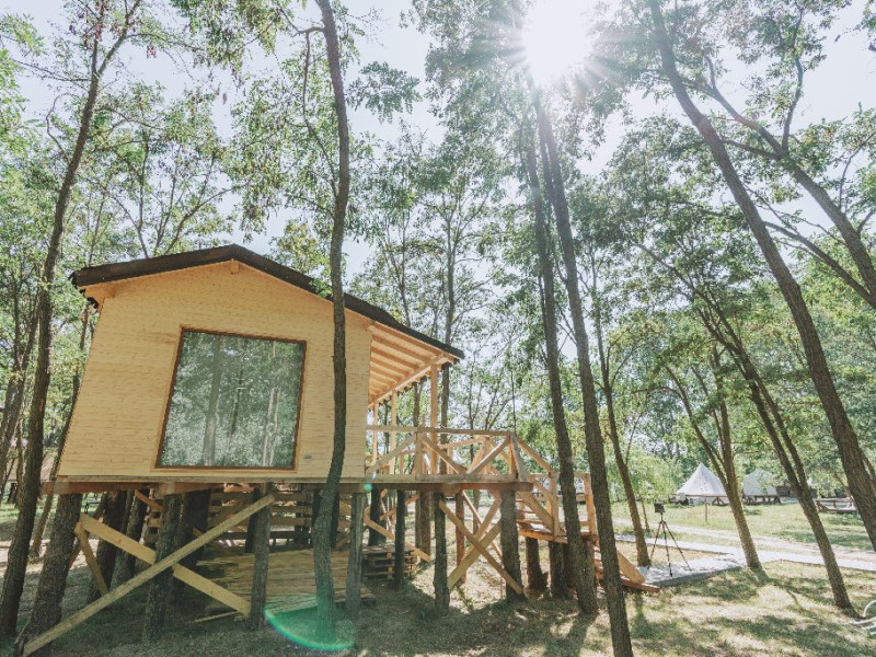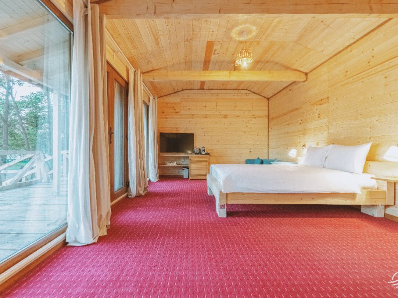 Pentru cei care prefera energia padurii in detrimentul apei, casele in copac sunt alegerea perfecta. Acestea au terasa si baie proprie, un pat matrimonial si o canapea extensibila.