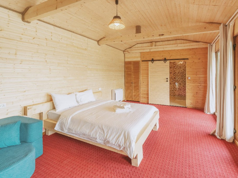 Casele cu ciubar, cu pat matrimonial si canapea extensibila, baie proprie, completeaza terasa proprie cu un ciubar menit sa ofere relaxare si confort.