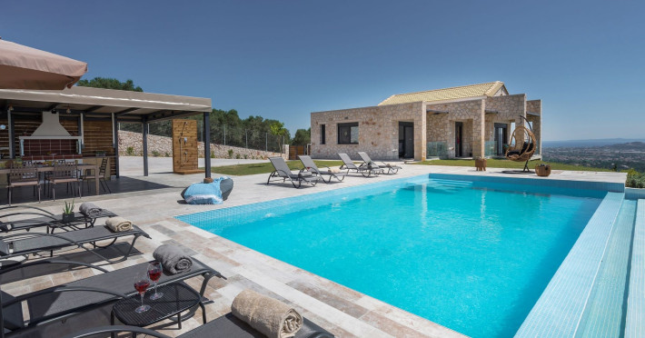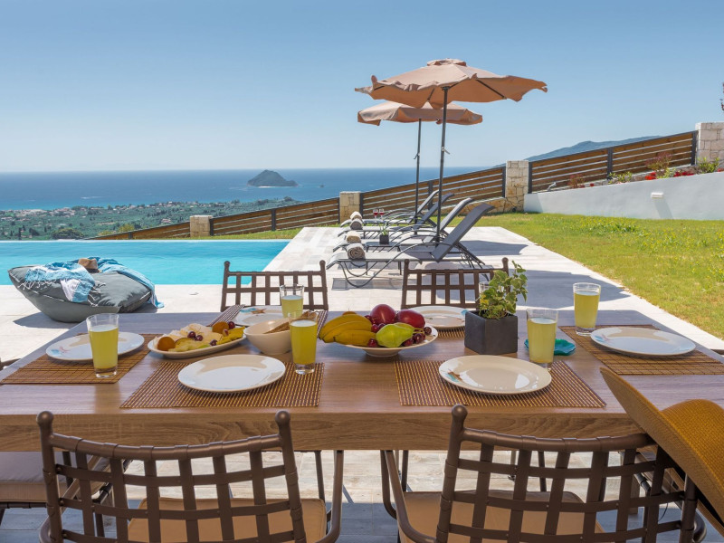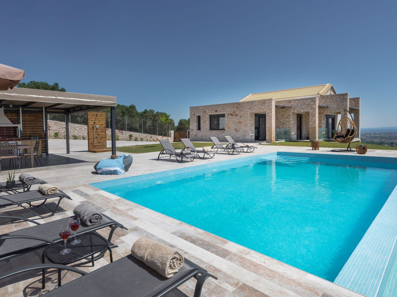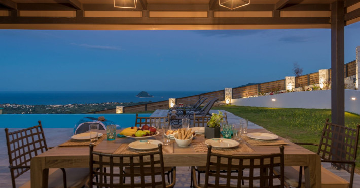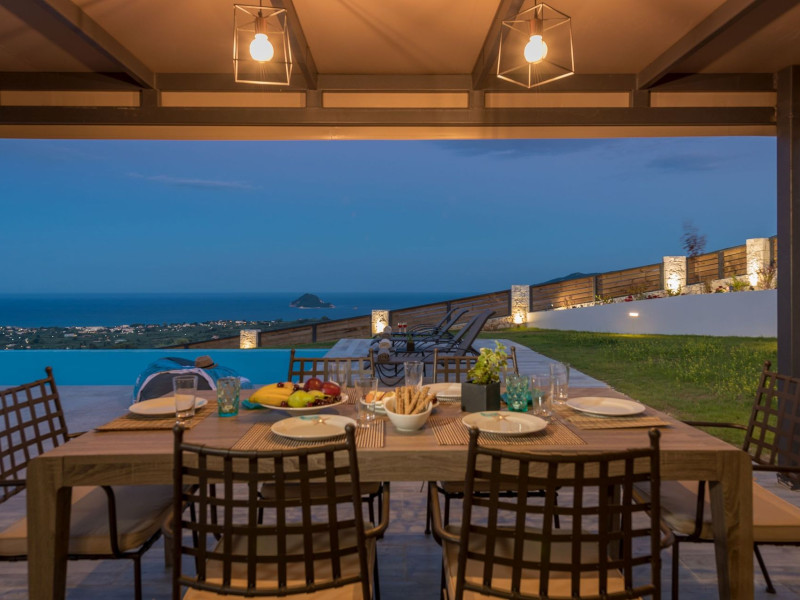 Zinos Villa is located in the Lithakia village, a settlement near the resort of Laganas. It is a wonderful holiday home, luxurious and stylishly decorated, with a swimming pool, fenced private outdoor spaces and a lovely view of the Ionian Sea!